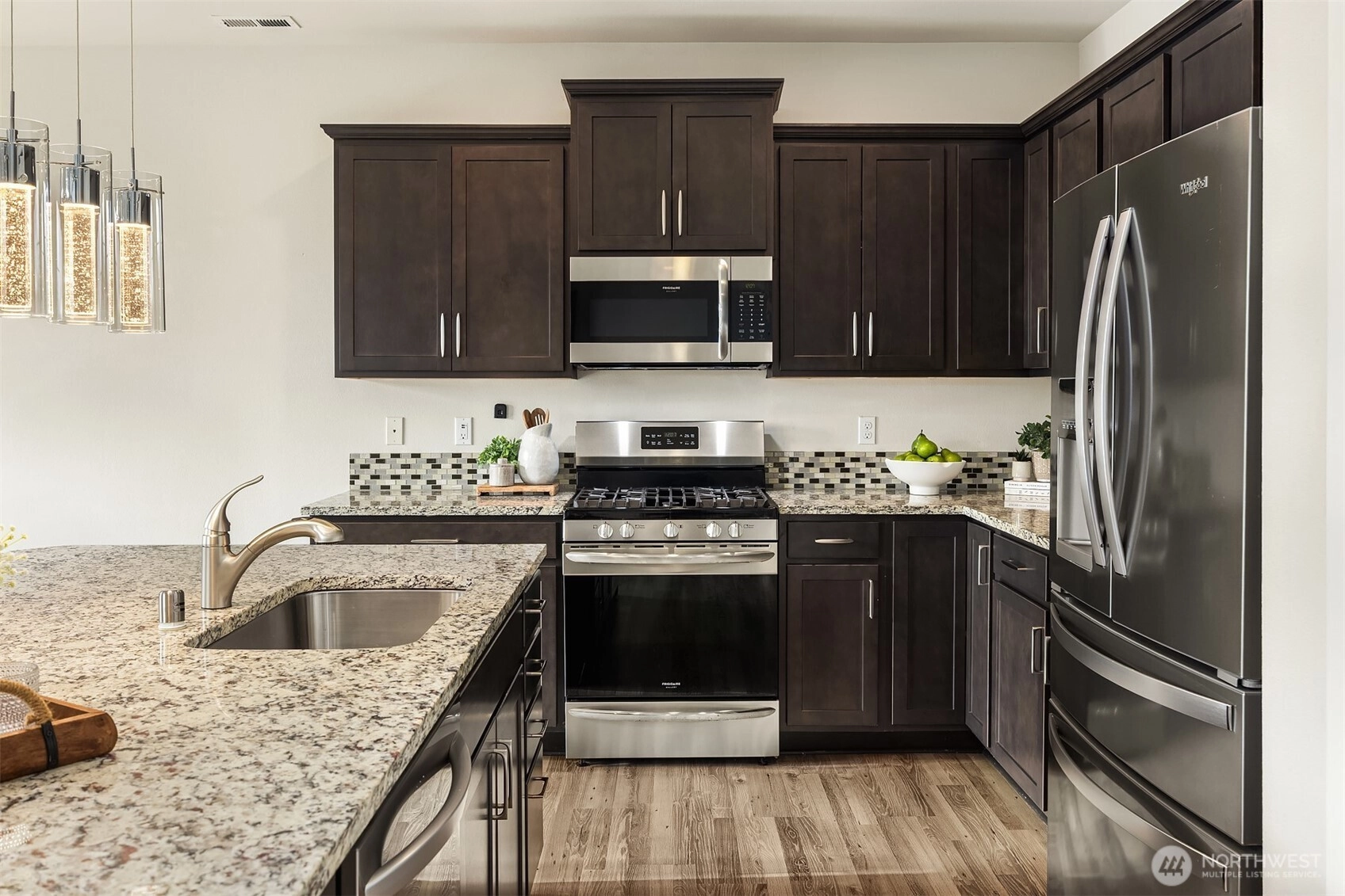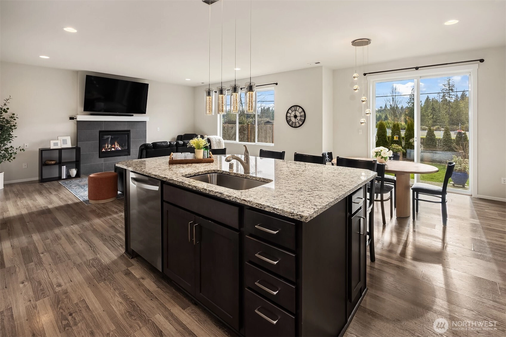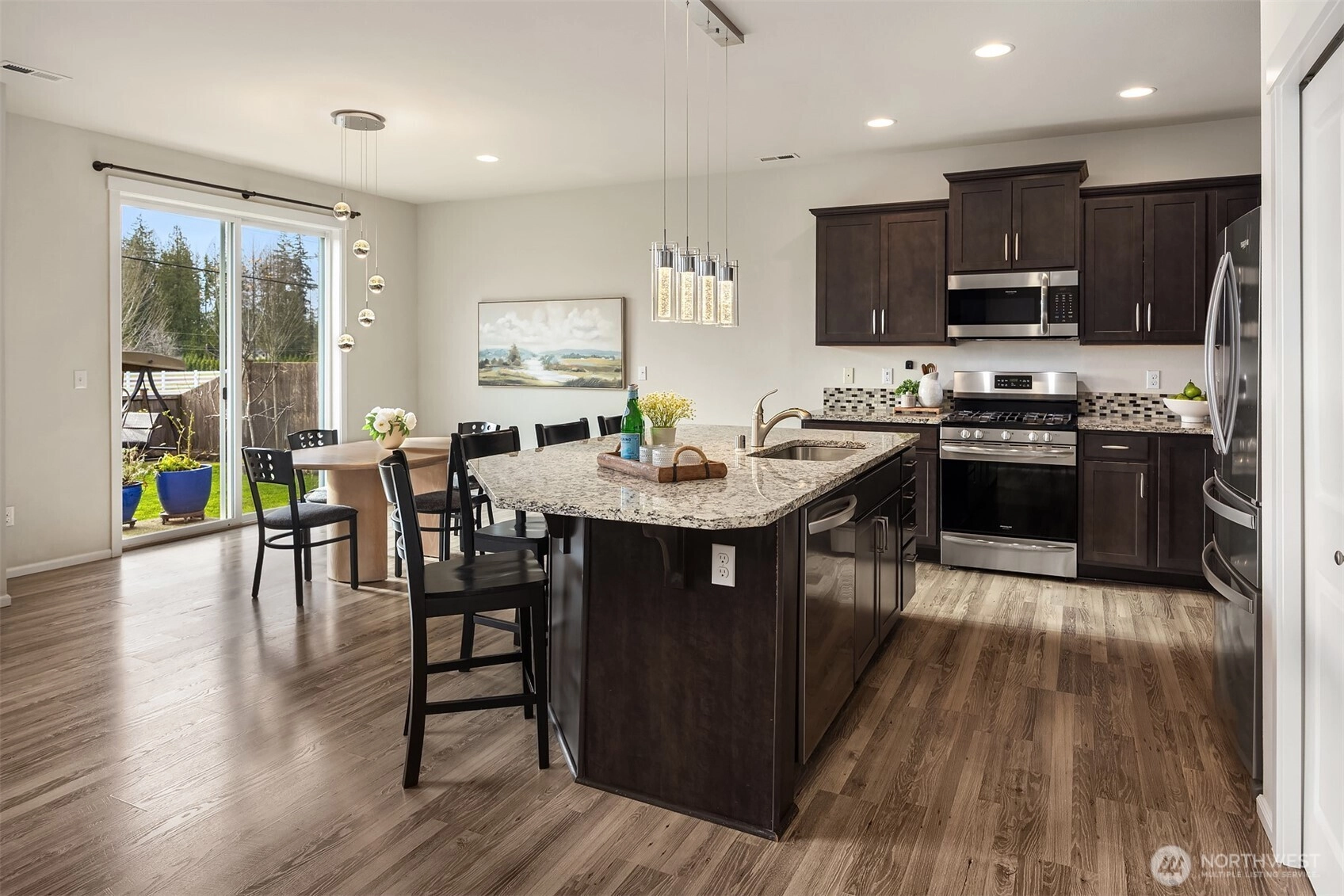 Located in the desirable Suncrest Farms neighborhood of Granite Falls, this beautifully maintained 2,670 sq ft home offers comfort, functionality, and scenic surroundings. With 5 bedrooms, 2.75 bathrooms and a spacious bonus room, the thoughtfully designed layout provides flexibility for everyday living, entertaining, and working from home. The main living spaces are warm and inviting, featuring modern finishes and an easy flow between kitchen, dining, and living areas. The kitchen is well appointed with ample cabinetry, generous counter space, and room to gather, while upgraded wiring throughout the home supports today’s work-from-home and technology needs. Step outside to an extended patio overlooking a fully fenced and landscaped yard, a true gardener’s dream with space to relax, play, or entertain while enjoying peaceful mountain views, ideal for year-round enjoyment. Additional features include central A/C for summer comfort and a spacious 3-car garage providing excellent storage and parking. Conveniently located near parks, trails, and everyday amenities, this home blends modern living with the charm and tranquility of the Granite Falls lifestyle. A wonderful opportunity to enjoy space, views, and thoughtful upgrades designed for everyday living.