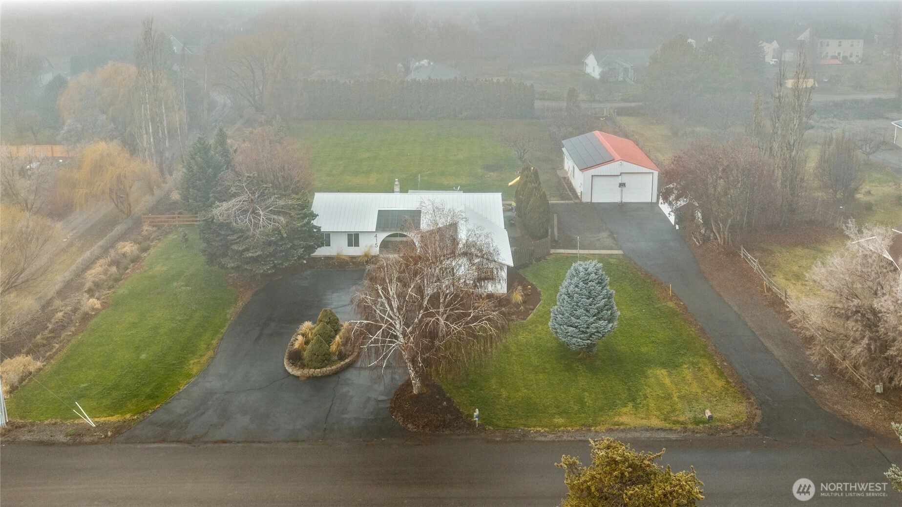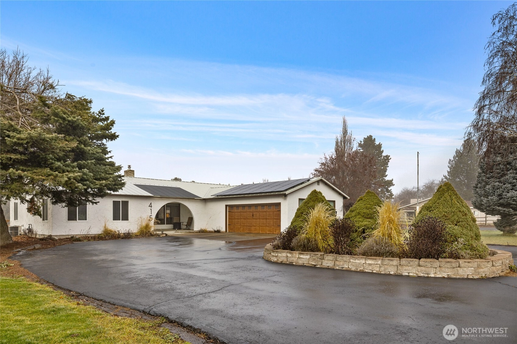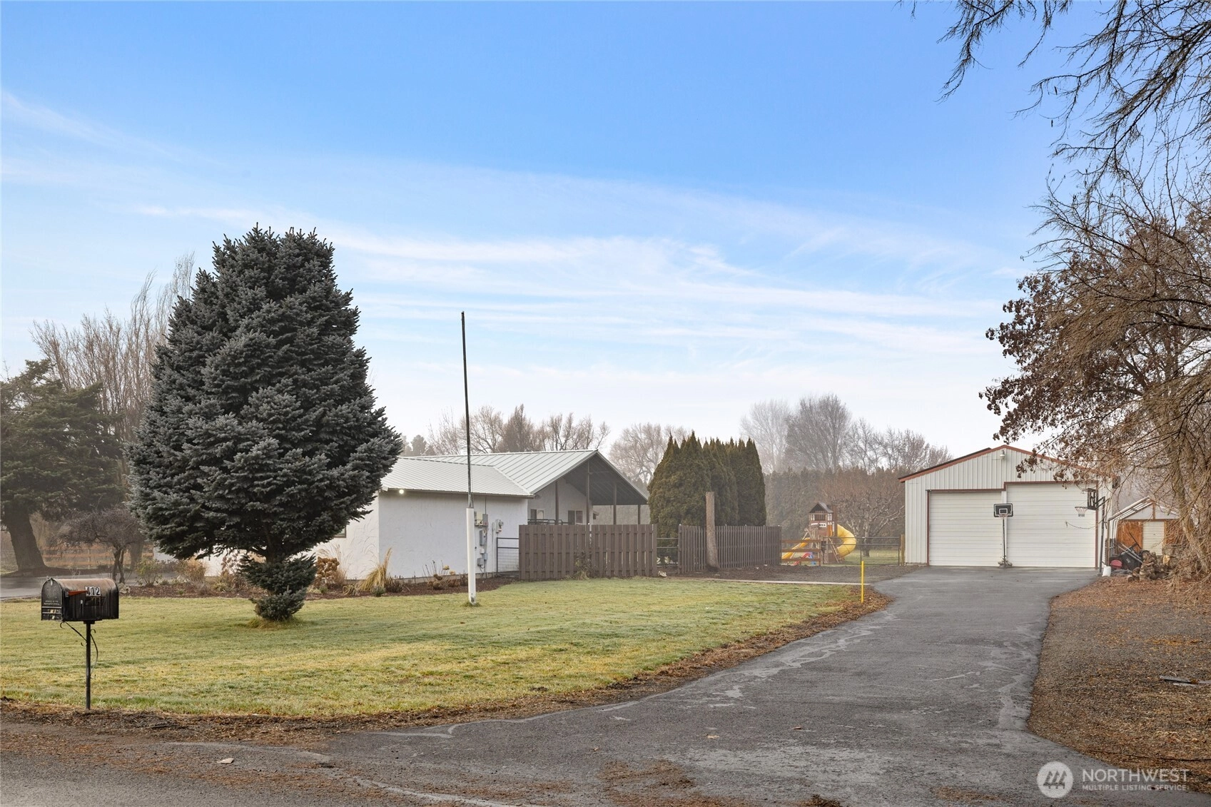 Located in the highly sought-after Grasslands neighborhood, this 1,592 sq ft rambler offers 3 bedrooms, 1.75 baths, and sits on a spacious 1.38-acre lot just minutes from town. The home features a vaulted living room with wood-covered ceiling and cozy fireplace, plus an updated kitchen with quartz countertops and an attached 2-car garage. A standout 28’x44’ shop with three roll-up doors and a loft adds incredible versatility. Outside, enjoy a fully fenced backyard, in-ground sprinklers throughout, fruit trees, two paved driveways, and a concrete covered patio. Newer solar panels add efficiency and long-term value!