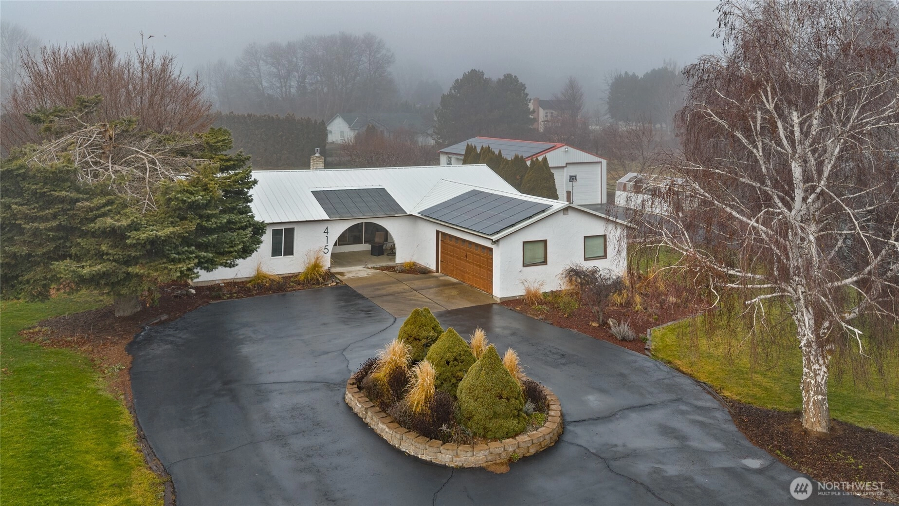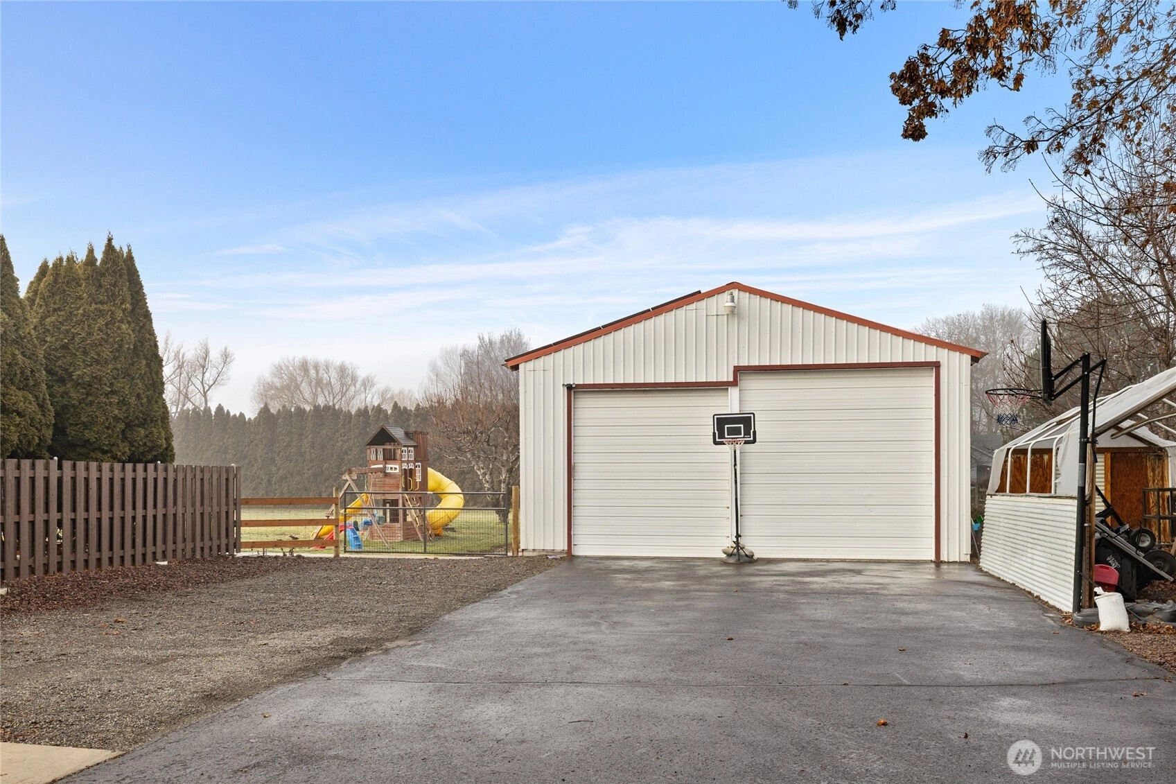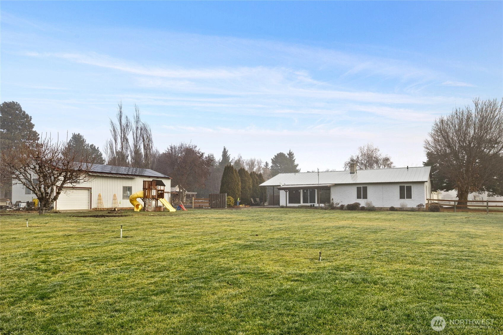 Located in the highly sought-after Grasslands neighborhood, this 1,592 sq ft rambler offers 3 bedrooms, 1.75 baths, and sits on a spacious 1.38-acre lot just minutes from town. The home features a vaulted living room with wood-covered ceiling and cozy fireplace, plus an updated kitchen with quartz countertops and an attached 2-car garage. A standout 28’x44’ shop with three roll-up doors and a loft adds incredible versatility. Outside, enjoy a fully fenced backyard, in-ground sprinklers throughout, fruit trees, two paved driveways, and a concrete covered patio. Newer solar panels add efficiency and long-term value!