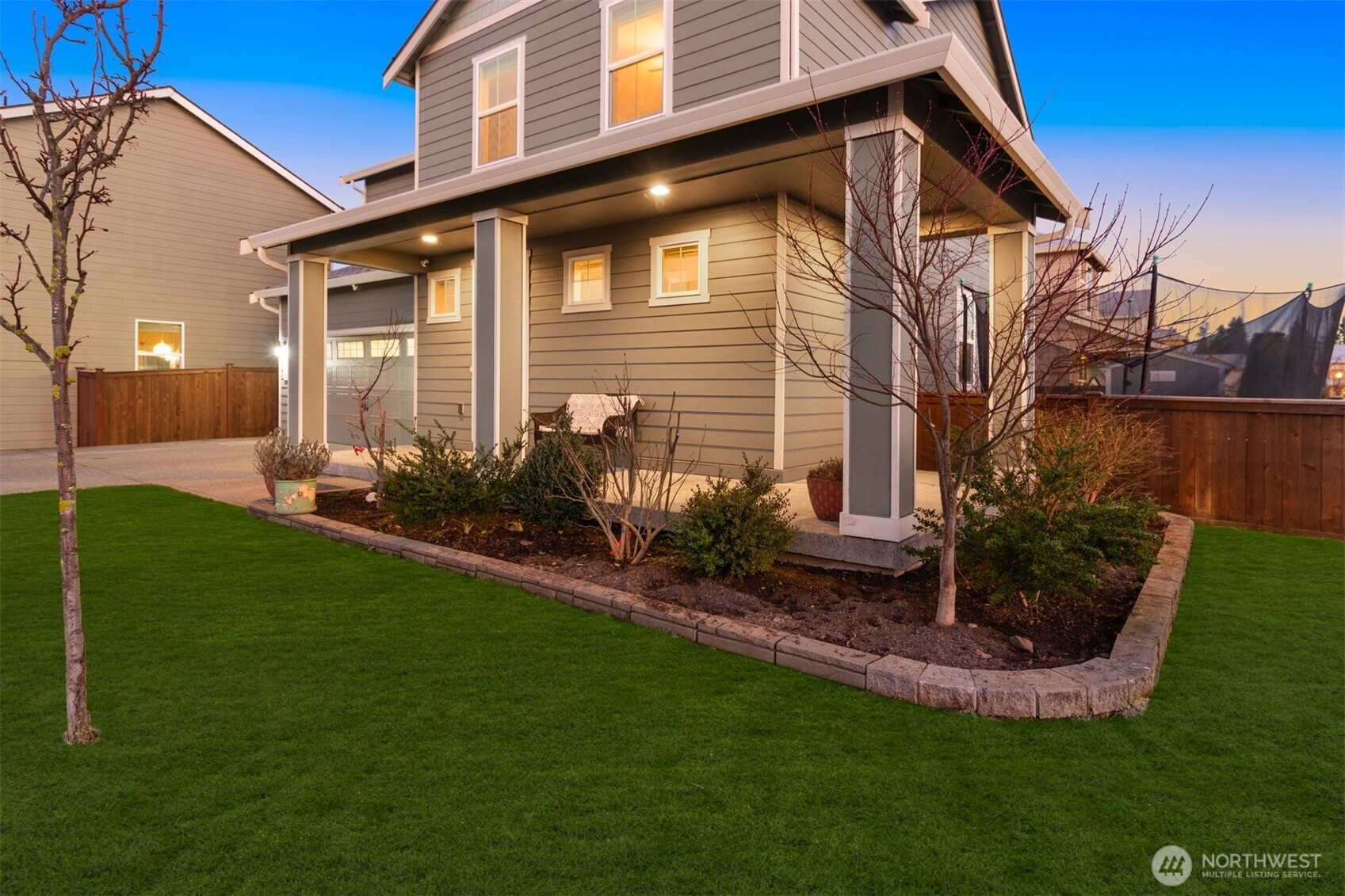 This freshly updated 4-bedroom home sits on a generously sized lot with a wrap-around front porch and true mountain views. Enjoy a view of the Cascades, Mount Rainier, Mount Peak, and the Olympic Mountains. The property features a sprinkler system, an extended driveway with room for additional parking, and a stone walkway connecting the front of the home to the backyard. Comfort and preparedness are covered with central A/C, a heat pump, and wiring in place for a generator. Inside, the home has been repainted, creating a bright, move-in-ready feel. Parts of the exterior have been repainted including a freshly stained fence to add to the overall curb appeal. Conveniently located near neighborhood walking trails, nearby parks, and an easy trip to downtown Enumclaw, this home offers a great blend of everyday convenience and scenic surroundings.