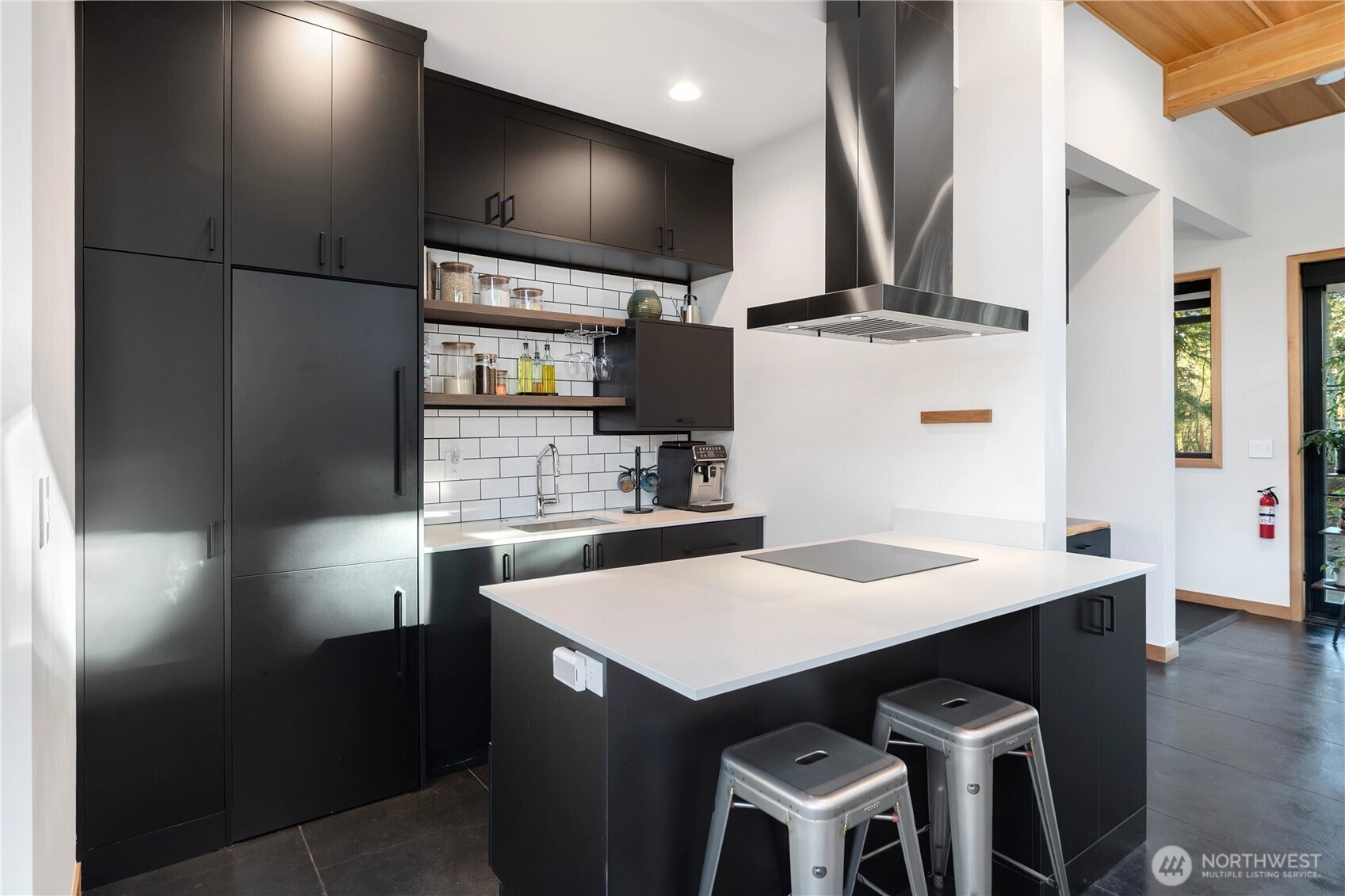 Stunning Lindal cedar custom home built in 2024 with exceptional quality throughout with soaring ceilings, skylights, radiant heated floor and expansive slider doors that flood the home with natural light. Smart switches and Starlink included for modern, connected living. The kitchen is outfitted with Fisher & Paykel appliances and opens up to the main living space. Enjoy the private patio and newly landscaped grounds, both complement the striking architecture. There is an additional outside utility room and EV charger. This home is all about quality per square foot and is a rare opportunity to own a beautifully crafted, turnkey cedar home with timeless design and contemporary comfort.