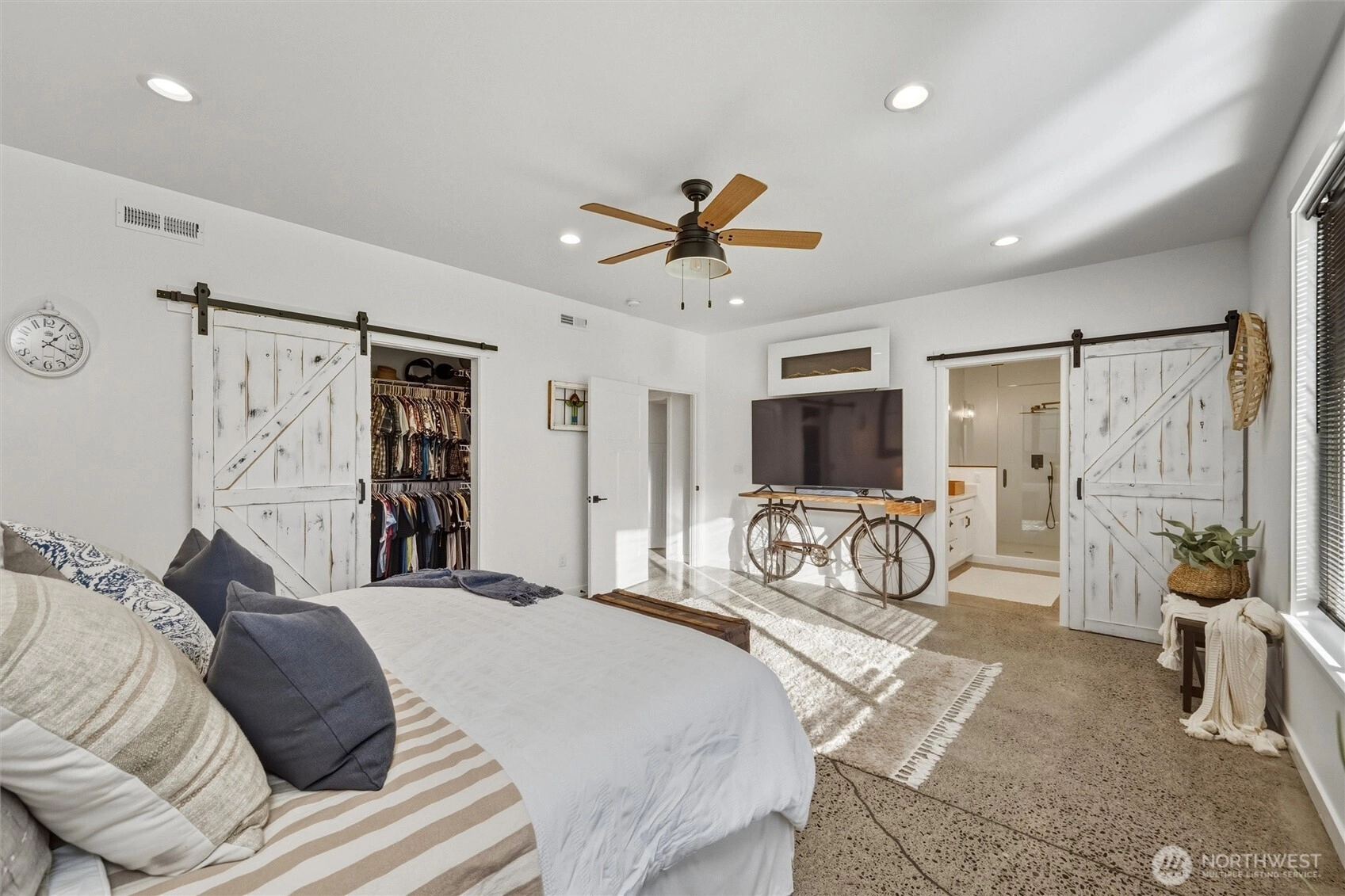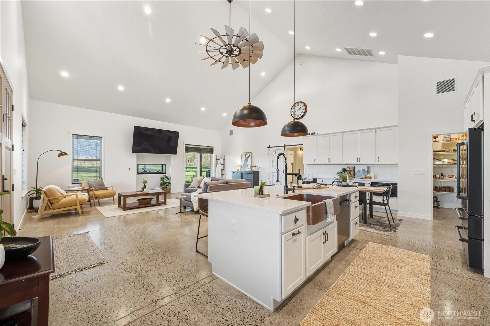 Immaculate, custom built home located on a private, gated 1.19 acres at the end of a small lane of high end homes. You'll love the single level living of high quality craftmanship with attention to detail inside & out! Includes an amazing ADU offering a private entrance & self-contained living, full bathroom with a sauna —perfect for multi-generational living, long-term guests, and is currently income generating as a successful short term vacation rental. One of the best features is the pristine 2004sf heated garage with tall ceilings, drive-thru RV doors, plenty of workshop area, lots of parking, & space for all the toys and hobbies. This home was designed for effortless living, with a sprawling open floorplan, polished concrete floors throughout, generous living spaces, vaulted ceilings, & abundant natural light. A chef's kitchen with high end appliances, walk in pantry, eating bar, dining space, & more. Private primary bedroom with a dreamy spa-like en-suite, walk-in steam shower, dual vanities with copper sinks. The seamless indoor-outdoor flow creates multiple spaces for entertaining guests and everyday enjoyment. The covered wrap around patio has a hot tub, plus a fireplace & tv area, and faces east looking over the big level yard and the stunning mountain views. An exceptional opportunity for many lifestyles, including those looking for a special home to downsize without compromise, create flexible living arrangements, or secure a one-of-a-kind Whatcom County estate.