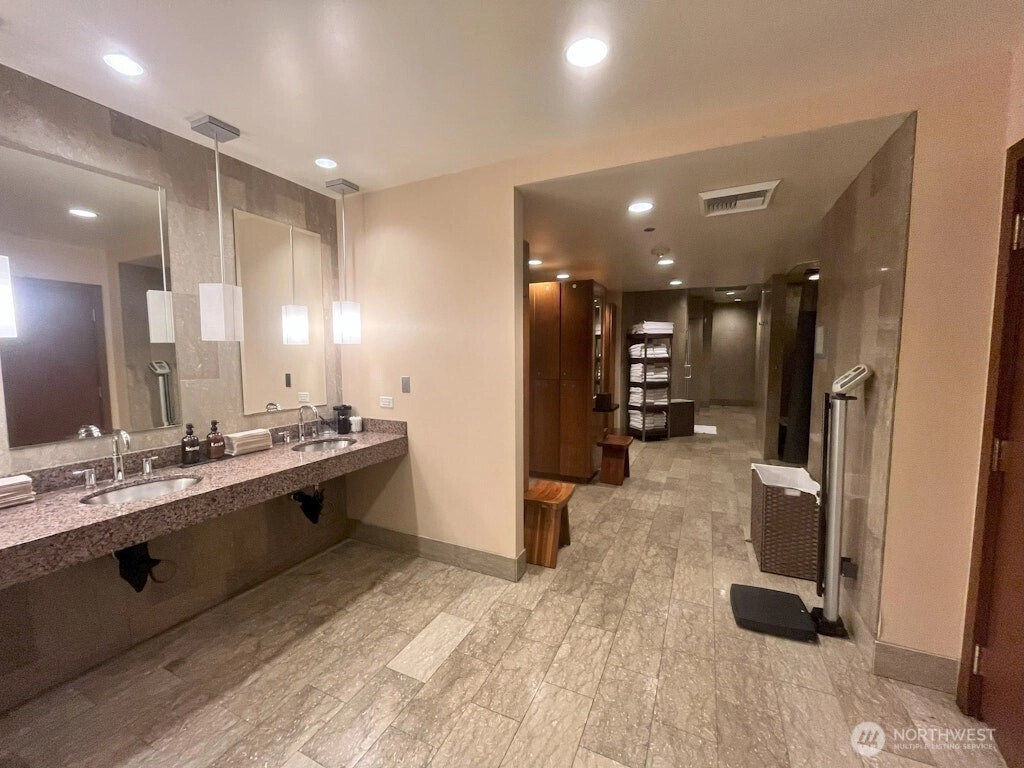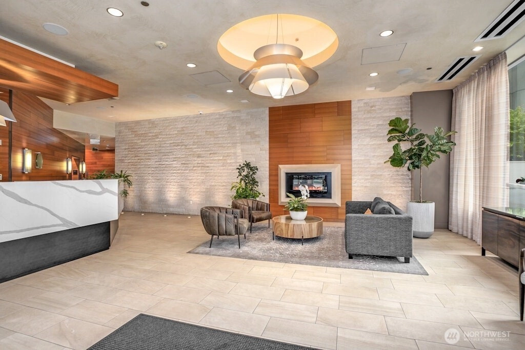 Set in one of downtown Seattle's most coveted locations, this exceptional two bedroom residence at Olive 8 defines elevated urban living. Floor to ceiling windows showcase sweeping views of the skyline, Puget Sound, and the Olympic Mountains. The refined, open floor plan is ideal for entertaining, featuring a chef's kitchen, elegant dining area, and a living room with fireplace that opens to a spectacular corner lanai. The primary suite offers romantic views, a generous walk-in closet, and a spa-like bath. A serene guest suite with custom built-ins and a private bath, plus a dedicated office, complete the home. Enjoy world-class amenities shared with the Hyatt and step outside to Seattle's premier dining, shopping, and culture. Easy access to lightrail and Pike Place Market.