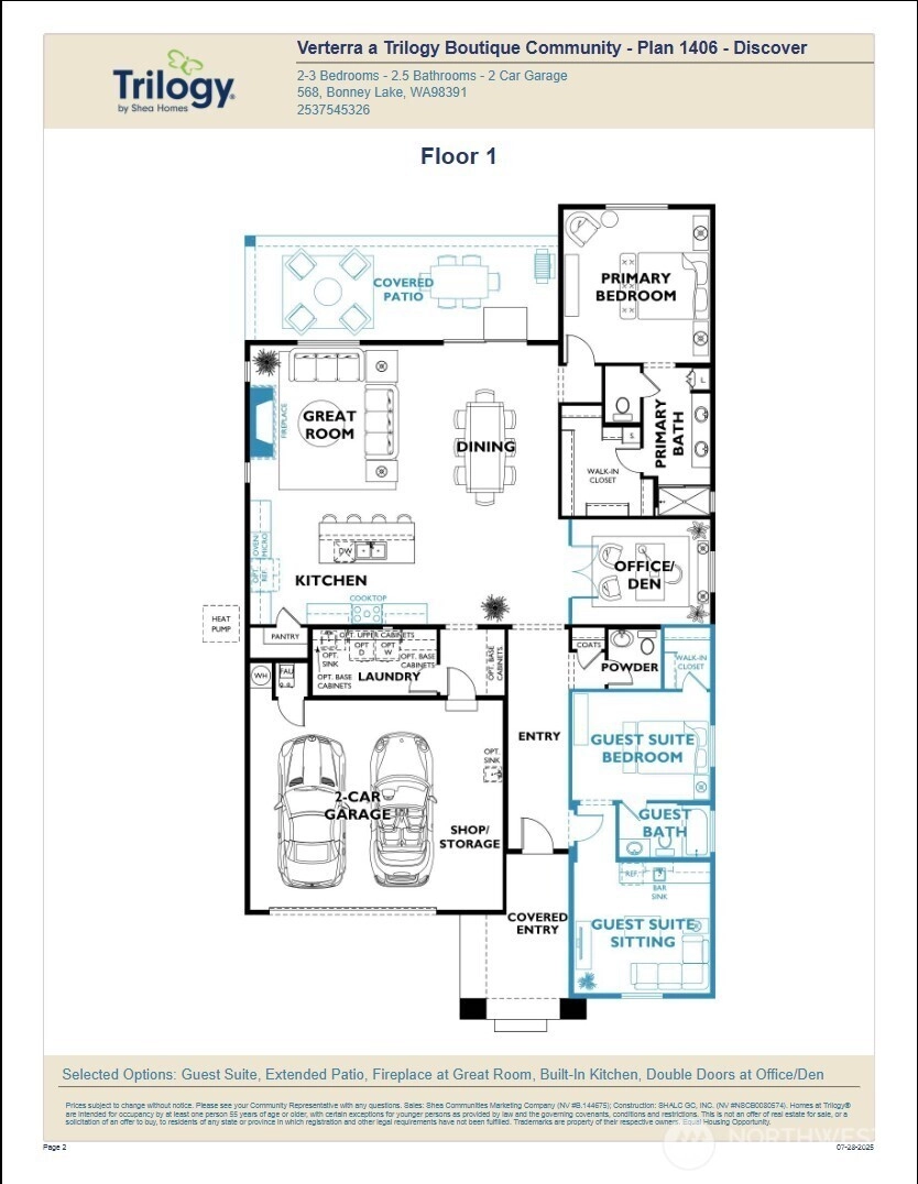Experience the best of 55+ resort-style living at Verterra in Tehaleh! This move-in-ready Discover floor plan boasts 2 bedrooms, 2.25 baths, a versatile den, and stunning designer finishes throughout. The open, airy great room is anchored by a warm gas fireplace, perfect for cozy evenings or entertaining guests. The chef’s kitchen features a generous island for cooking and gathering, while the inviting covered patio offers a seamless indoor-outdoor lifestyle ideal for relaxing or hosting. Just minutes from dining, shopping, and recreation in Tacoma, and only 40 minutes from Seattle, you can enjoy the perfect balance of convenience and tranquility. Built by America's Most Trusted Active Adult Resort Builder for 14 Years, this exceptional home invites you to Live Happier® at Verterra - don’t miss your chance to embrace the lifestyle you deserve!