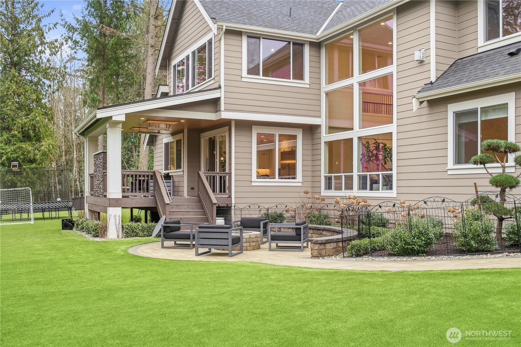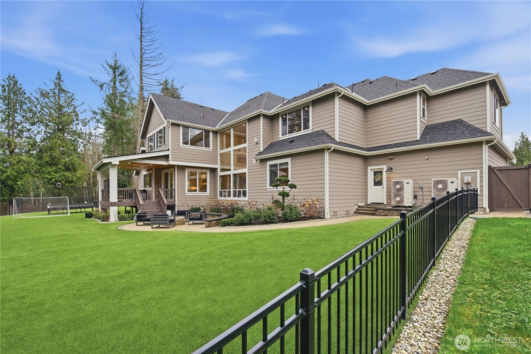 Stunning luxury home built in 2023 by Terrene Homes, offering 4,690 sq. ft. of thoughtfully designed living space on over 2 private acres. This exceptional residence features 5 bedrooms and 5 bathrooms, with a grand vaulted entry and soaring ceilings in the great room that create an open and inviting layout. On the main level you have the gourmet kitchen equipped with high-end appliances, premium finishes, ample cabinetry, a walk-in pantry, and a butler’s pantry that seamlessly connects to an inviting dining room making it ideal for both daily living and entertaining. Also on the main level you have the guest suite as well as the office. The grand staircase leads you to the spacious primary suite with its spa-like primary bathroom on the west wing, and well-appointed 3 bedrooms and the bonus room on the east wing, providing privacy, comfort and flexibility. Hardwood floors throughout. Enjoy two outdoor living spaces. A covered area with exterior fireplace, ceiling heaters and an uncovered area with a gas connected fire pit, perfect for year-round use. A covered jacuzzi tub just feet away. Fully fenced backyard features green turf with the property extending well beyond the fenced area, offering additional usable land and privacy. The oversized 3-car garage offers abundant space for parking, storage, or recreational needs. Quality craftsmanship, modern design, and a serene setting combine to make this property a rare opportunity for luxury living with privacy and space.