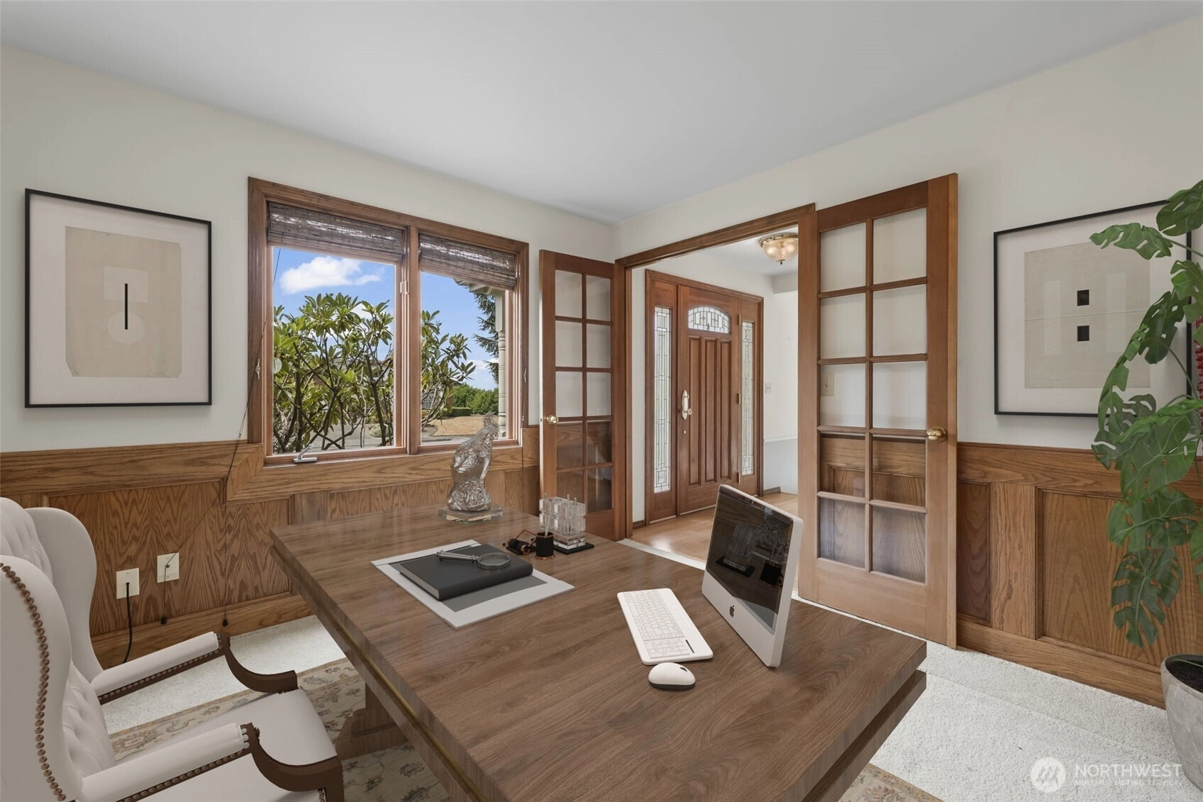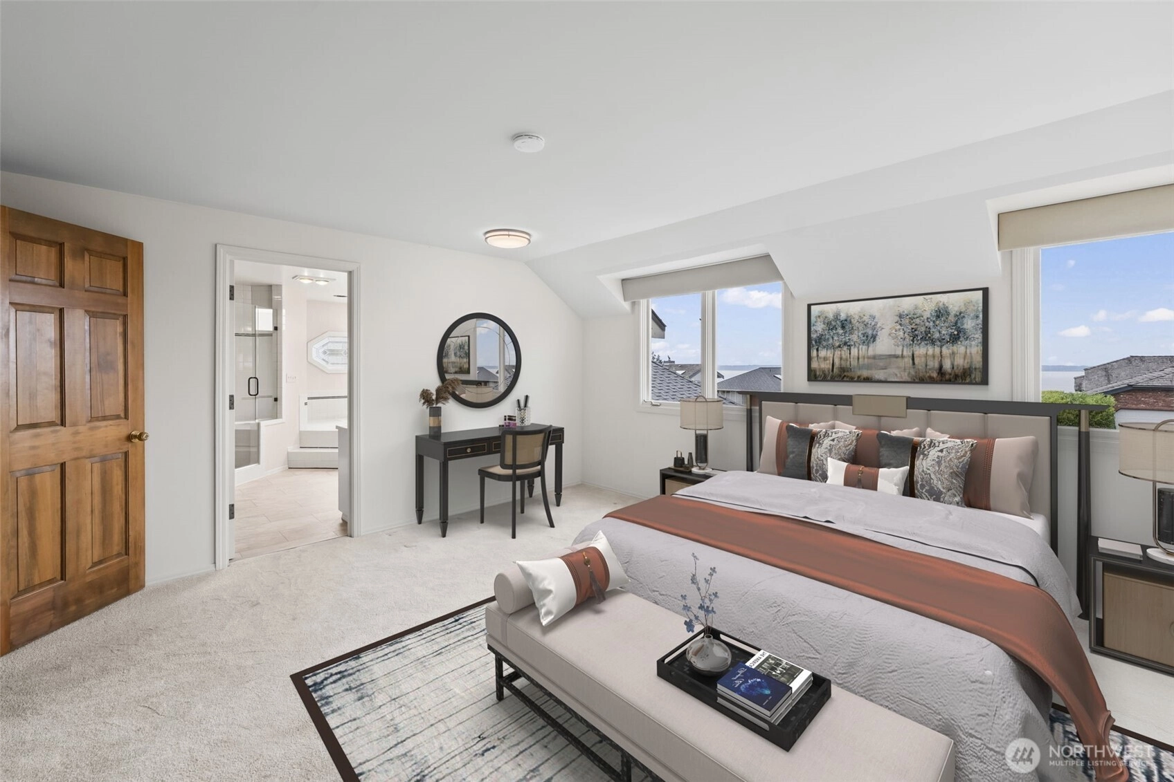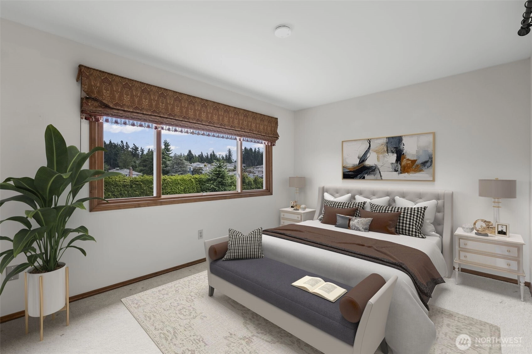 Welcome Home to this Stately 3 bedroom 2.5 bath nestled in the highly sought after Picnic Point neighborhood. Step inside to classic and elegant design with an open and spacious layout. Main level offers formal living, dining, office, powder room, laundry, and kitchen featuring granite countertops, stainless steel appliances and beautifully refinished hardwoods; bonus living room, 2 gas fireplaces, and sliding door to the tranquil garden backyard. Upstairs enjoy the primary suite featuring views of the Puget Sound and Olympic Mountains, 5 piece bath with new tile & walk in closet, 2 additional bedrooms, and guest bath. Home features brand new 50 year roof, and freshly laid sod. Enjoy the nearby private neighborhood pond, park, and walking trails encapsulating the peaceful Picnic Point lifestyle.