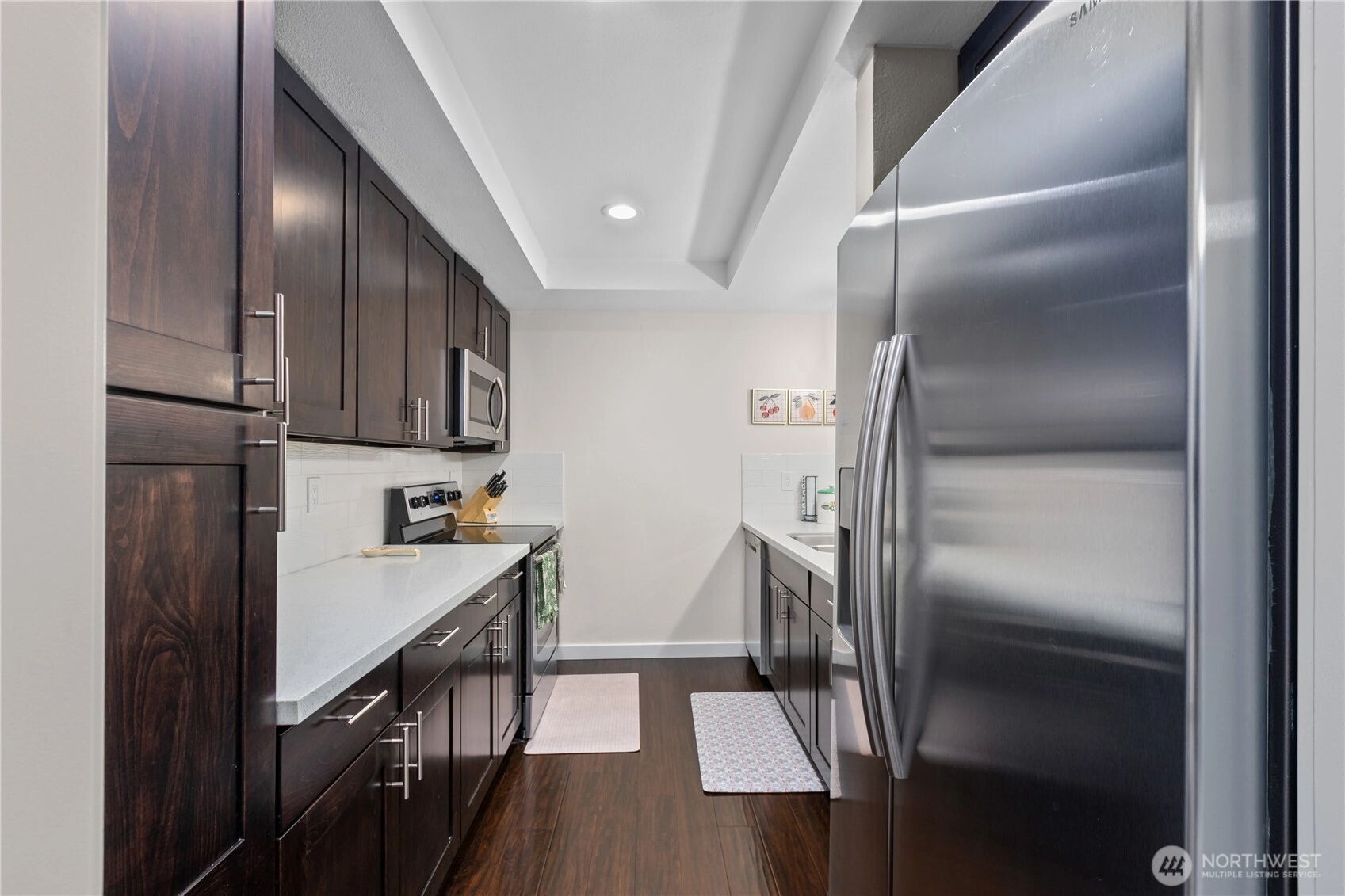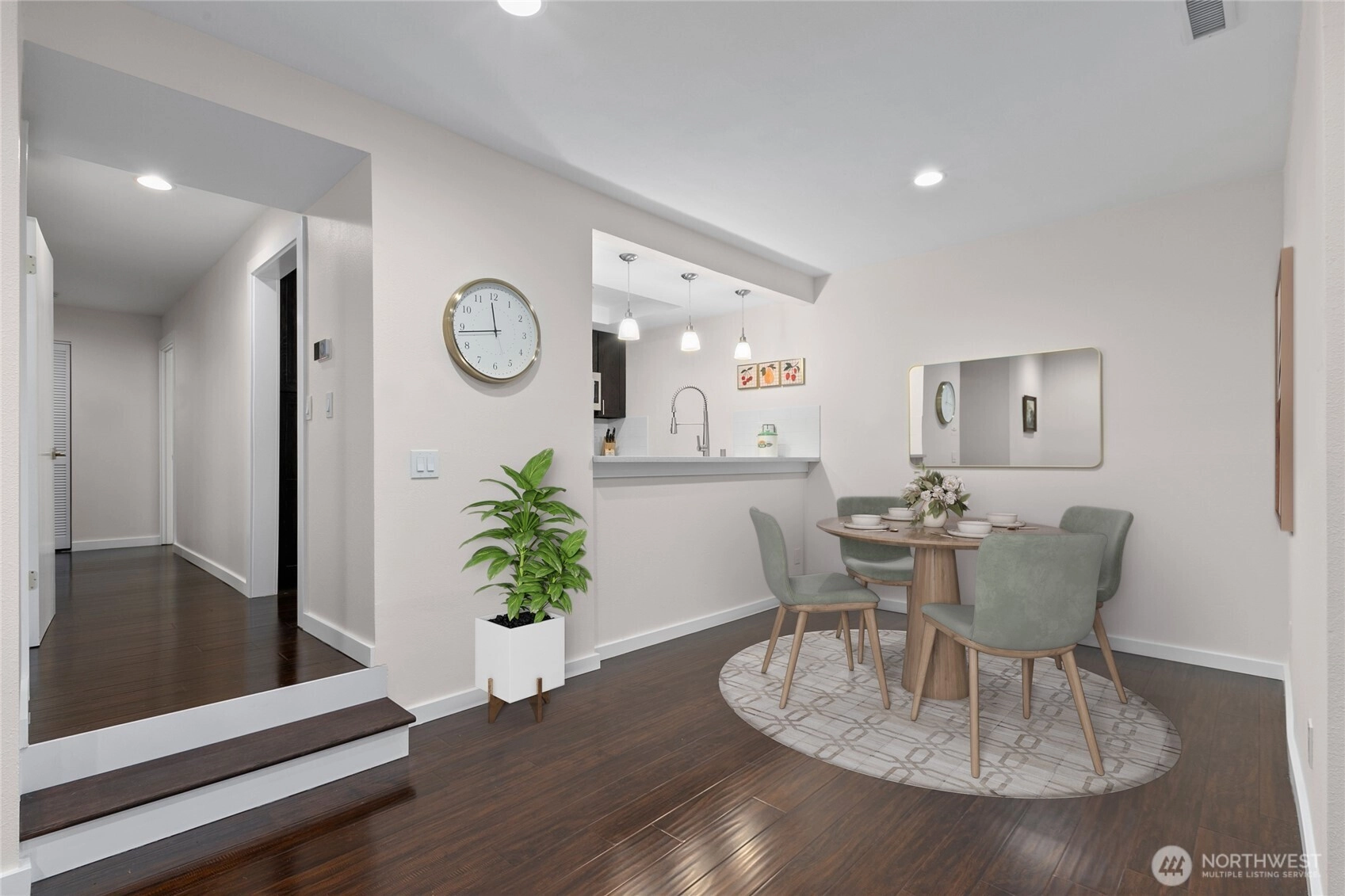 Beautifully updated 2-bedroom, 1.5-bath, 1,015 sq ft condo designed for modern living. Fresh paint throughout creates a bright, move-in-ready atmosphere, while hardwood floors anchor the main spaces, complemented by soft carpeting in the bedrooms. The upgraded kitchen features modern finishes perfect for daily meals and entertaining, and the updated bathrooms feel fresh and inviting with contemporary touches. A hospital-grade air filtration system ensures exceptional indoor air quality year-round. Individual AC heat pump provides personalized climate control, while energy-smart heat pump system powers the water heater and dryer, keeping utility costs low. The expansive covered back deck offers a quiet retreat for relaxing or entertaining in any weather. Abundant parking makes daily life convenient, and the location delivers unbeatable access—just minutes from Microsoft and downtown Redmond, putting work, dining, and entertainment within easy reach. Enjoy resort-style community perks including a pool and hot tub. This home combines practical features with lifestyle amenities in one of Redmond's most connected neighborhoods.