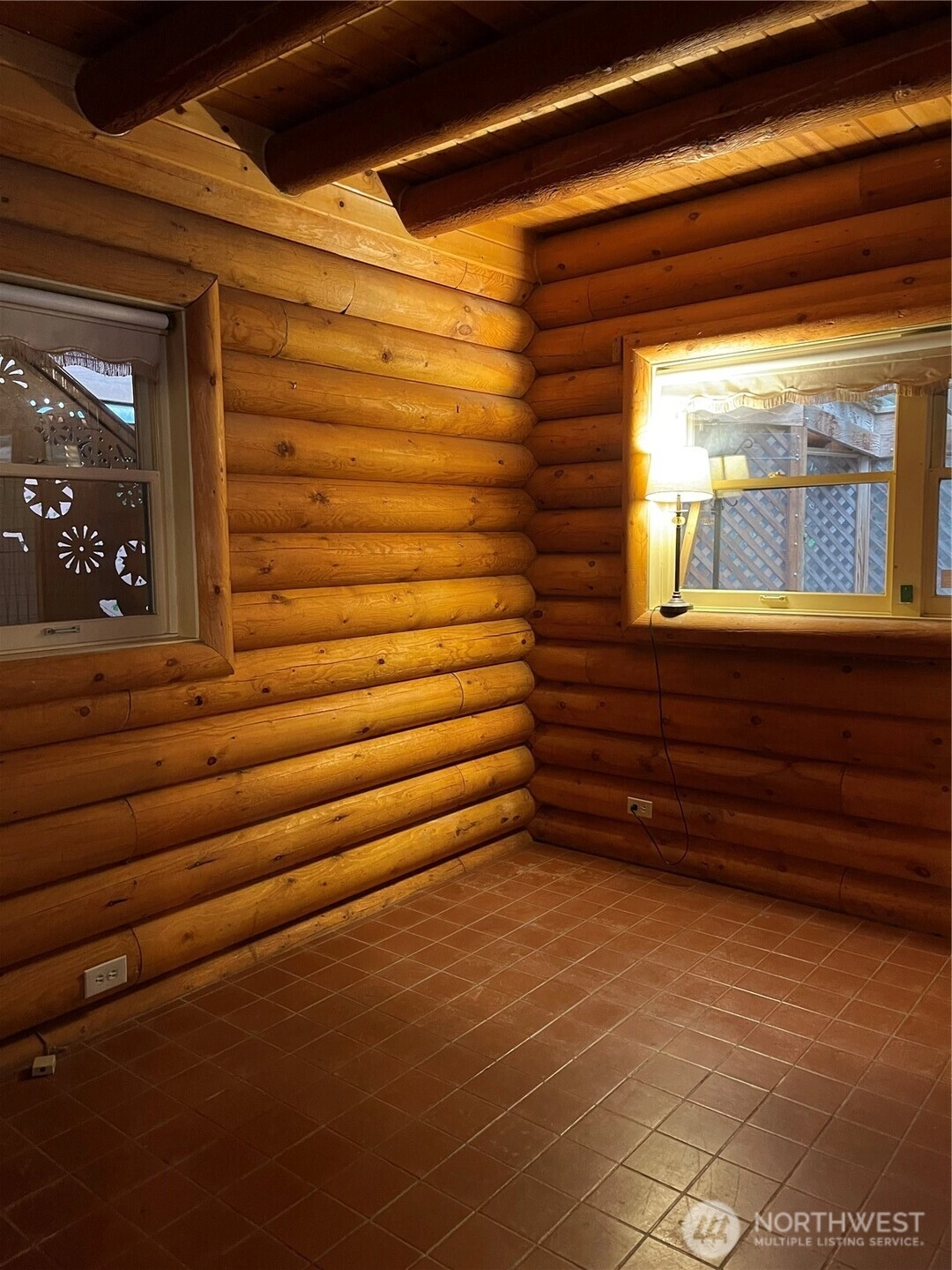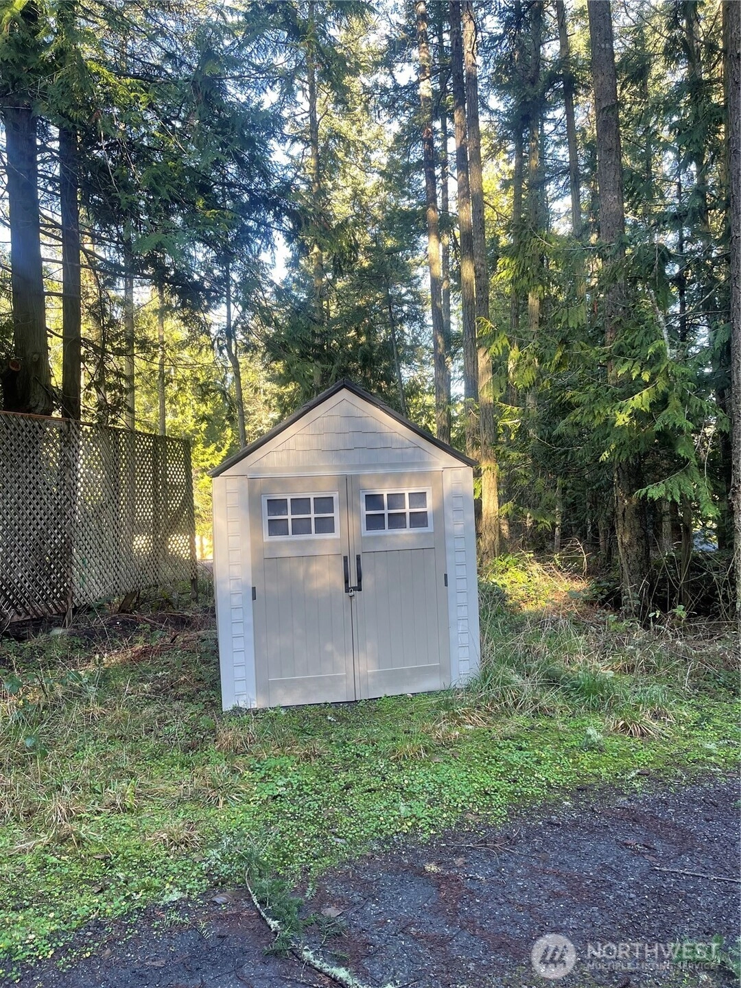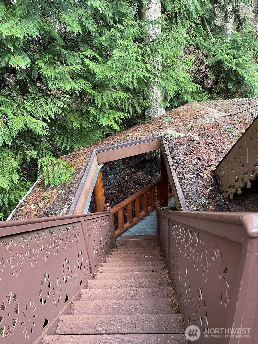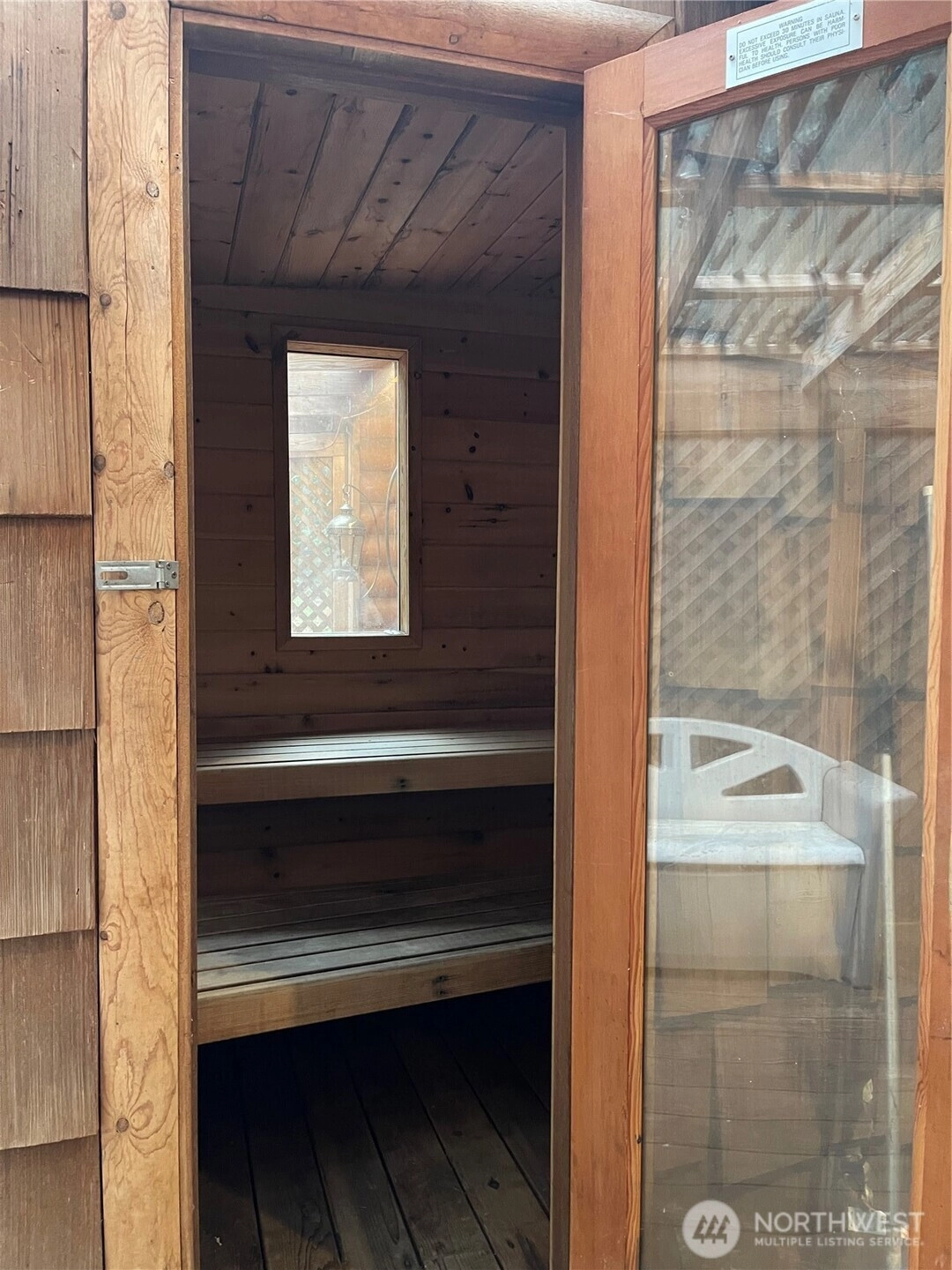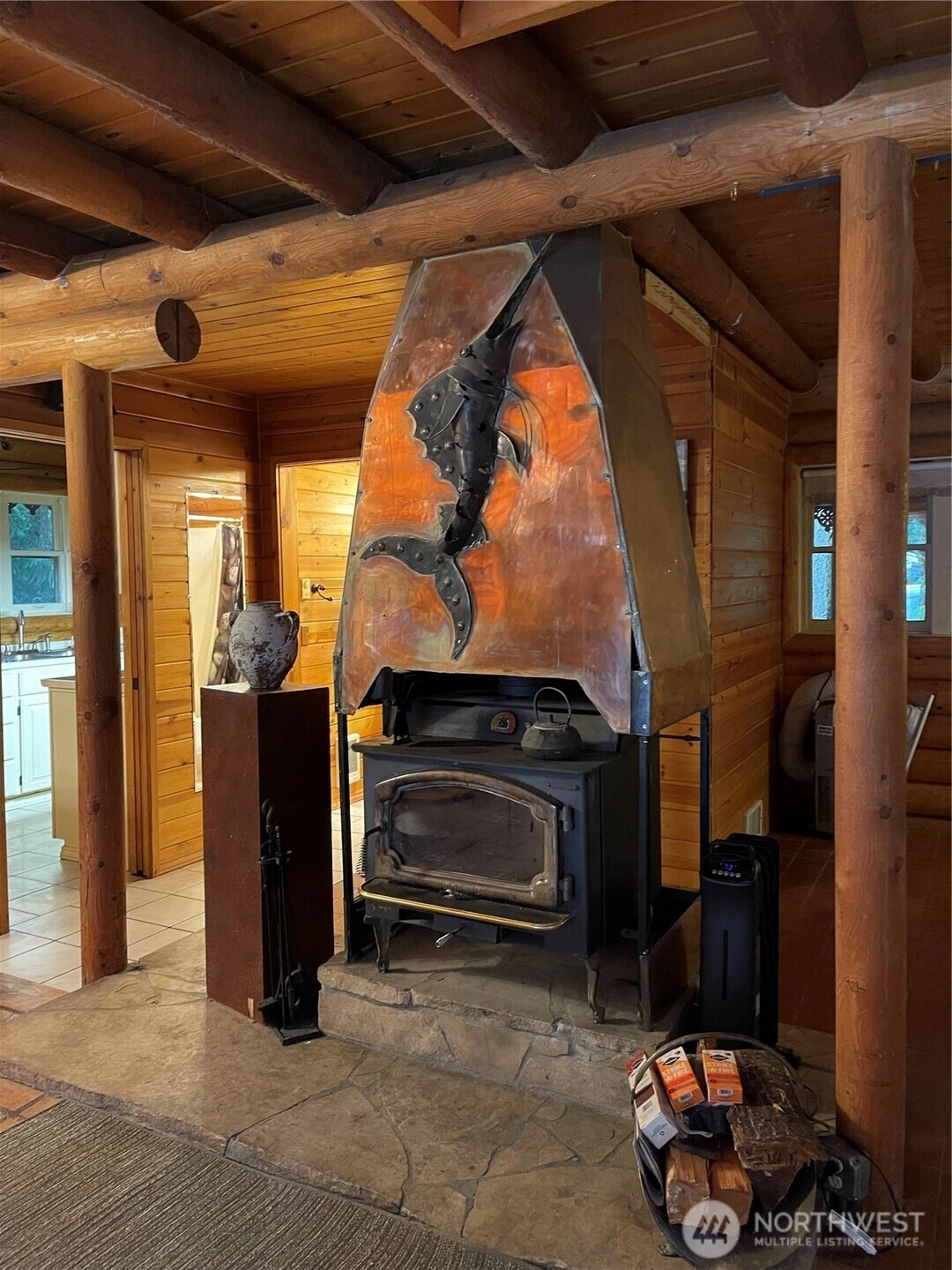 Charming Adirondack rustic log cabin located close to town is ready for your personal touches. Large partially wooded lot with 2 bedroom septic provides room for expansion. Main floor offers a surprisingly spacious kitchen, eating bar, dining space and living room w/beautiful wood stove, a full bath and semi-private sleeping space as well as a full laundry/utility room with access to the outside. The loft space includes a private half bath, Bed & wardrobe. Upstairs also has access to the outside with stairs down to private back deck which leads to an enclosed Spa area that features a sauna, hot tub and outdoor shower. Carport for additional dry storage. Nice front deck on the sunny side of the house is good for BBQing and entertaining. Large fire pit area and beautiful old growth cedars on the mossy hillside. Make this affordable property your cozy home or your next investment.