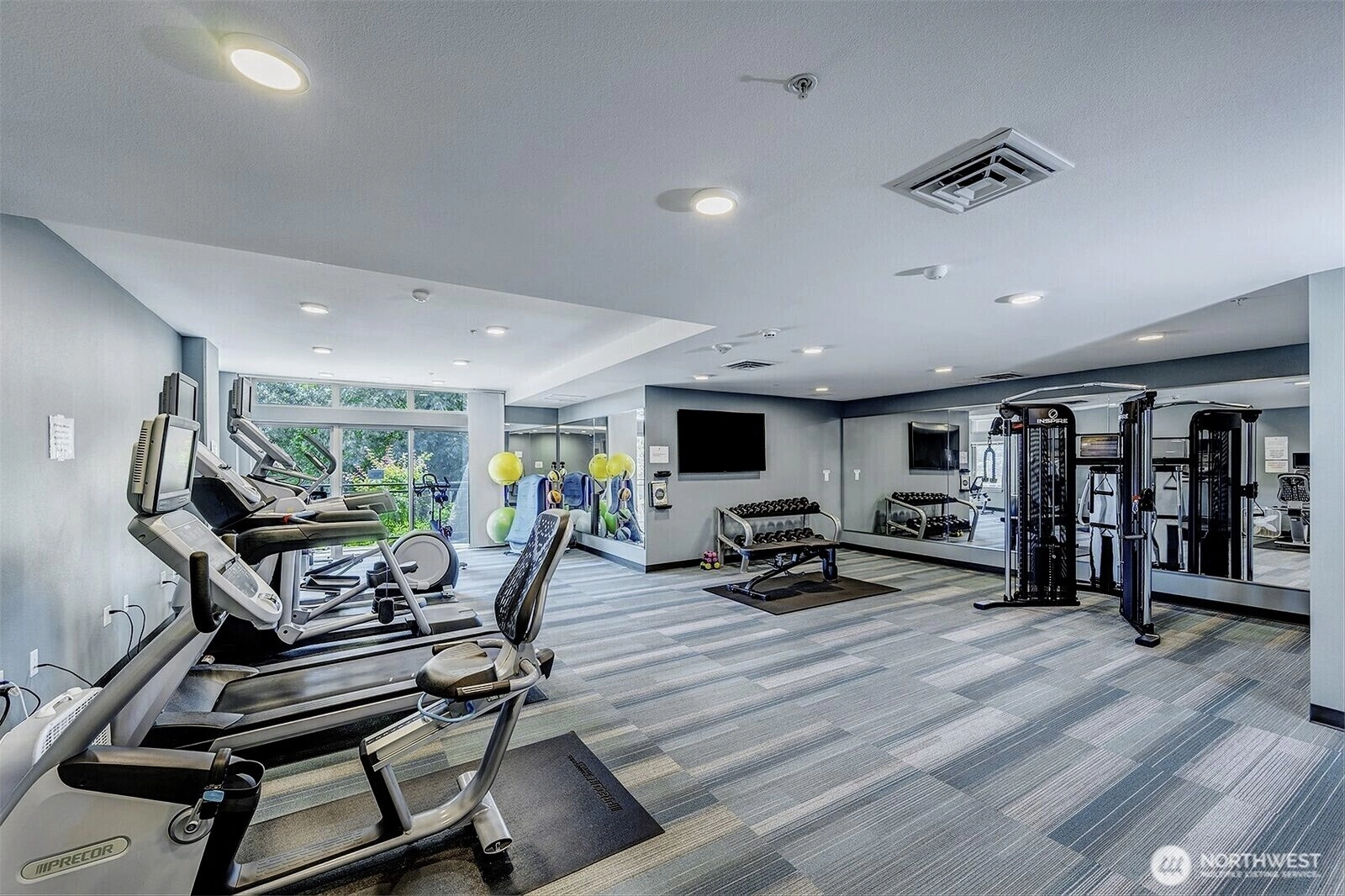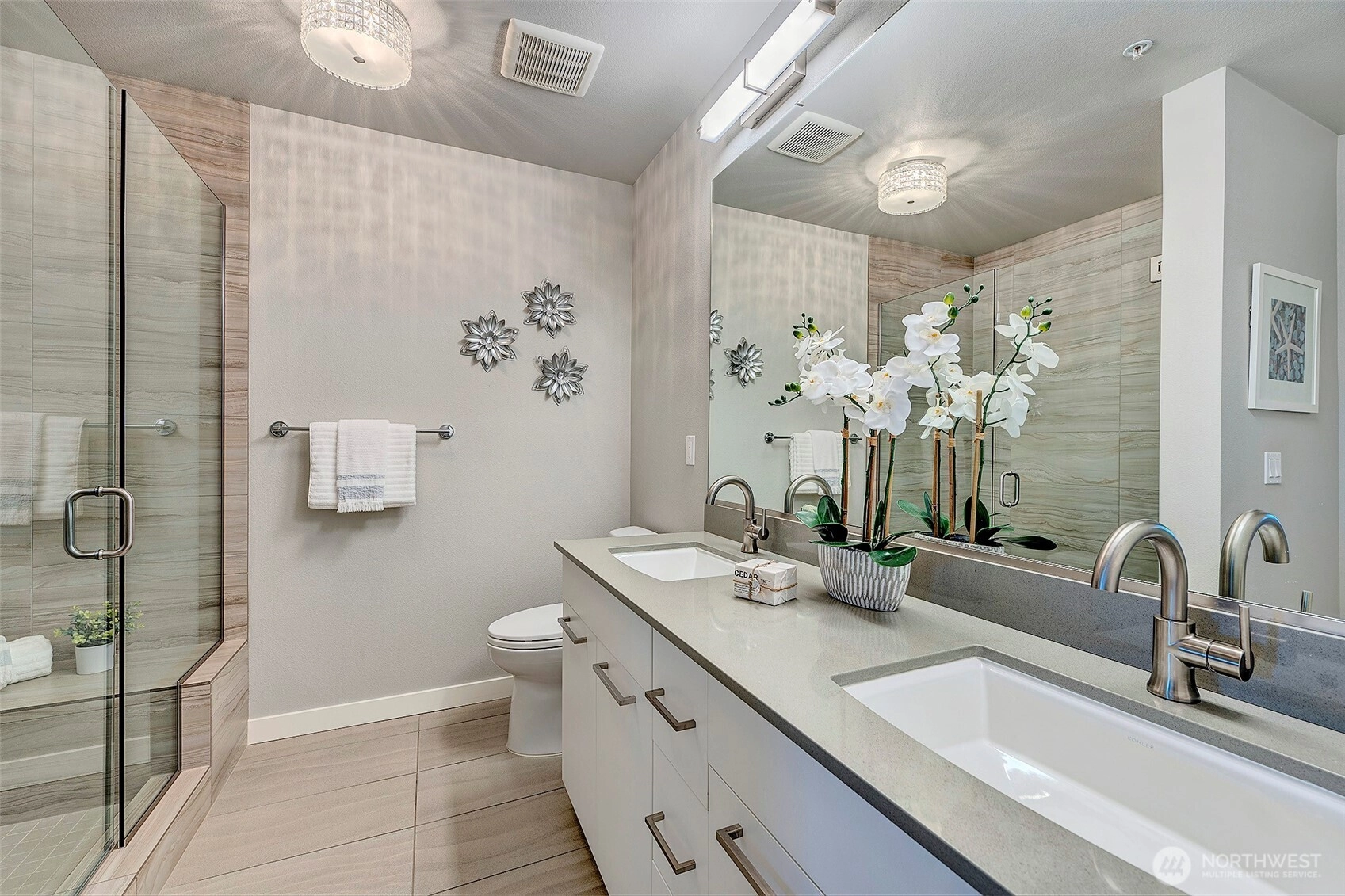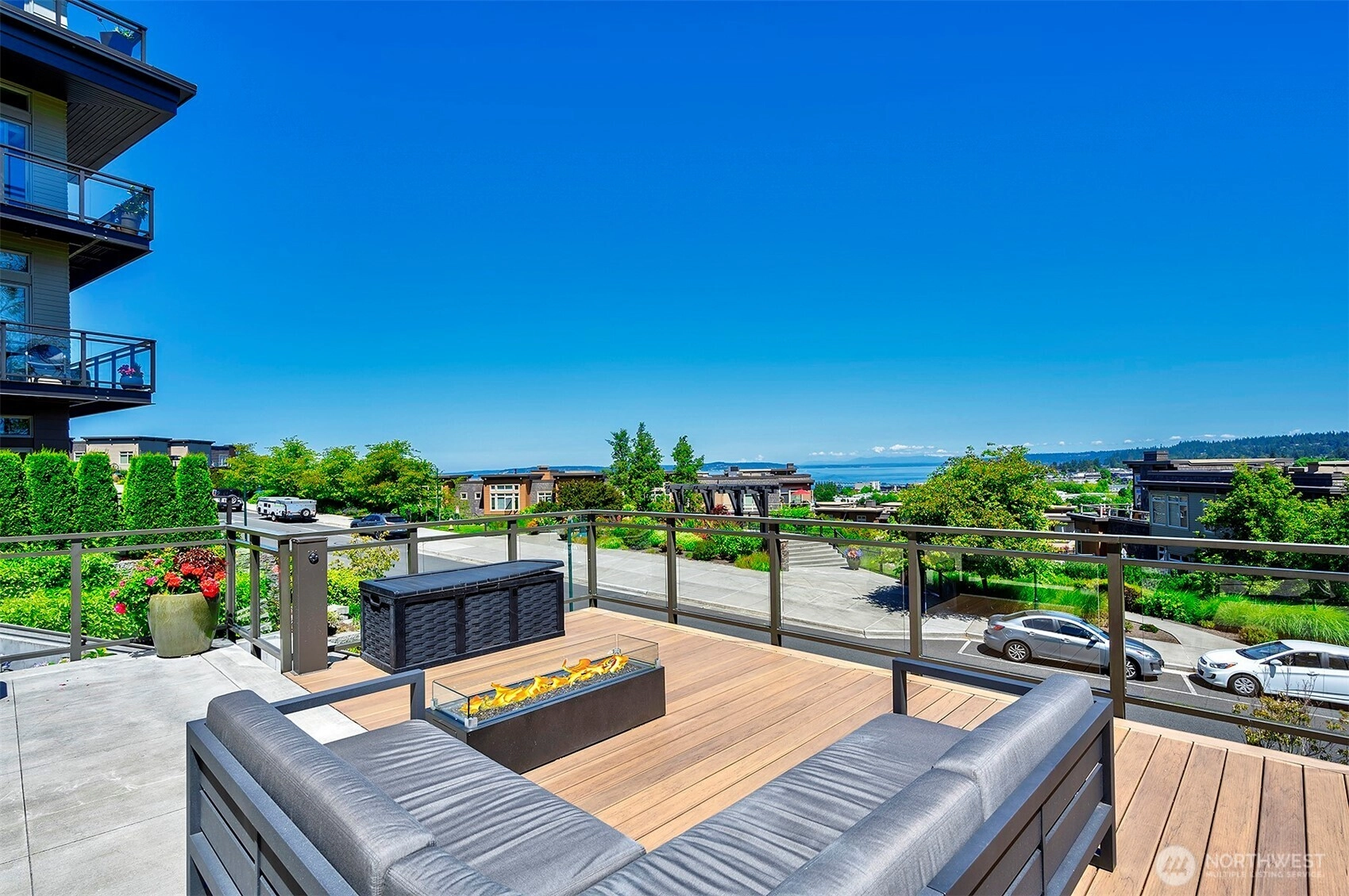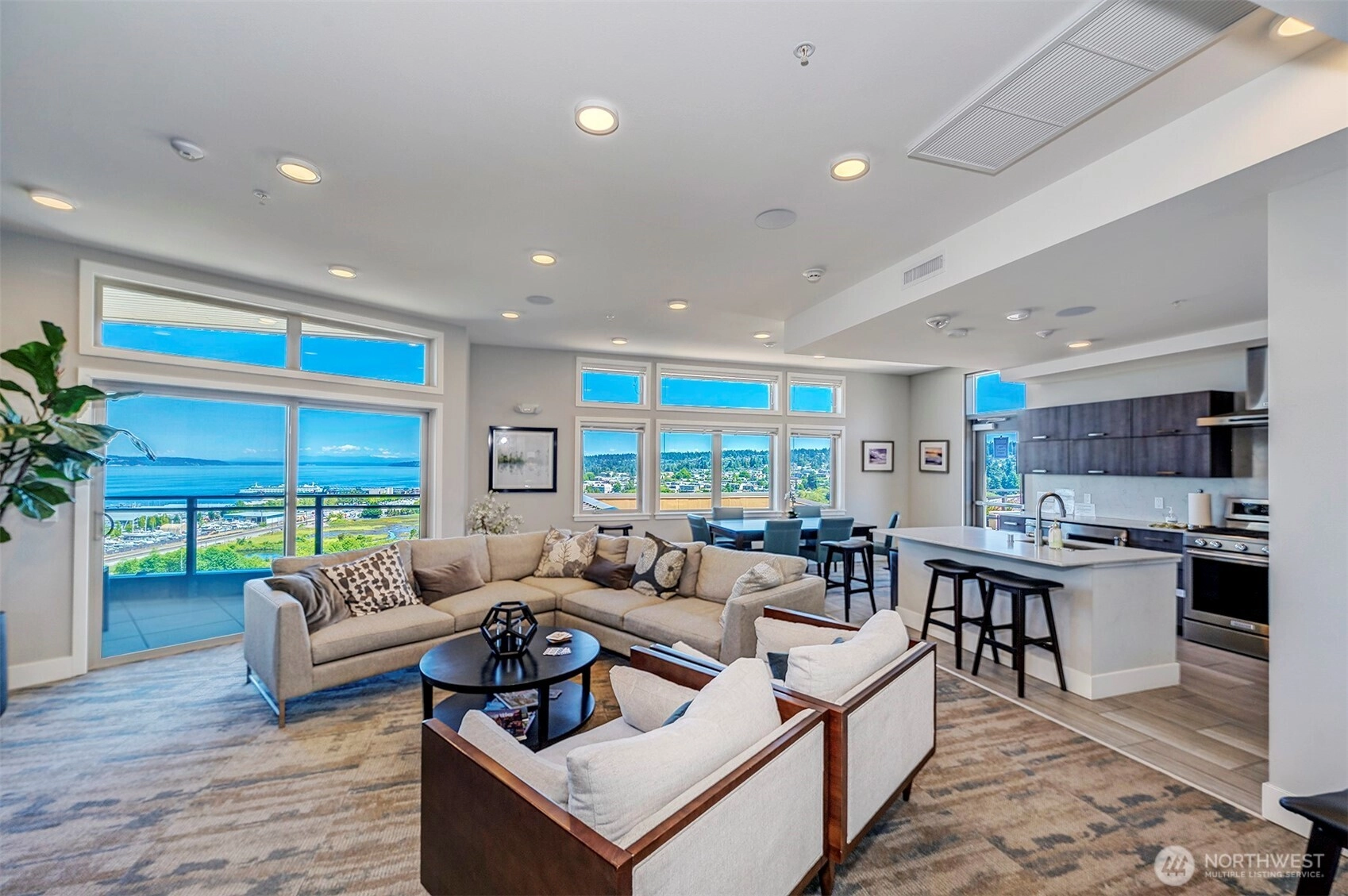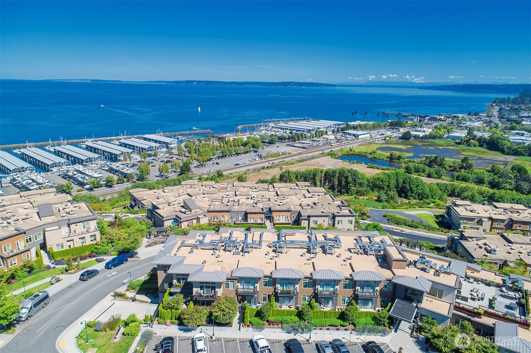 PRICE IMPROVEMENT-LOW DUES-NO RENTAL CAP! Experience refined resort-style living at coveted 50 Pine Street Condominiums. This elegant lock-and-leave residence offers light-filled interiors and partial Sound and Mountain views from every room. Gleaming engineered hardwood floors flow through the entry, kitchen, and living spaces, creating a warm, sophisticated ambiance. The inviting living room features a cozy fireplace and custom plantation shutters, while the gourmet kitchen impresses with slab quartz countertops, under cabinet lighting, stainless steel appliances, and beautifully updated cabinetry—perfect for entertaining. The view owner’s suite is a tranquil retreat with a spa-inspired bath and generous walk-in closet. A thoughtfully designed guest bedroom with walk-in closet and full bath ensures comfort for visitors. The full laundry room with abundant storage adds everyday functionality, and the private patio provides a peaceful place to unwind. Just a short stroll from Edmonds’ charming shops, dining, and waterfront. Amenities include a stunning rooftop deck with 180-degree views of Puget Sound, the Olympics, and Mt. Baker, reservable community spaces, a view courtyard with fireplace and state-of-the-art exercise facility. Two parking spaces, and additional storage included. Welcome home!