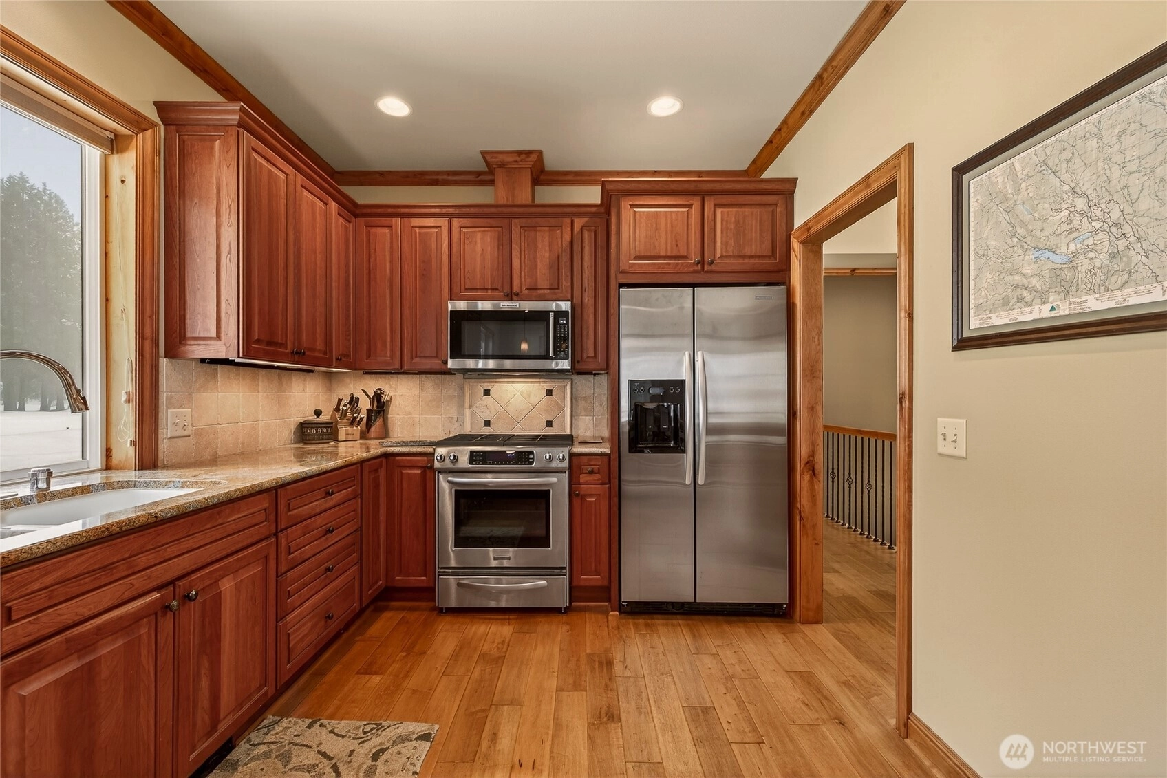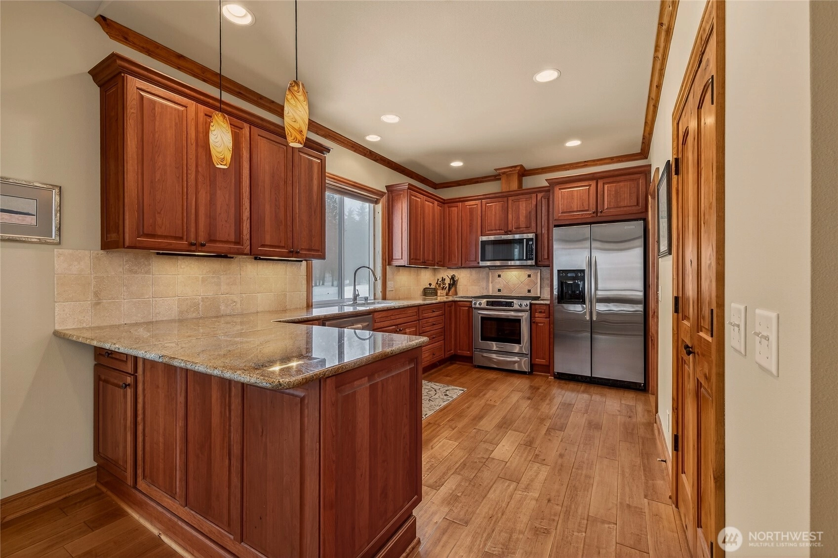Exceptional home near Lake Wenatchee! This custom-built 3-bedroom, 3-bath, 2412 square foot home was designed for all-season living. Enjoy wonderful views from the living, dining, and kitchen areas, ceilings 9 feet in height, gorgeous wood floors, gas fireplace, and an amazing kitchen. Separate office/den for your work-from-home needs, family room downstairs, and tons of storage. Roomy 2+ car garage, covered deck fronting the golf course, and a separate screened porch with French doors opening to the living area. If you cross-country ski, you'll love accessing the groomed trail system directly from your doorstep. Plus you're within 30 minutes of other ski trail systems in Plain, Stevens Pass, and Leavenworth!