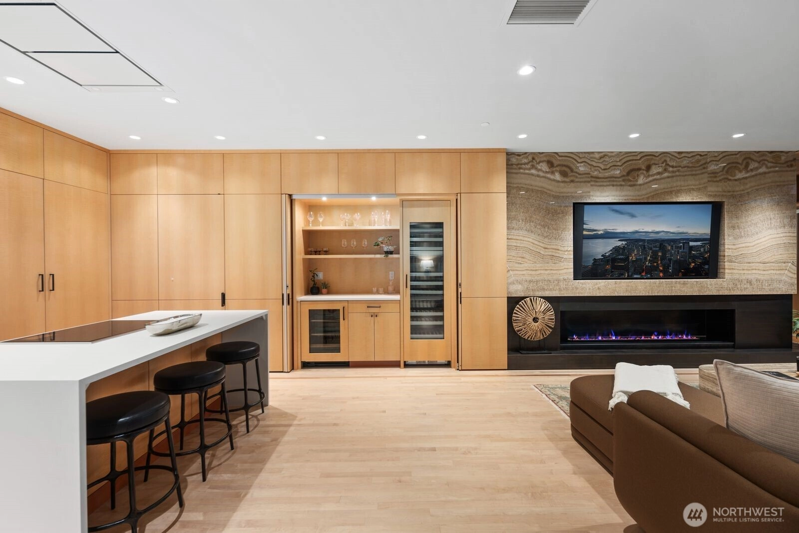 Remodeled by renowned architect Jim Olson of Olson Kundig, this exceptional Lake Washington condominium showcases his signature attention to fine millwork, paneling, and timeless design. Situated at the water’s edge, this rare single-level residence offers unobstructed views of Lake Washington, the Olympic Mountains, and the surrounding city skylines. The thoughtfully renovated kitchen, living, and dining spaces flow effortlessly together, creating an airy, light-filled environment with a seamless connection to the water beyond. A generous primary suite features an expansive walk-in closet and front gated yard, complemented by a second bedroom and bath. Additional highlights include a dedicated utility room and a separate mechanical room. Enjoy remarkable privacy while remaining just minutes from premier amenities. A comprehensive exterior refresh was just completed, enhancing both curb appeal and long-term value. An exceptional home whose quality and presence are best appreciated firsthand.