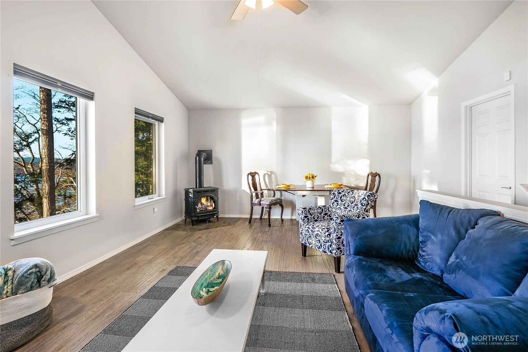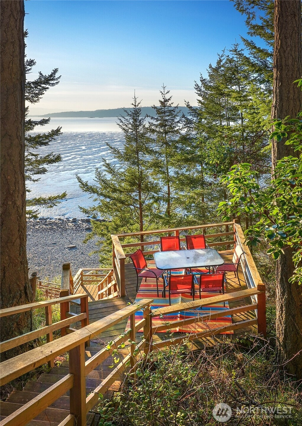 Fully Furnished Waterfront Property in a Stunning Forest Setting. Perched above your private beach sits a comfortable cabin with breathtaking views of Whidbey Island, the Olympics, and the Salish Sea. Kayak to the nearby islands after coffee on one of the many seating areas – all with stunning views. Wander down the newer deck steps lined with native Northwest trees. Views from the deck and every window are just as magical well into the evening. Work from home or a perfect getaway. One bedroom, one Bathroom & gathering spaces on each level. Bathroom on Main level. This functional layout can house more than it looks. Dine and shop in LaConner or travel to beyond as San Juan Islands and Vancouver B.C is within reach! Leased Land makes this dream property affordable.
