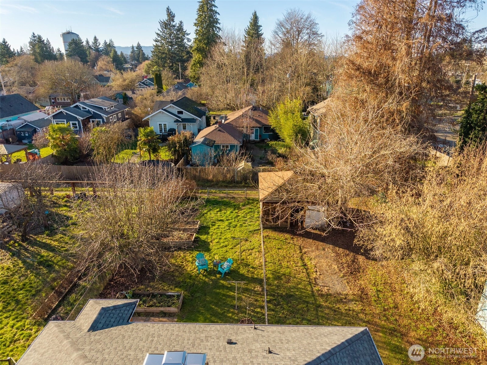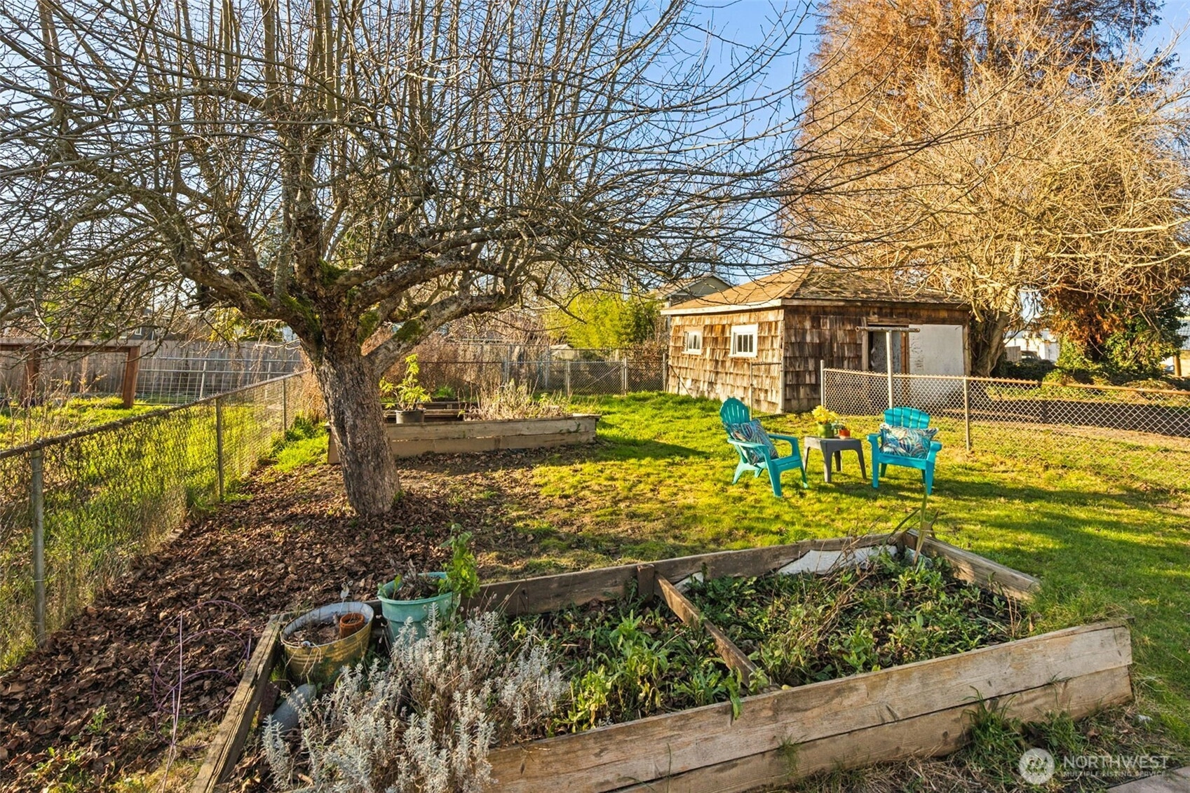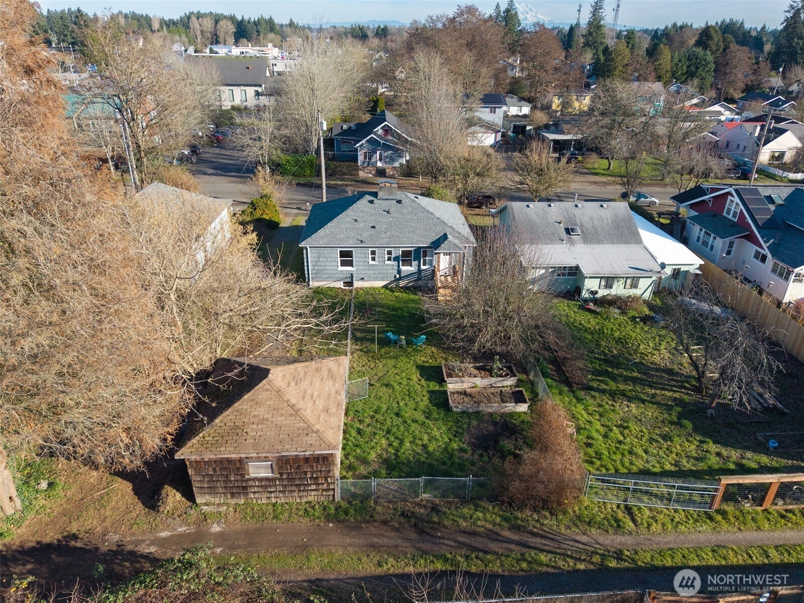 Discover comfortable updated living, charming vintage style and an enormous finished lower living space plus basement workshop, just a block to Lions Park, shops, eateries, grocery and buses for an affordable, and sustainable Oly Eastside urban lifestyle. Create garden-to-table meals in the fantastic remodeled kitchen space while growing your own grub in the raised beds on the fenced, large, light-filled yard with spacious outbuilding and alley access. Kitchen updates include a stainless appliance package, overhead chef-style range vent and loads of cabinet space plus a cozy window bistro nook to watch the world go by. The huge, lower rec-room and large basement/utility space with tons of storage, is a surprise addition to the easy flow upper 2bdrm/1 bath plan to total 1555 finished sq/ft of multiple use options plus unfinished space. Imagine game night, band practice, yoga, or extra guest/room-mate space on the lower level or relish cozy moments in the bay window living room with wood stove, laminate wood-style floors and sweet built-in shelving. New roof in 2020 and improved vinyl windows and large, remodeled bath. Spend mornings off in the cheery sun porch entry/sitting area with warm designer colors and chase the grey away! Off street parking and easy access to downtown fun, hospitals, or I-5 and north to JBLM or Work from home. Or ditch the car, stroll to easy local eateries, services and grocery or grab the corner bus, save dollars and live well, simply but spaciously.