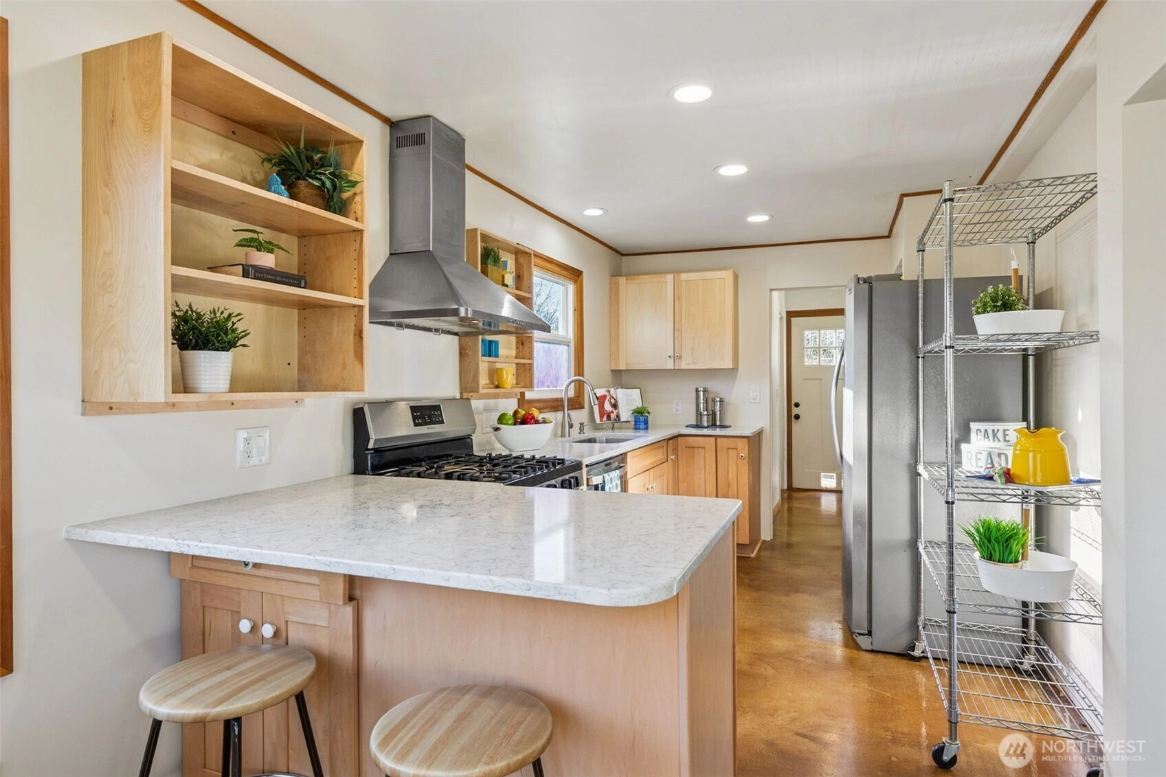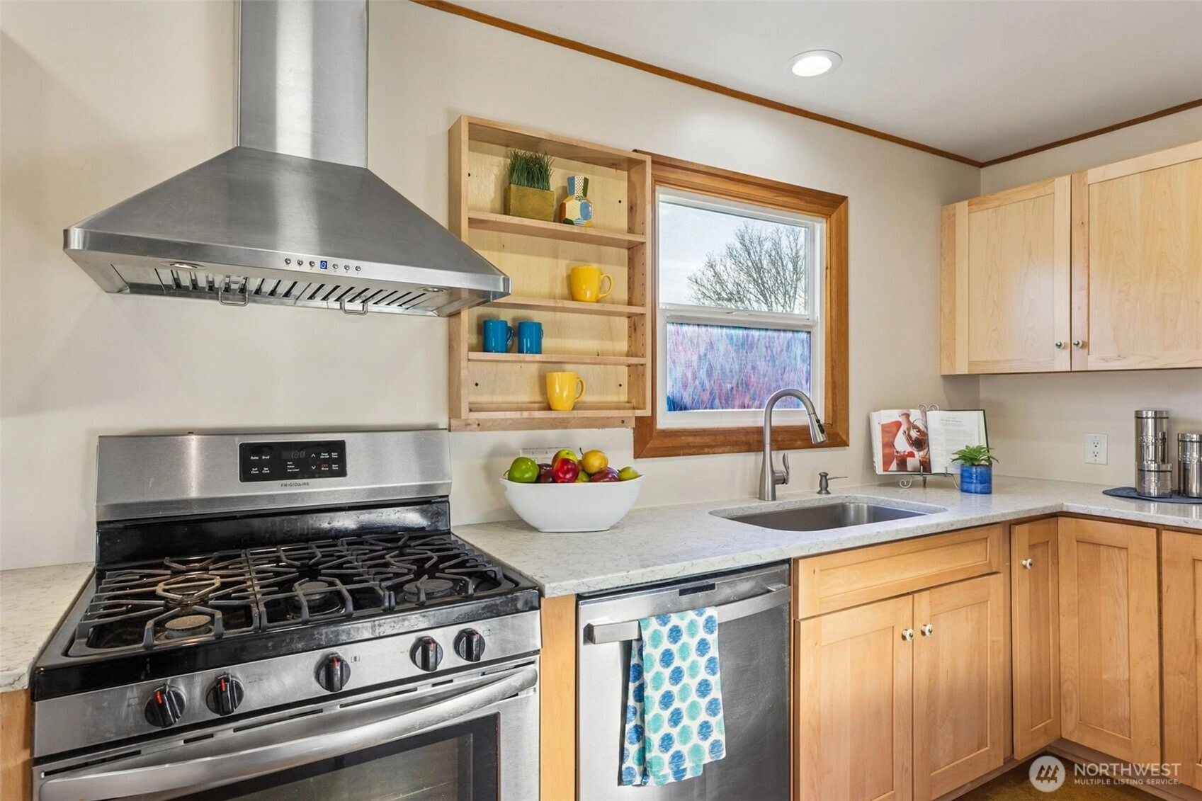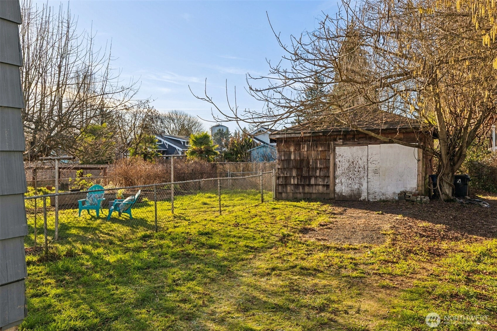 Discover comfortable updated living, charming vintage style and an enormous finished lower living space plus basement workshop, just a block to Lions Park, shops, eateries, grocery and buses for an affordable, and sustainable Oly Eastside urban lifestyle. Create garden-to-table meals in the fantastic remodeled kitchen space while growing your own grub in the raised beds on the fenced, large, light-filled yard with spacious outbuilding and alley access. Kitchen updates include a stainless appliance package, overhead chef-style range vent and loads of cabinet space plus a cozy window bistro nook to watch the world go by. The huge, lower rec-room and large basement/utility space with tons of storage, is a surprise addition to the easy flow upper 2bdrm/1 bath plan to total 1555 finished sq/ft of multiple use options plus unfinished space. Imagine game night, band practice, yoga, or extra guest/room-mate space on the lower level or relish cozy moments in the bay window living room with wood stove, laminate wood-style floors and sweet built-in shelving. New roof in 2020 and improved vinyl windows and large, remodeled bath. Spend mornings off in the cheery sun porch entry/sitting area with warm designer colors and chase the grey away! Off street parking and easy access to downtown fun, hospitals, or I-5 and north to JBLM or Work from home. Or ditch the car, stroll to easy local eateries, services and grocery or grab the corner bus, save dollars and live well, simply but spaciously.