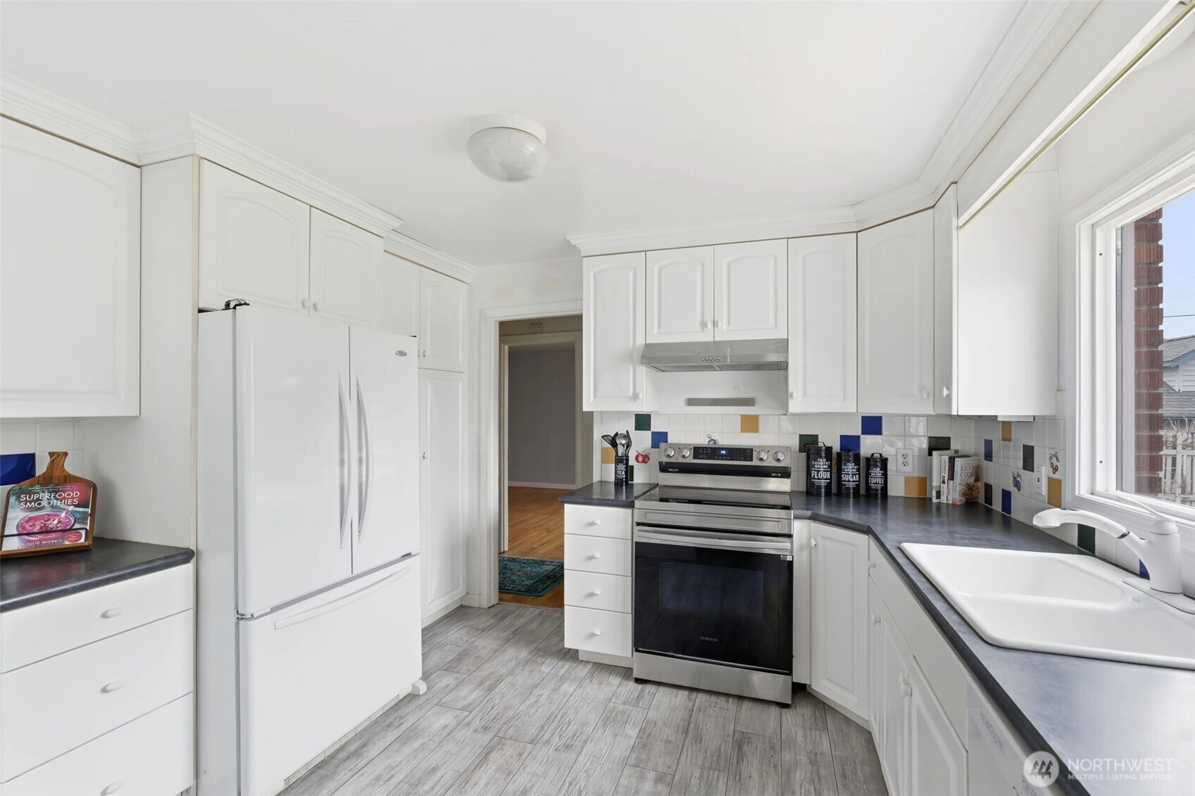 Charming mid-century brick home with 3 bedrooms and 2 baths, offering 2,652 sq ft of living space just a short walk to Centralia College and close to all major amenities. Enjoy spacious rooms with hardwood floors, a cozy wood-burning fireplace in the living room, and a kitchen with eating area. Features include an office, bonus room, covered ceilings, and elegant arched doorways. Step outside to a deck, fenced yard, and raised garden beds, plus a detached one-bay garage/workshop. The basement offers a partially finished room with a 3/4 bath and plenty of potential to create even more living space. A perfect blend of character, charm, and opportunity!