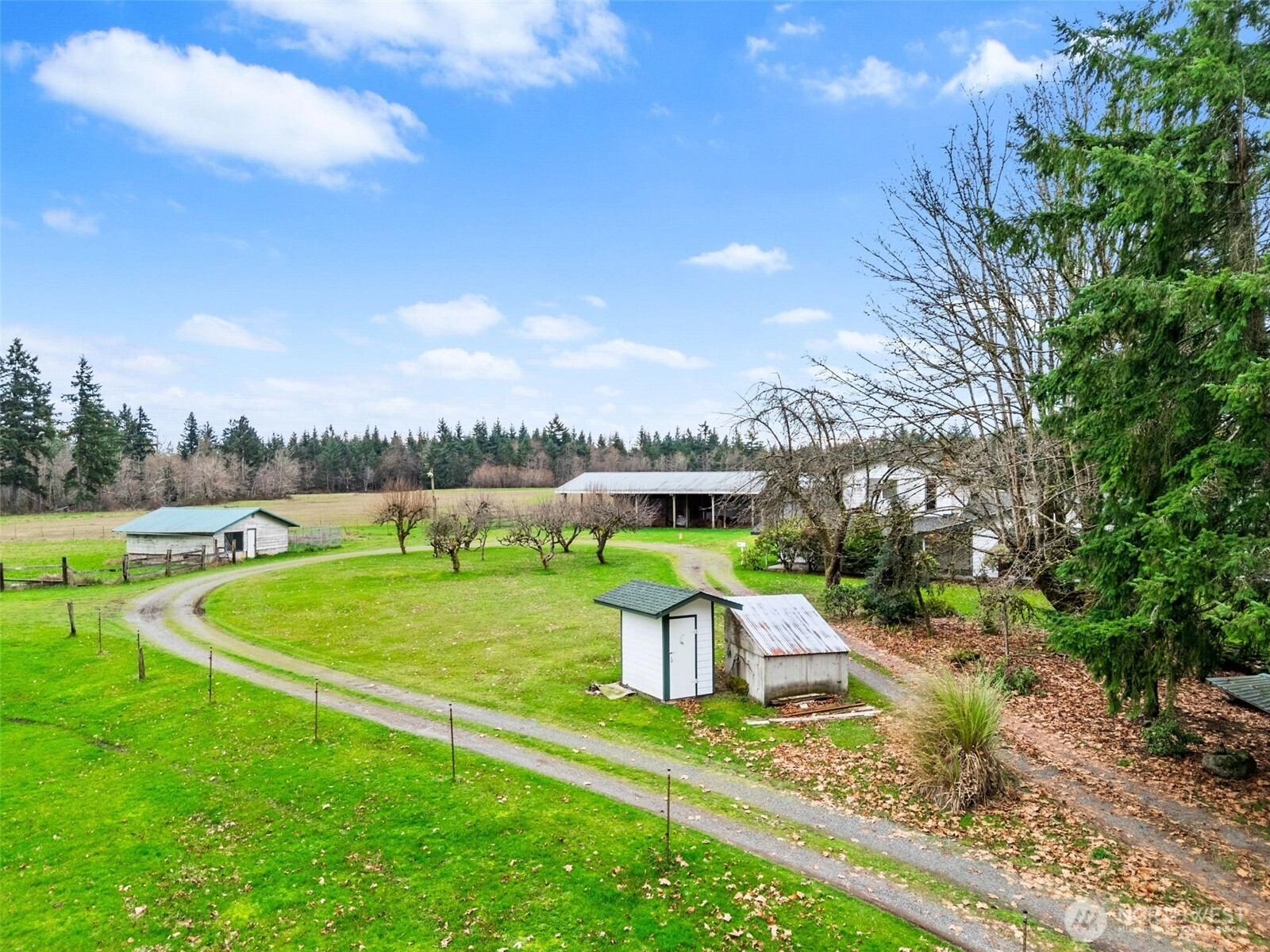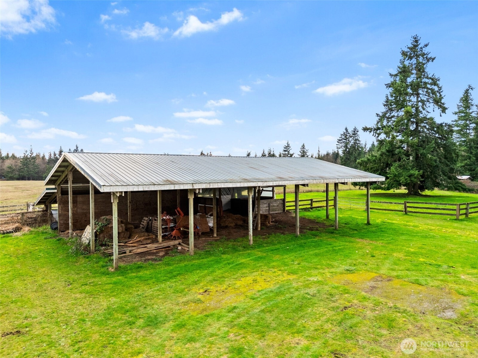 Country Living Close to Town! This is a rare opportunity to own almost 40 affordable acres, 20 minutes from Olympia! This expansive property offers tons of space, functionality, and potential multi-gen living, all with easy access to I-5, minutes from Tenino and close to Olympia. The Main Residence: Set well back from the road, the generously proportioned home offers comfortable living with beautiful rural views and great privacy. Generous bedrooms, multiple bathrooms and tons of storage support flexible living possibilities. Barn, Outbuildings & Workspaces: Multiple outbuildings and a great barn provide covered workspace, equipment storage, and flexible options for horses, livestock, project zones, expanded hobby farm operations or business ventures, or potentially other living spaces. (Verify proposed uses with Thurston County.) Barn with 6 stalls, huge pole barn, garden shed, metal shop building with partially finished space, and additional workshop space offer nearly endless options! Apartment Above Garage: Unlock additional value with the finished space above the garage. This space offers a private living area ideal for rental income, extended living, guest quarters, or a home office. Includes a full bath and kitchenette, plus 2 large finished rooms and separate exterior entrance. Land: The 38 +/- acres are largely flat and usable, and have been used for cattle, horses and haying for many decades.