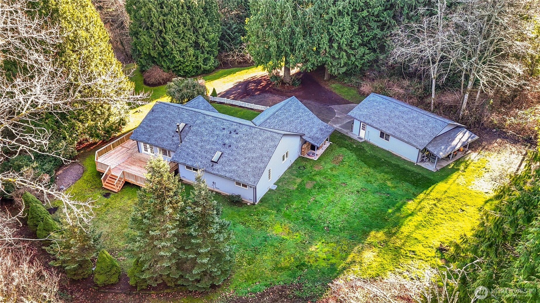 Tucked away down a private, meandering driveway, this beautifully maintained Arlington rambler offers the perfect balance of privacy & convenience with NO HOA. Just minutes from Smokey Point, this unique property feels like a true country retreat. Home features an 896 sq ft SHOP on 2.9 private acres just a short walk to Lake Ki! The home features 3 bedrooms, 2 bathrooms, plus a bonus room ideal for a 4th bedroom or home office. Inside, enjoy high ceilings and oversized windows that flood the home with natural light and frame peaceful views of the serene, easy-maintenance private yard. Home is truly move-in ready. Recent improvements include a NEW ROOF, fresh interior / exterior paint, NEW laminate flooring throughout, & a NEW entertainment-sized cedar deck overlooking the tranquil grounds—an absolute must-see. The crawl space & attic have been completely renovated, offering added peace of mind. Additional features include a 2-car garage, ample parking, and endless space for hobbies, toys, or future possibilities.