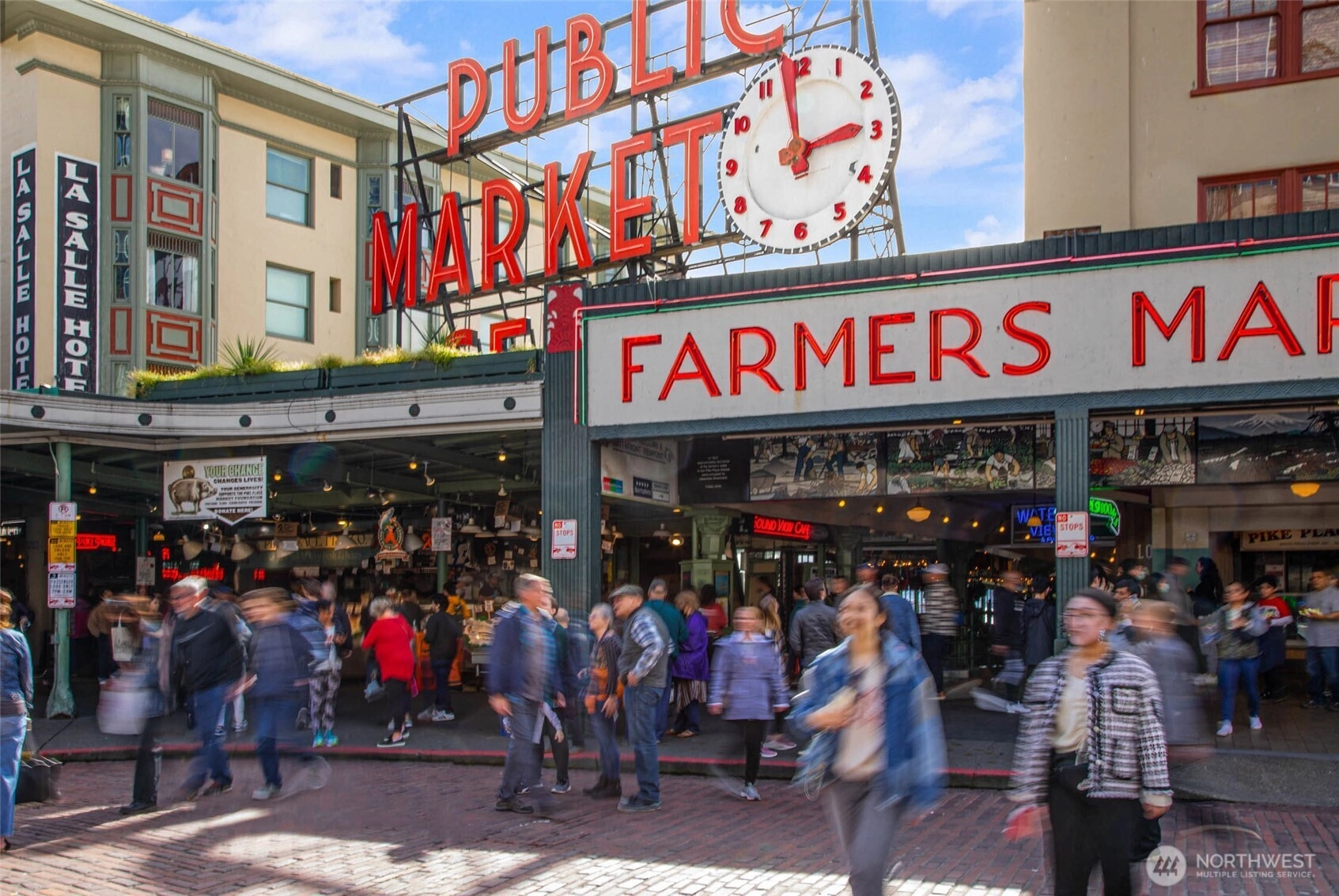 Tucked behind a secret Pike Alley entrance, this rare top-floor corner residence is a true in-city oasis—offering privacy, light, and iconic Seattle energy just outside your door. Set within one of Seattle’s most coveted buildings, tall airy ceilings, floor-to-ceiling picture windows, a skylight, and a rare wood-burning fireplace create a warm, elevated retreat, while French doors lead onto the private lanai, welcoming in the ocean breeze and capturing sweeping views of the Sound, glowing sunsets, and passing ferries. The spacious kitchen features abundant cabinetry and storage throughout, complemented by an in-unit washer and dryer and thoughtful extras like a garbage chute just down the hall. Enjoy deeded secure garage parking with a private EV charger, a secure storage unit, concierge entry, and exclusive access to a serene building patio with fountain and private Post Alley access. With Pike Place Market steps away, restaurants and pubs at the base of the building, walkable access to LINK light rail, and effortless strolls to parks, the waterfront, and all of downtown, this home delivers rare tranquility in the heart of it all. Building is FHA approved, and a lender credit is available for qualified buyers.