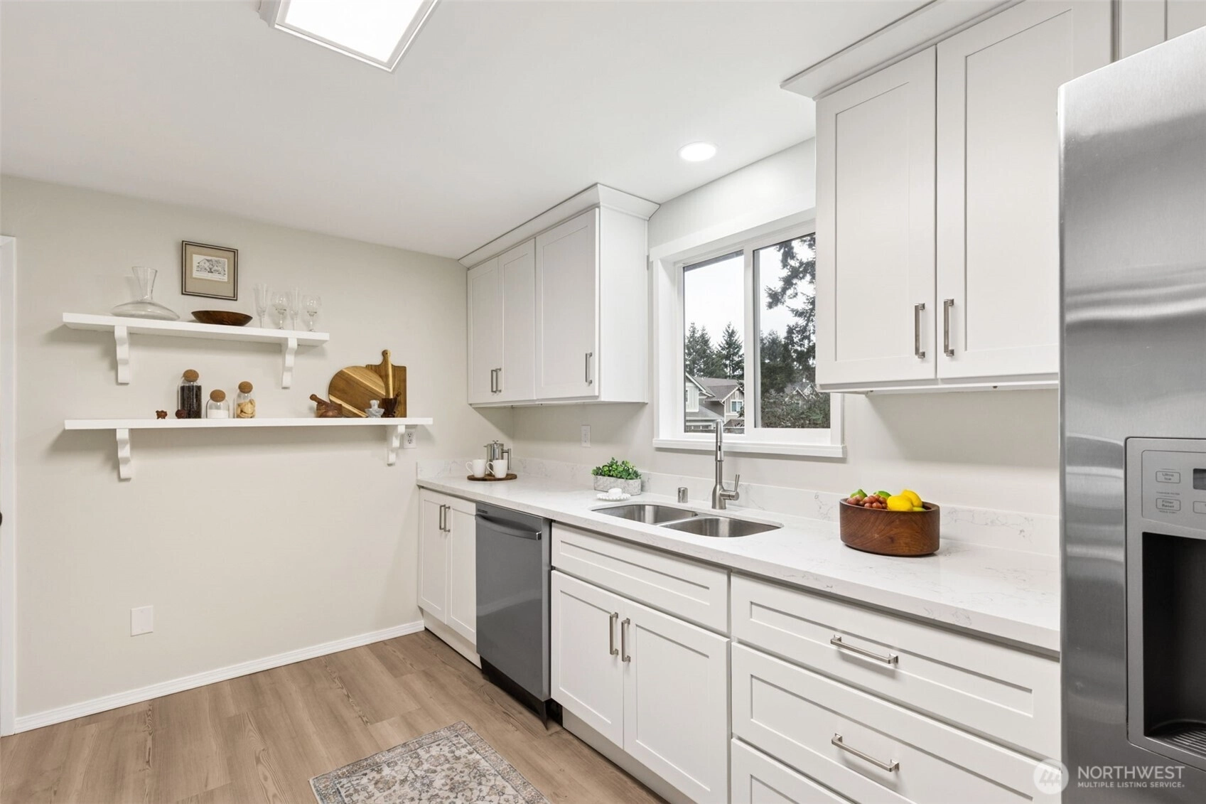 Come see this beautiful updated rambler offering 3 bedrooms, 1bath, spacious living room w/gas fireplace & light filled windows. Nicely updated kitchen featuring white cabinets, quartz countertops, stainless appliances & convenient dining area for easy conversation. Laundry area& one car garage. New paint & flooring throughout, Gas heat & doublepane windows make this home energy efficient. Covered rear deck for year round entertaining. Located in the desirable Manhattan neighborhood w/ Lot "A" beach rights at the Normandy Park Cove, including waitlist priority for the Normandy Park Swim Club membership. Convenient to Biking/walking trails, Angle Lake light rail, freeways, shopping & more.