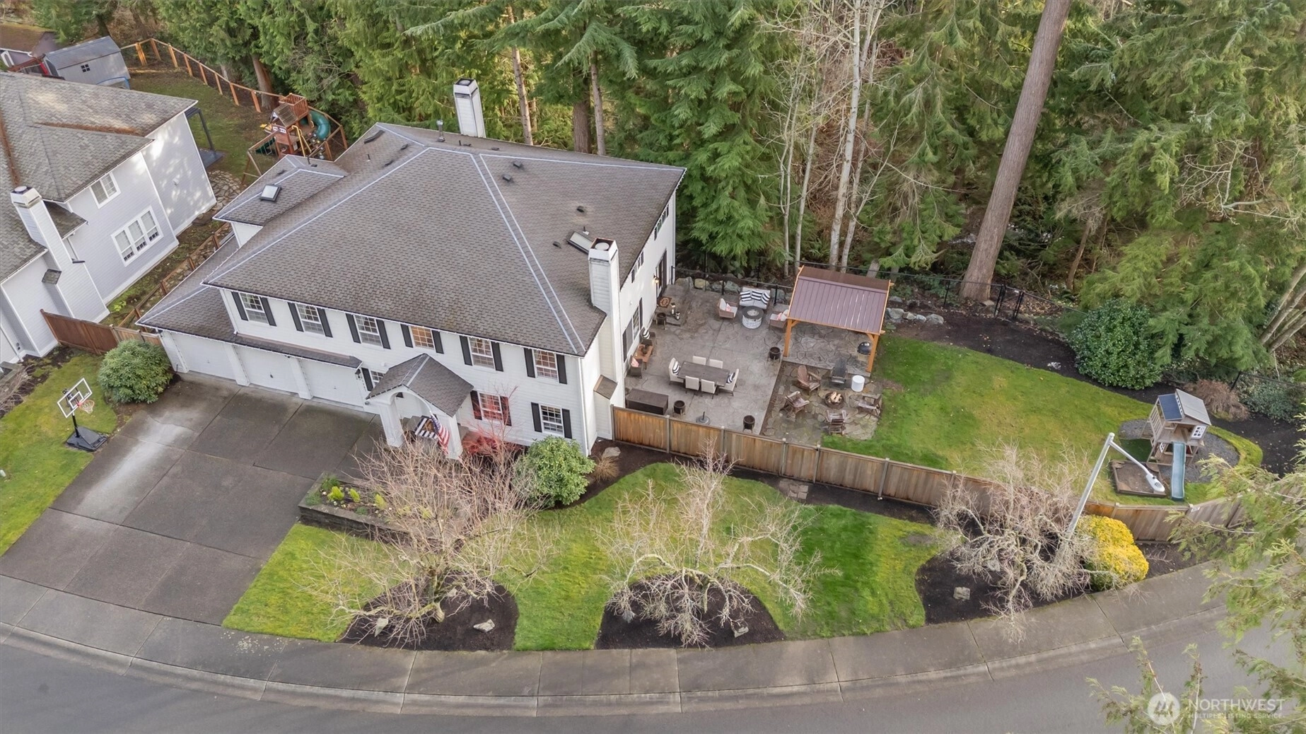 This stunning home showcases magnificent design elements, including a high-end chef's kitchen, formal dining and living rooms, and a spacious family room with an adjoining finished area. Positioned for privacy, it backs onto a serene greenbelt. The second floor features a large master suite complete with a sitting area and a luxurious 5-piece bath, along with three additional bedrooms and a utility room. Notable recent updates include a generator installed in 2022, ensuring the entire house remains powered during outages; a new furnace added in 2025; and air conditioning installed in 2020. Outside, enjoy the back patio adorned with stamped concrete and a gazebo, added in the summer of 2025, perfect for entertaining on this beautiful corner lot with a fully fenced yard. Additional highlights include a spacious 3-car garage, a private setting, and convenient access to award-winning schools, Boeing, freeways, Alderwood Mall, and more! Offer Review Date is Tuesday 1/27/26 by 12:00!!!
