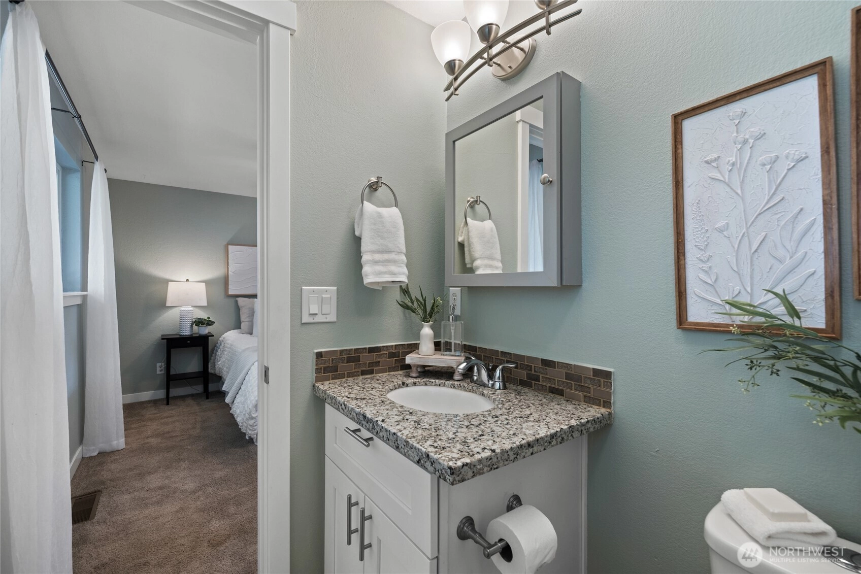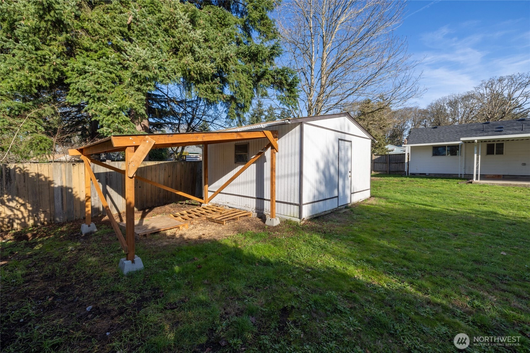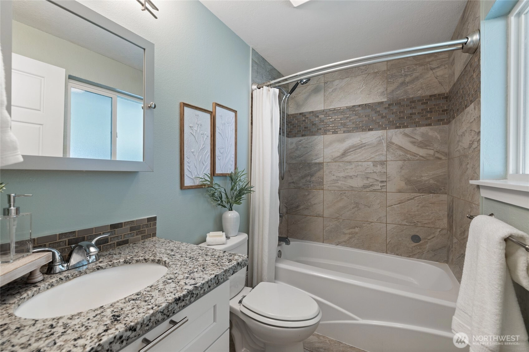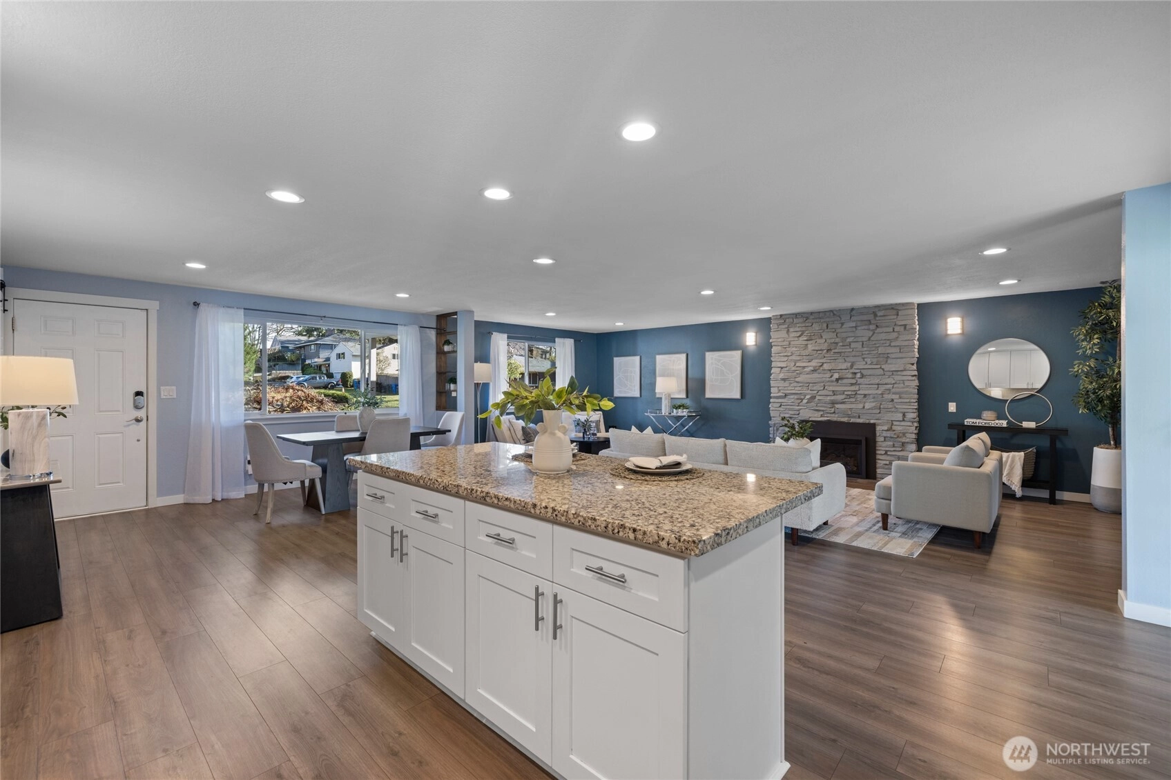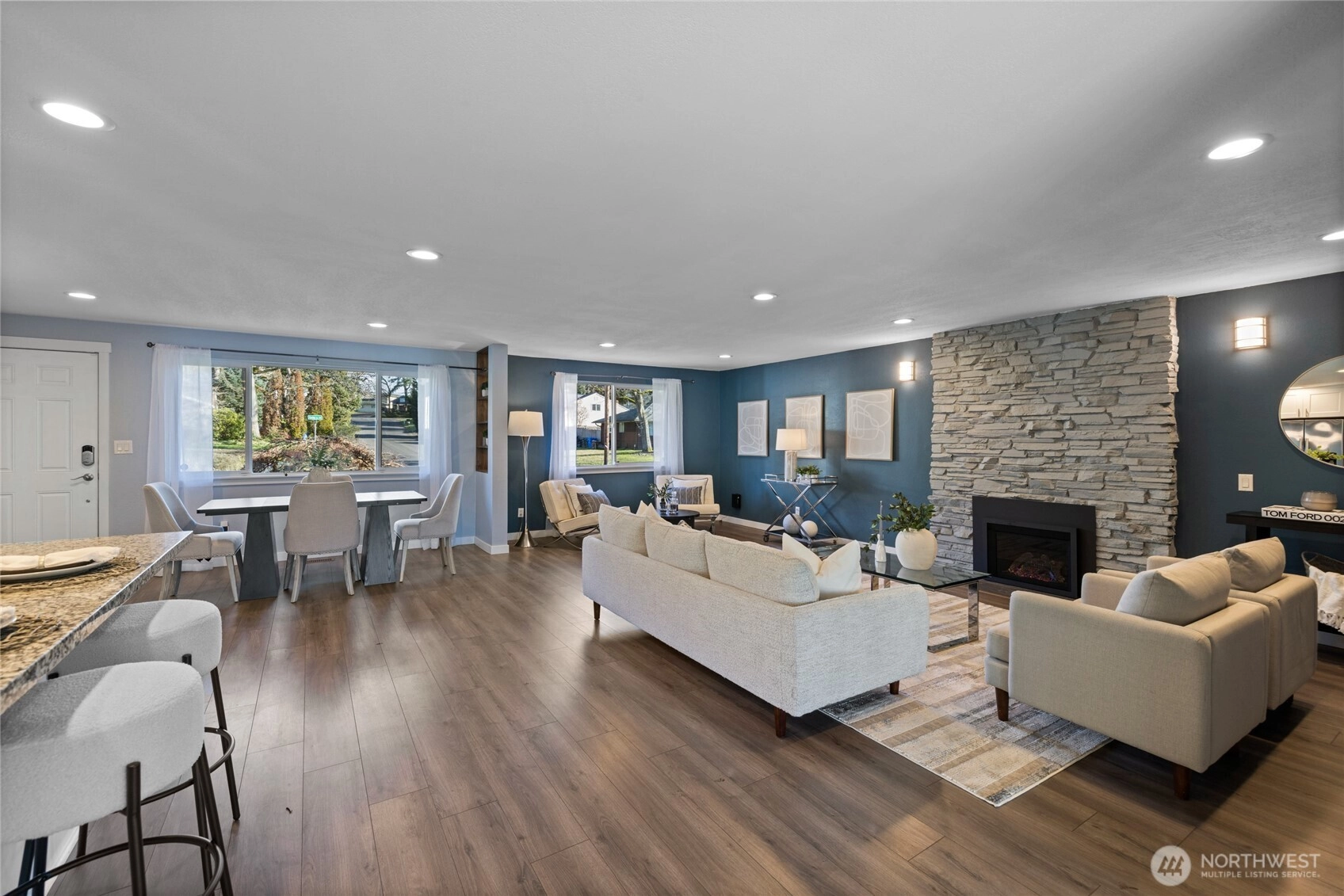 Welcome home to this beautiful one-level gem that truly has it all! Featuring 3 bedrooms and 2 bathrooms, this move-in ready home shines with thoughtful updates, including a brand-new roof (2025), newer furnace (2022), and a cozy gas fireplace installed in 2024. The spacious open-floor plan is warm and inviting, flowing seamlessly into the updated kitchen with stainless steel appliances, granite countertops, white solid-wood cabinetry, and a stunning tile backsplash, perfect for everyday living and entertaining alike. The primary suite has a private full bath, while the convenient ¾ hallway bathroom is for guests. A versatile bonus room offers the ideal space for a home office, hobby room, or creative projects. Step outside to enjoy the large, covered patio and fully fenced yard, complete with a generous storage shed. Covered parking for two vehicles plus a large driveway provides ample off-street parking. This charming, well-maintained home is a must-see. Don’t miss your opportunity to make it yours!