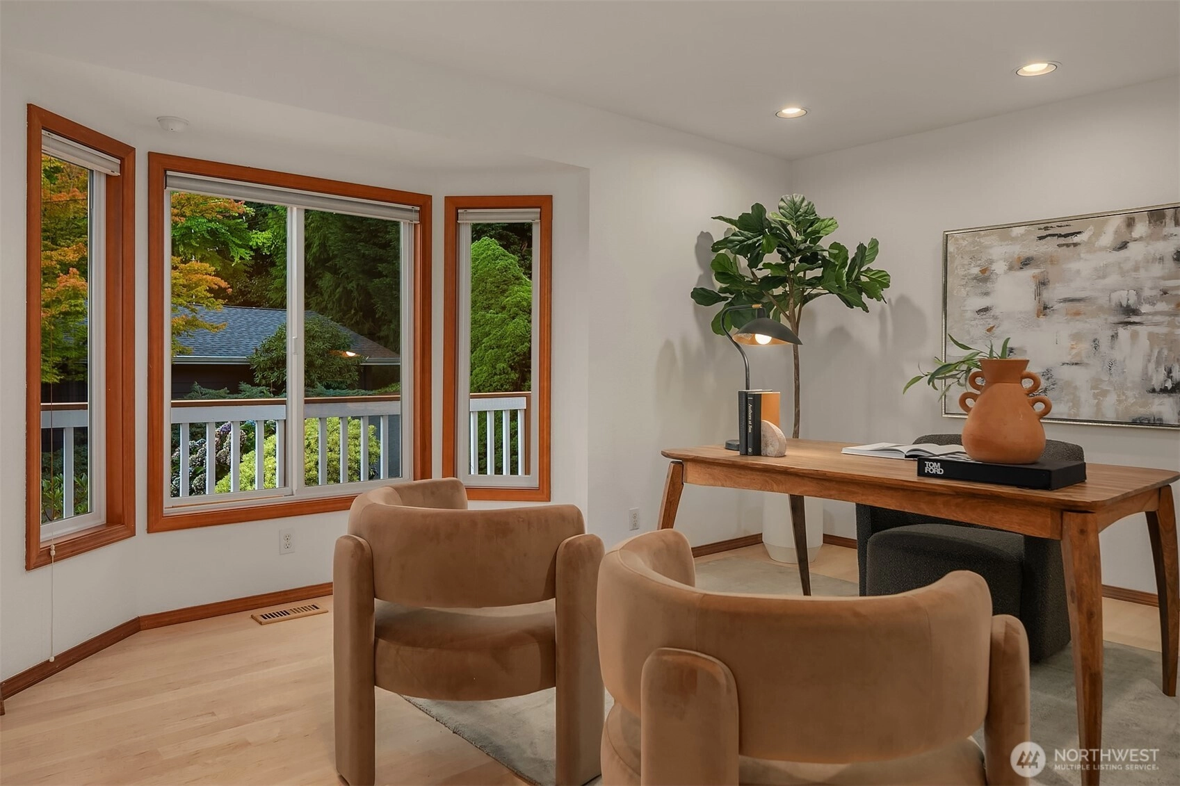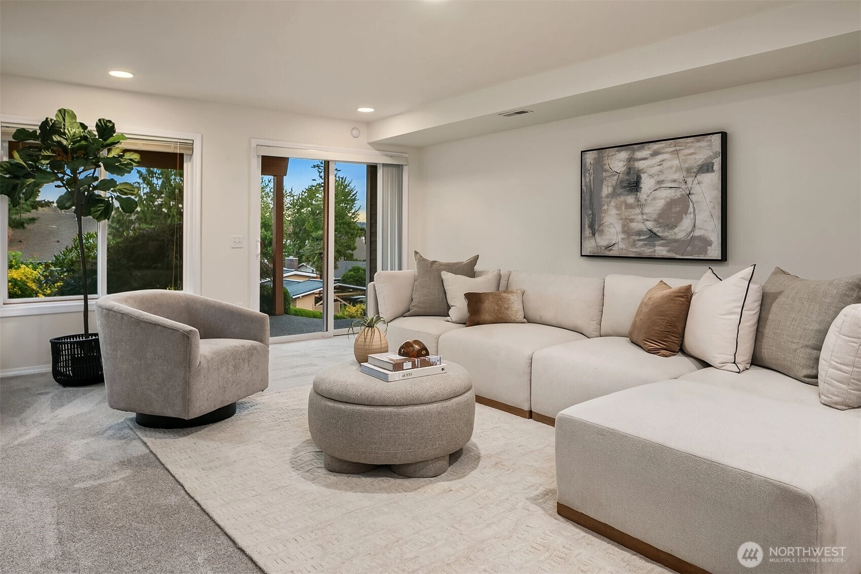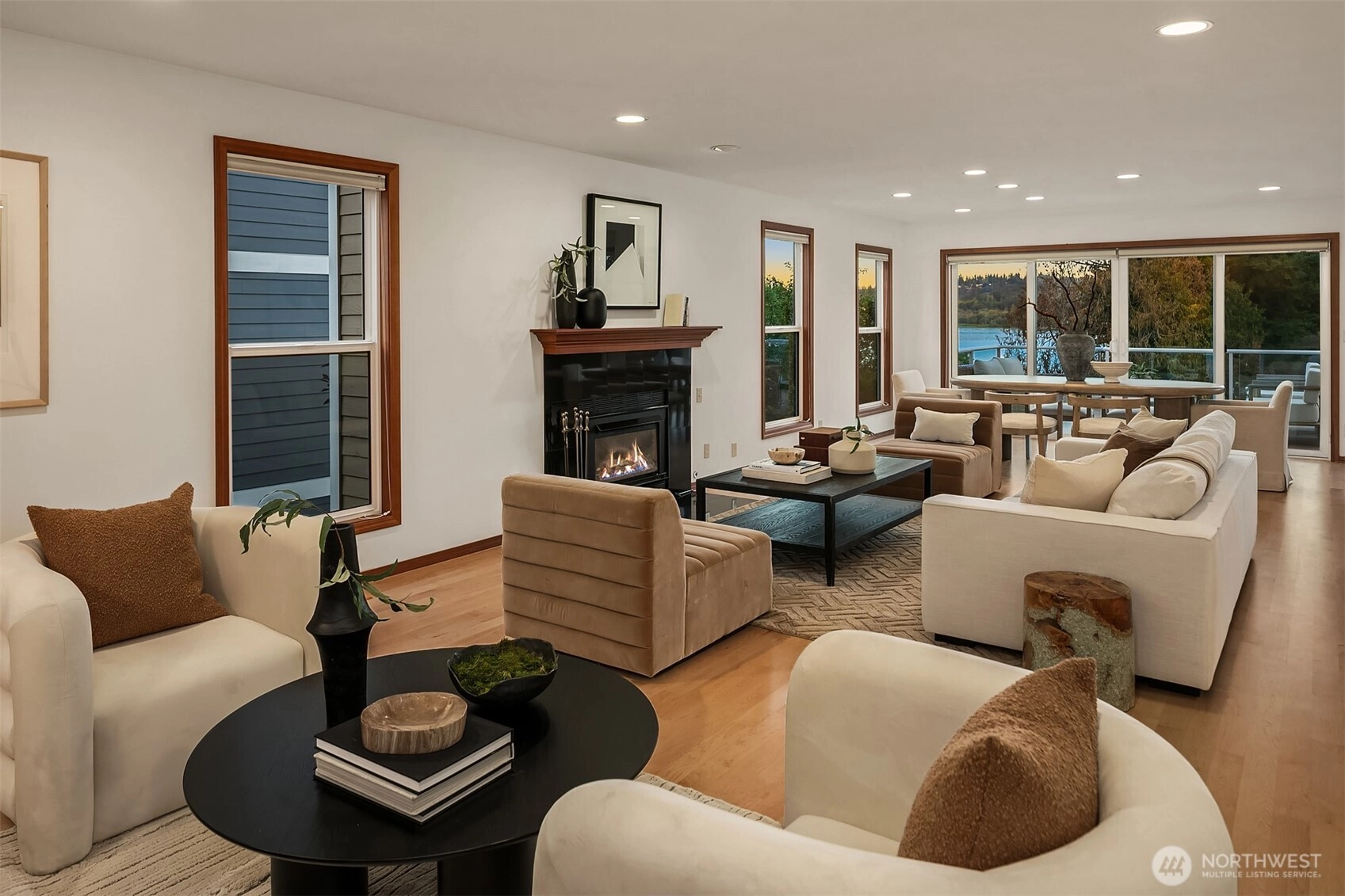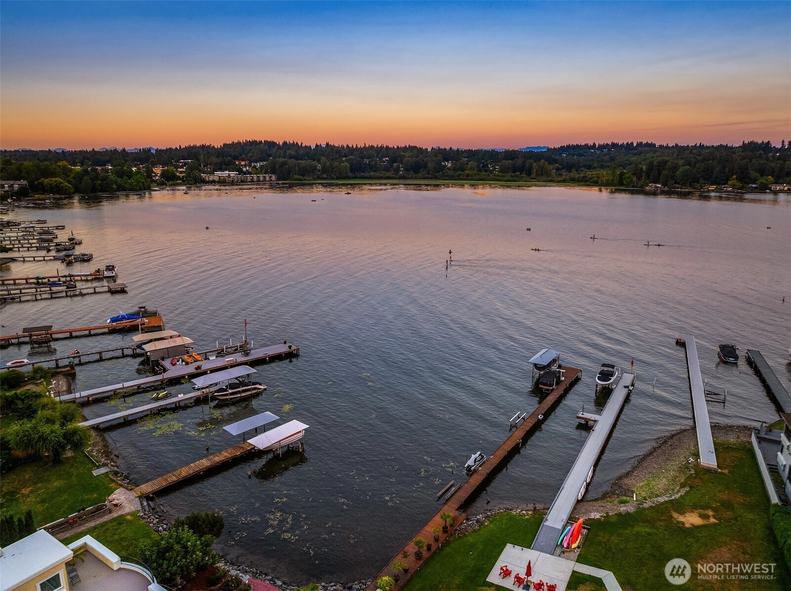 Experience the best of Kirkland living from this recently remodeled 3,740sf home on a private lane in the sought-after Juanita community. Enjoy astounding panoramic Lake WA & Mt Rainier views from all three levels, including shared dock access with convenient boat lift enjoyed at a moments notice. Guests are welcomed into the main level featuring a large kitchen w custom Cherry cabinets and stainless steel appliances, dining room w view deck, office, & spacious great room w gas fireplace. Upstairs you’ll discover 3 beds including an impressive primary suite w two walk-in closets, gas fireplace, & 5-piece spa bath w jetted tub. Large lower level bedroom w access to covered patio & 3/4 bath. 2-car garage, built-in vac, maple floors, & more