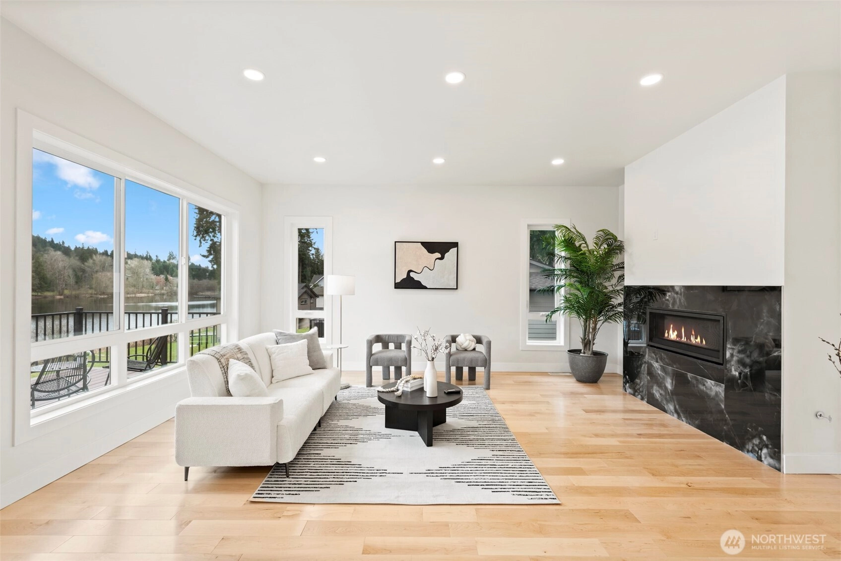 Discover an amazing new construction house with beautiful lake view at the Lake Boren. Enjoy excellent Lake view from the spacious living room, kitchen, master bedroom and guest bedroom. Completed in 2025 and designed for open-concept living, this 5 bedroom and 3.5 bath house is flooded with natural light, featuring high ceilings, central AC, super quality hardwood floor, a gourmet kitchen, premium appliances, an inviting living area with a cozy fireplace and two car garage plus additional two outdoor parking space. Unbeatable location: at the heart of the City of Newcastle, awarded Issaquah school district, short walking distance to the Lake Boren Park, shopping centers, restaurants, banks &library. Easy access to I-405 &I-90. Don’t miss this incredible opportunity.