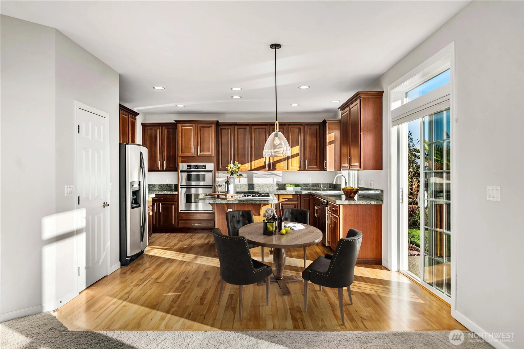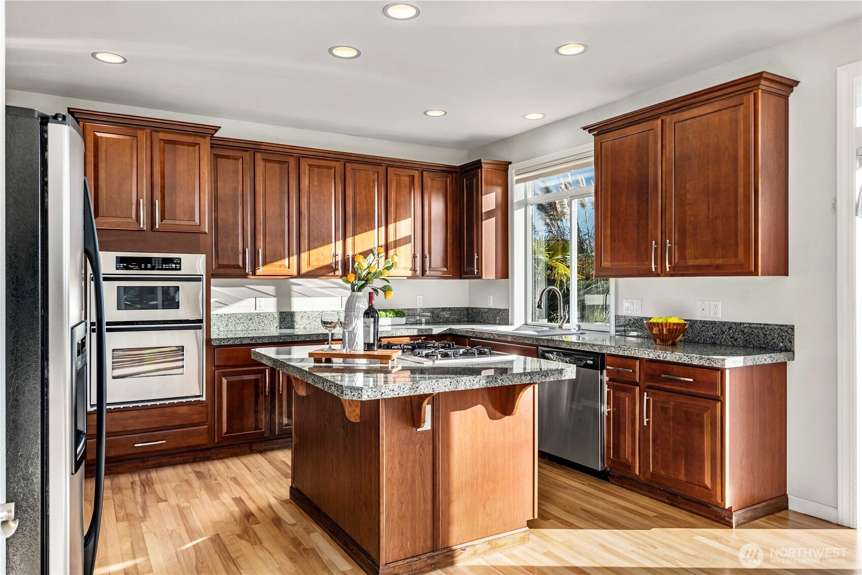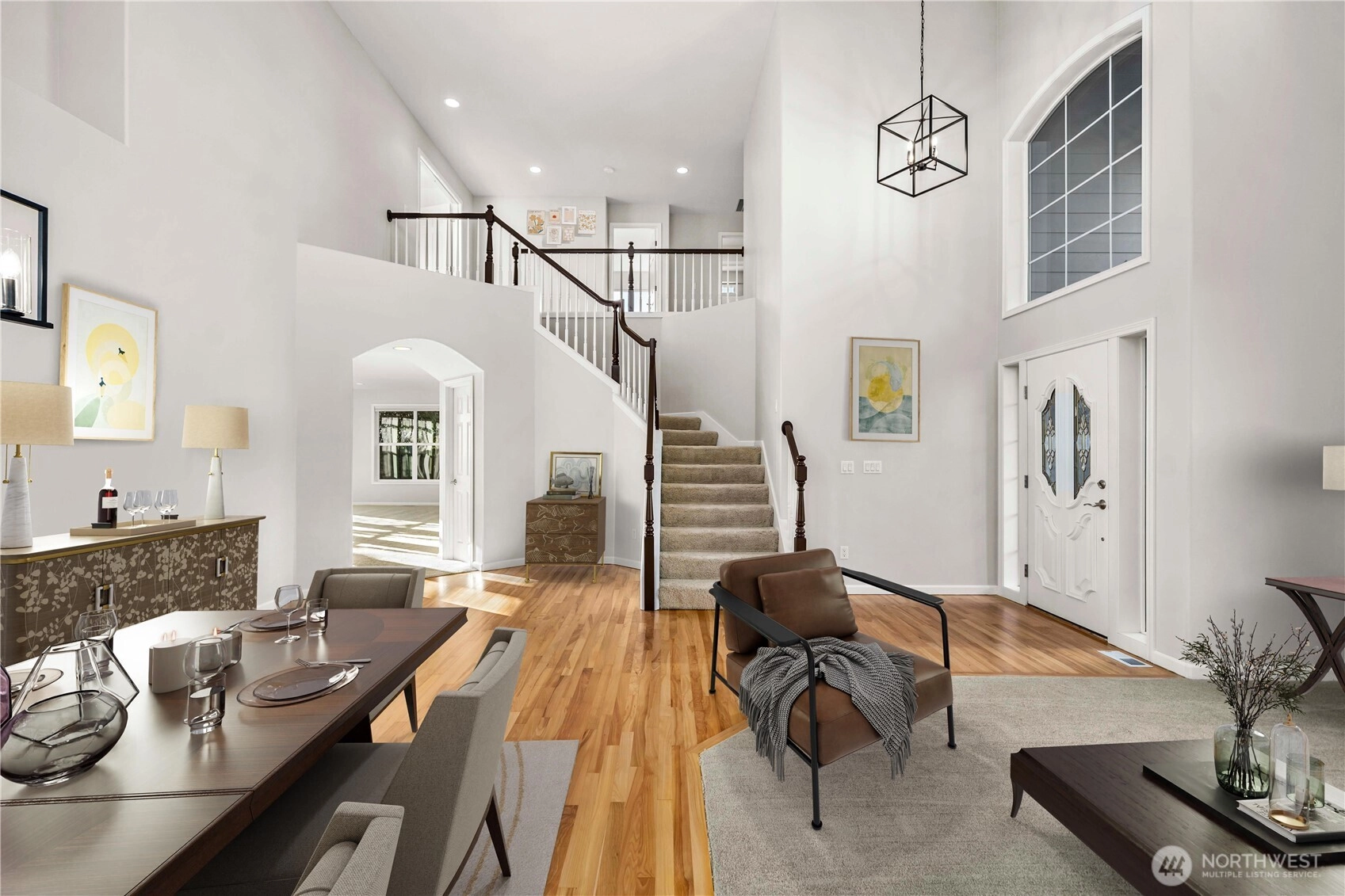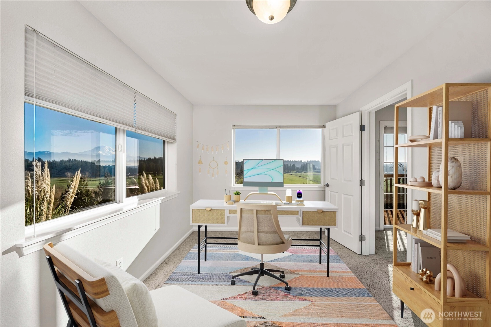Mount Rainier views greet you at this remarkable 4-bedroom, 3-bath Craftsman-style home in Bonney Lake on over ½ acre, just mins from Lake Tapps. Two-story living & dining spaces w/ soaring ceilings & large windows create an inviting first impression. Fresh interior paint & newly refinished hardwood floors flow through the main living areas. The heart of the home opens to a light-filled family room & kitchen w/ granite counters & gas cooking—ideal for daily living & entertaining. Upstairs, the primary suite offers a private deck, office or sitting area, 5-pc bath & WIC. 3 add’l BRs & full bath provide flexible space. Outdoor living features mature landscaping, sprinkler system & lovely fountain. One-owner home. No HOA.
