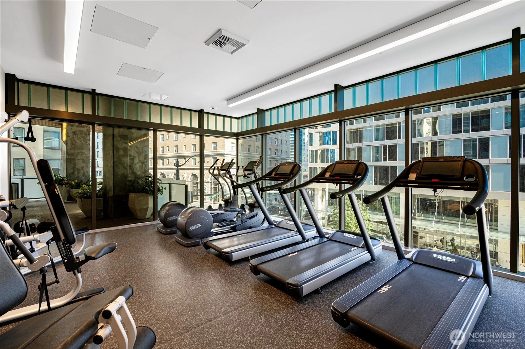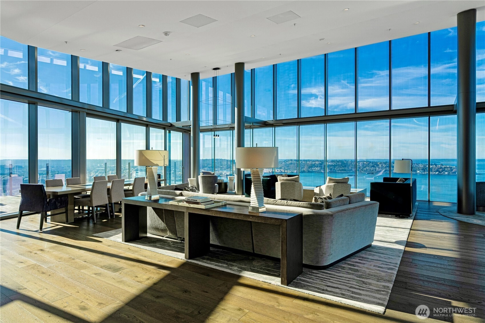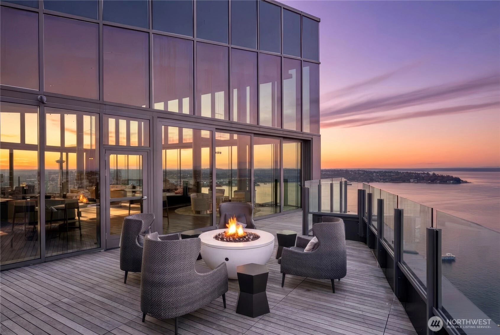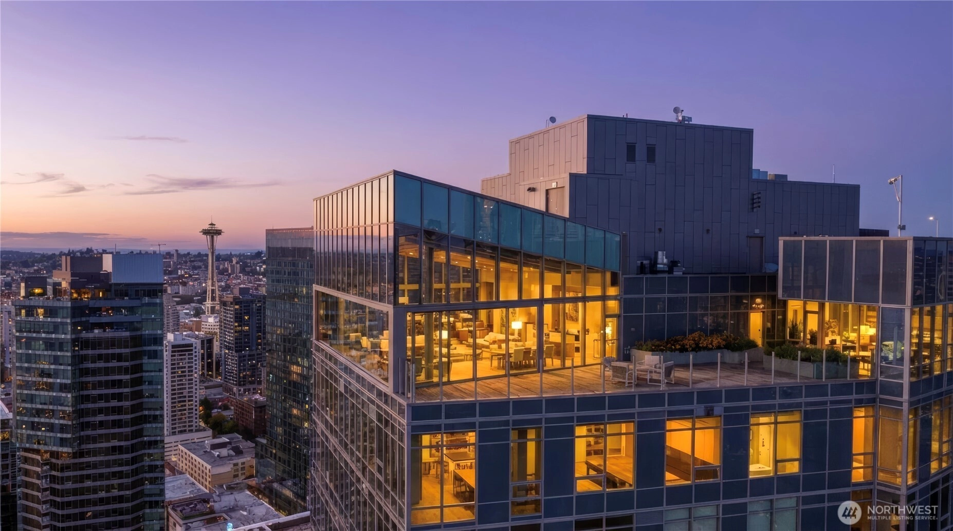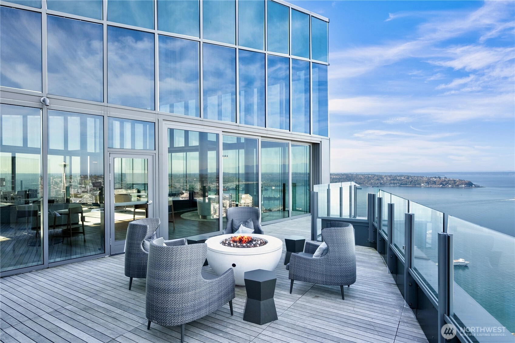 Spacious south-facing 1BD + den featuring high ceilings and floor-to-ceiling windows flooded with natural light, overlooking Pike Place Market, Elliott Bay, the city skyline & Mount Rainier. Thoughtful design includes custom kitchen cabinetry, gas cooktop, hardwood floors, full-size washer/dryer, built-in closet system, motorized shades & Latch keyless entry.First-class amenities: 24/7 concierge, fitness center, yoga studio, pet run & spa, guest suite, and full-floor rooftop with indoor lounge and outdoor spaces featuring city, water & mountain views. Steps to Pike Place and the waterfront—true premier downtown living.