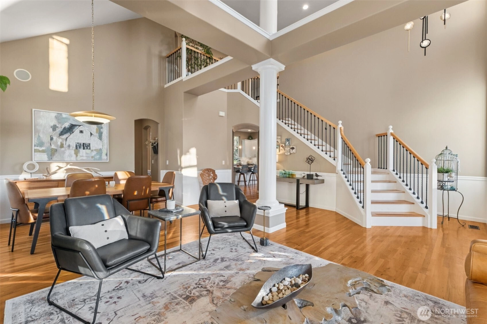 So rare to find a highly elegant, newer home in the sought-after south Issaquah neighborhood of Mirrormont! The main level is a true showpiece, w/stunning architectural details in the living room including white gorgeous columns, high ceilings & large windows flooding the space w/light + amazing, curved staircase leading to upper floor. Kitchen has been thoughtfully remodeled w/white cabinetry, granite & quartz counters, accented by white stone & new lighting. Large island seats 4+. With ample room for multiple cooks, the kitchen is the heart of the home, open to daily hanging-out room w/gas fireplace providing cozy evenings & French doors to balcony w/sunset views. Spacious bonus room-expanded to accommodate a pool table—features wet bar & endless flexibility for entertaining, hobbies or media use. Upstairs, the luxurious owner’s suite is a retreat of its own -French doors lead to private balcony, shared gas fireplace w/adjacent bath includes soaking tub, large tiled shower, dual-sink white vanity, water closet & generous walk-in closet. A huge rear patio offers multiple gathering areas + covered space for year-round use. Extensive landscaping- mature terraces, outdoor lighting, natural stone stairs to an upper flat lawn w/firepit—perfect for enjoying sunset views & glass of wine! Huge 3-car garage wired for generator + fits a boat! All this in a quiet cul-de-sac, Issaquah Sch Dist + Mirrormont community w/year-round social events & optional pool, tennis & country club.