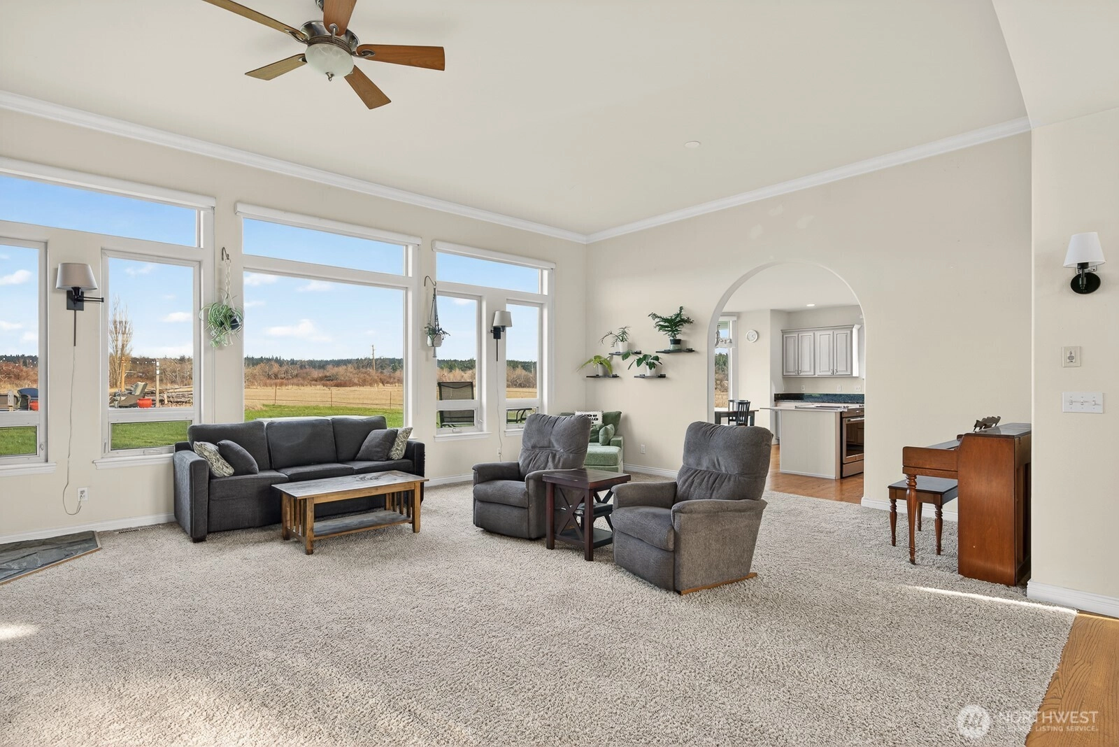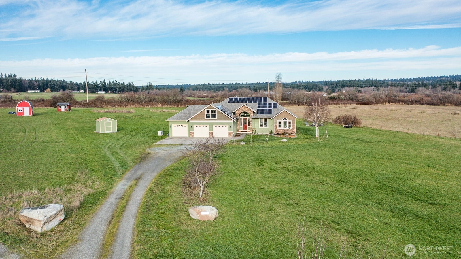 Set on 4.92 acres of open, lush greenery, this property offers the serenity of country living just minutes from the city. Step through the grand entryway to be greeted by soaring ceilings and wall to wall windows that fill the home with natural light. The oversized living room flows seamlessly into the stunning kitchen, featuring expansive granite countertops, stainless steel appliances, and a generous center island. An adjacent informal dining area is beautifully framed by bay windows. The spacious primary suite includes a relaxing jetted tub and a large walk-in closet. Above the garage, a finished bonus room provides the perfect space for a home office, studio, or hobbies. Outside, two separate patios invite you to relax and enjoy your private retreat. Additional upgrades include a wired natural gas generator, a heat pump, in addition to a natural gas furnace, for year-round comfort, and solar panels that keep electric costs nearly zero. A rare opportunity to enjoy space, privacy, and convenience in one exceptional property.