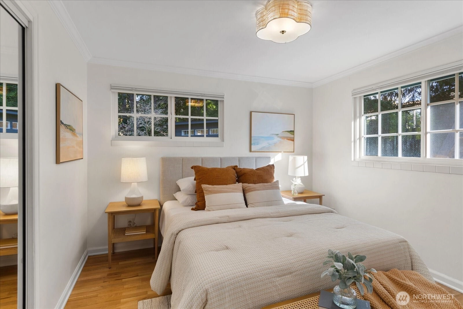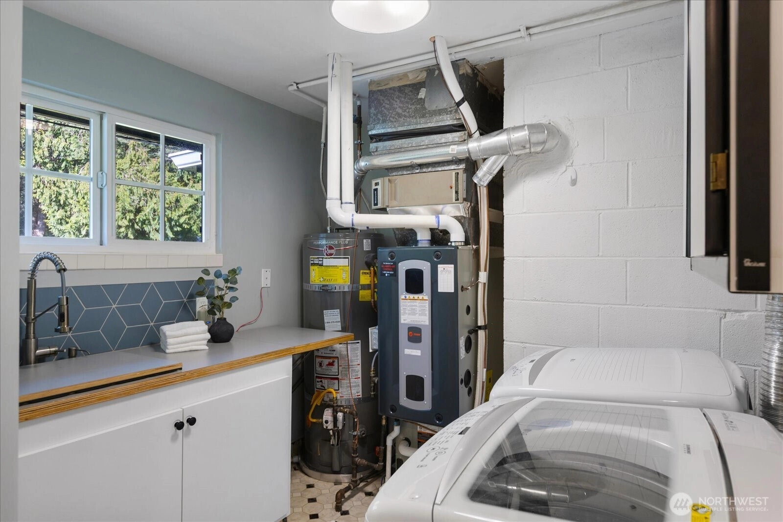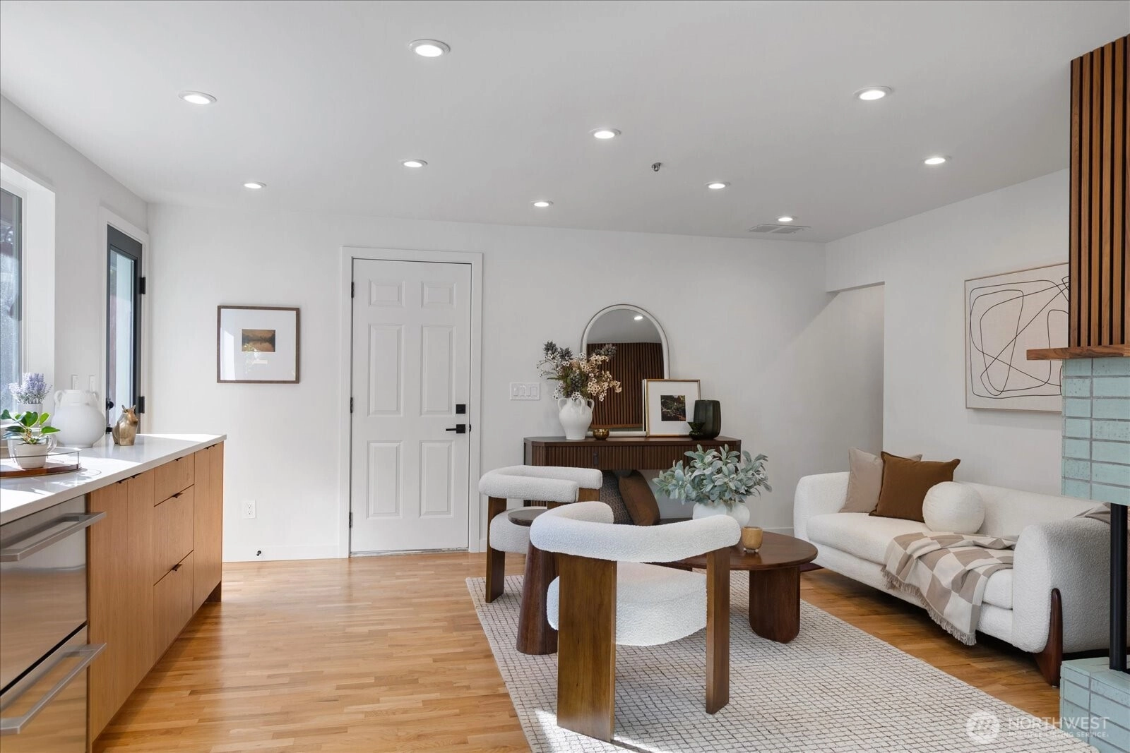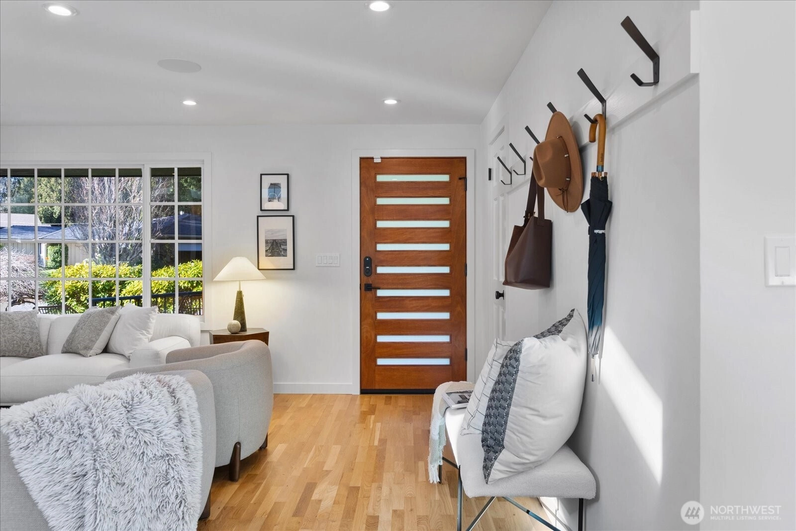 Nestled in Woodway’s coveted Twin Maples neighborhood, this exquisitely remodeled home elevates one-level living with timeless design and refined craftsmanship throughout. High-end upgrades and curated designer finishes create a home that feels both luxurious and inviting. Expansive windows and skylights fill the interiors with natural light, highlighting a showstopping open-concept kitchen with a statement island, PNW-crafted custom walnut cabinetry, and premium, top-tier appliances. Two living spaces offer both gas and wood-burning fireplaces, beautifully framed by handcrafted tile, acoustic walnut paneling, and a custom surround sound system—perfect for elevated entertaining or peaceful evenings at home. Outdoors, discover a private garden retreat complete with a tranquil water feature and a fully insulated, climate-controlled studio ideal for a home office, wellness space, or creative escape. Major systems have been thoughtfully updated for peace of mind, including roof, electrical, paint, septic system, and heat pump/furnace. EV charger ready, 2 car garage, plus ample off-street parking.
