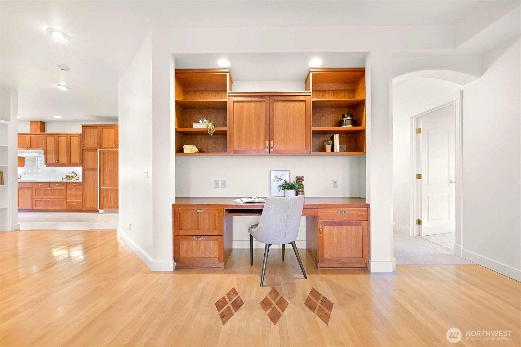 Step into enduring sophistication at this single-level gem in Bellingham's coveted Edgemoor neighborhood. With framed Bay views and masterful craftsmanship, this home truly stands apart. Inside you’ll discover three spacious bedrooms, two baths and a seamless fusion of style and comfort. Vertical cedar siding, soaring 9-foot and vaulted ceilings and custom windows flood the home with natural light, enhanced by remote-controlled skylights. The attention to detail is remarkable: solid wood doors and trim, locally crafted custom cherry cabinetry, and maple floors with inlaid cherry accents bring warmth and character. The formal living and dining rooms radiate elegance while the inviting family room boasts a gas fireplace, wet bar and built-in desk. The galley kitchen paired with a sunny breakfast nook invites culinary creativity and the adjacent laundry room adds practicality. The primary suite is a private retreat featuring patio access, a spa-inspired ensuite with a jetted tub and tiled shower and a custom walk-in closet. Nestled on nearly half an acre, the fully fenced yard includes a covered patio, abundant storage and a 2-car garage. Recent updates, including a newer furnace, hot water tank and fresh interior and exterior paint ensure peace of mind. Even more, the potential to add a second story provides room for future possibilities. Perfectly located near Fairhaven, parks, and the Bellingham Cruise Terminal. Experience elevated living paired with unparalleled convenience.