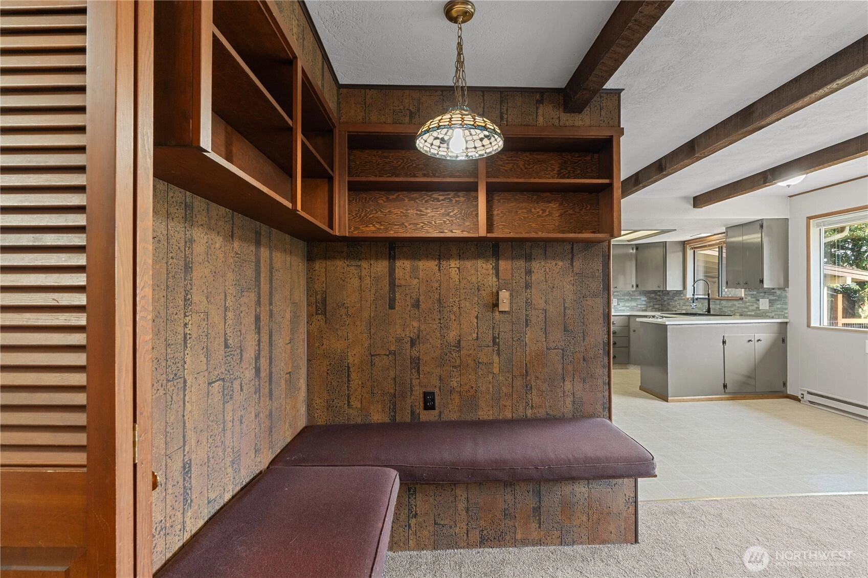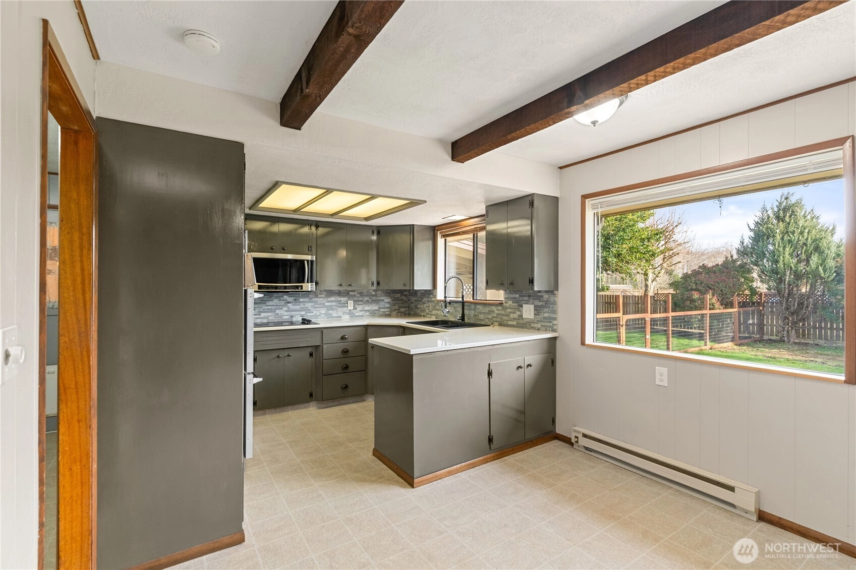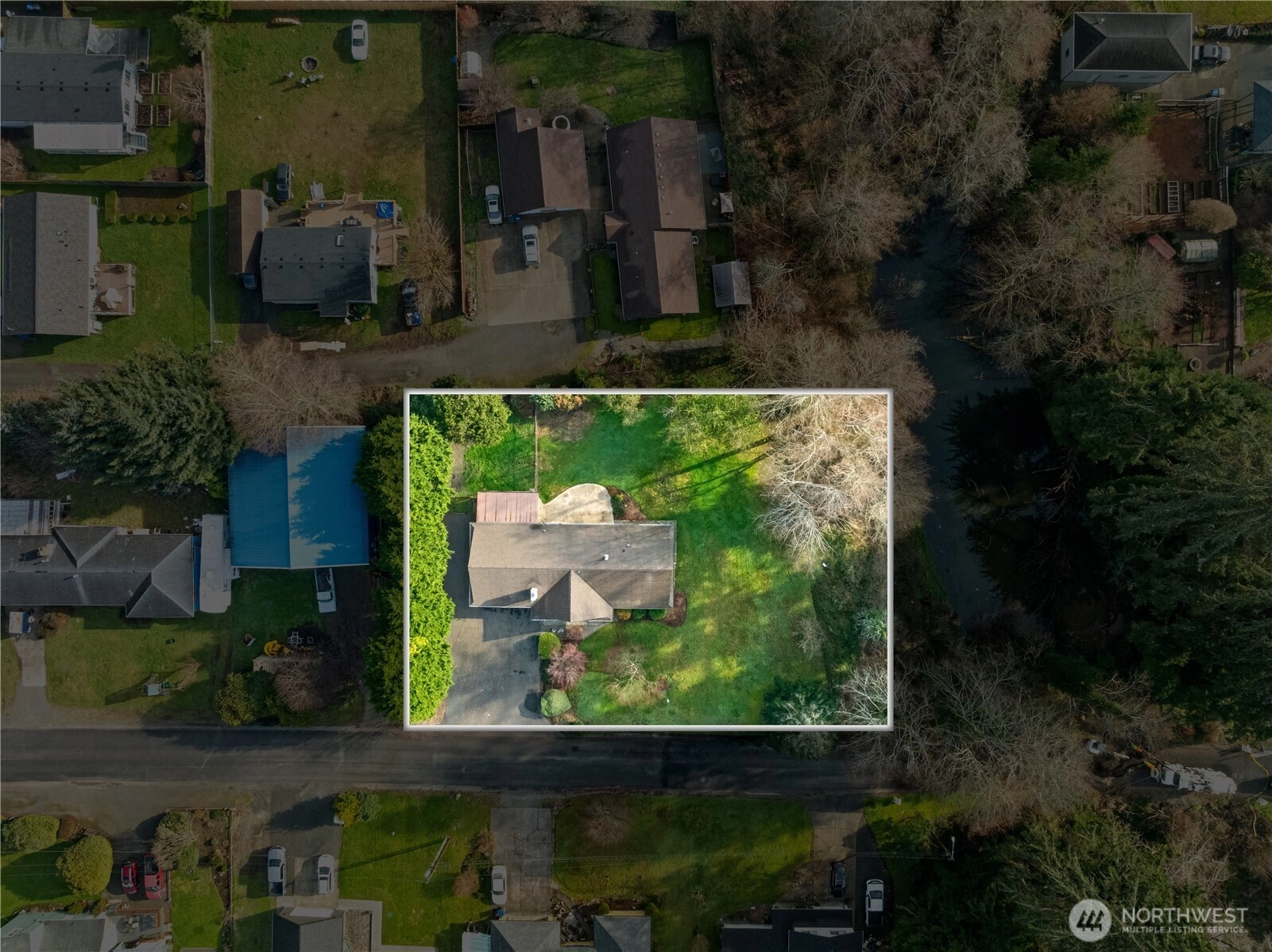 Updated three bedroom, one and a half bath single level rambler set on a beautifully landscaped double lot in a quiet Montesano neighborhood with creek frontage that provides a natural backdrop, calming sound, and abundant wildlife. The easy flow floor plan offers two distinct living spaces and large picture windows that bring in strong natural light while preserving privacy. Recent seller updates include fresh interior paint, major kitchen improvements, bathroom updates, new fencing, and new carpet throughout, creating a clean move in ready presentation. The kitchen offers generous counter space and abundant cabinetry. Year round comfort is supported by a ductless heat pump, a free standing gas stove, and an updated electrical panel. Outdoor living is thoughtfully designed with a fenced area in the backyard for pets, a wide access gate, a covered area, and a large concrete patio, with the expansive back and side yards overlooking the creek and surrounding natural setting. The two car garage includes extra storage and a finished bonus room above, where rumor has it band members of the Melvins and Nirvana once used the space for making music. A black topped driveway provides RV parking with electrical hookup. Conveniently located just minutes from downtown Montesano, nearby parks, and Lake Sylvia.