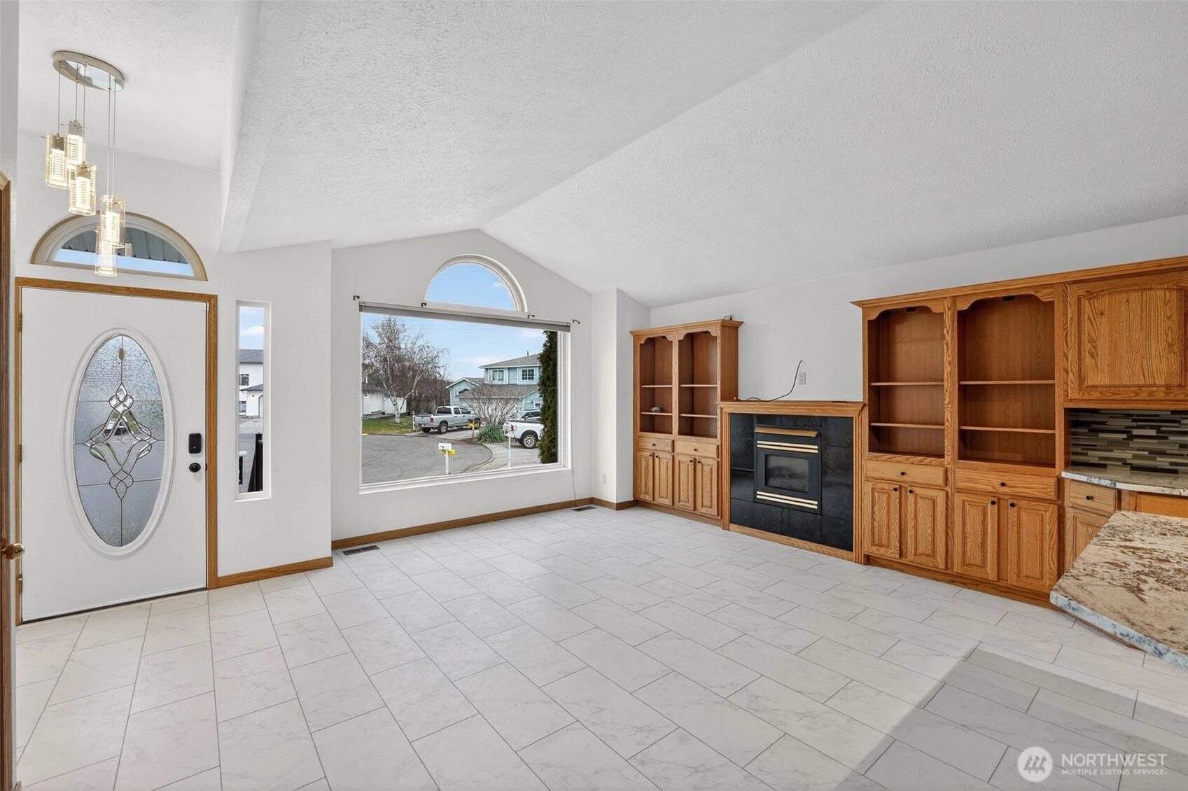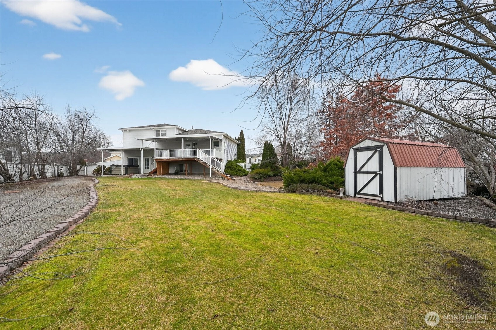 Spacious and versatile three-level home offering 5 bedrooms and an inviting layout designed for both comfort and functionality. The main level features an open-concept kitchen and living room with generous space to gather and entertain. The living room showcases an oversized window overlooking the front yard, a cozy fireplace, and custom built-in features that add character and charm. The kitchen is a true highlight with a large island, granite countertops, beautiful finishes, and abundant storage, plus direct access to the back deck for easy indoor-outdoor living. The lower level offers a comfortable dining room with wall-to-wall carpet and its own fireplace, creating a warm and welcoming space for meals and gatherings. Bedrooms are thoughtfully arranged, including one bedroom with hardwood floors, built-in features, and a ceiling fan—perfect for a home office. All remaining bedrooms feature plush wall-to-wall carpet. The primary suite provides a private retreat with an ensuite bathroom and walk-in closet. Outside, enjoy a large, fully fenced backyard with endless possibilities, with space for RV parking and RV hookup, complete with a covered patio, covered deck, spacious yard, a tool shed and a generously sized, 2 car garage, detached shop. This home offers exceptional space, multiple living areas, and a wonderful blend of indoor comfort and outdoor enjoyment.