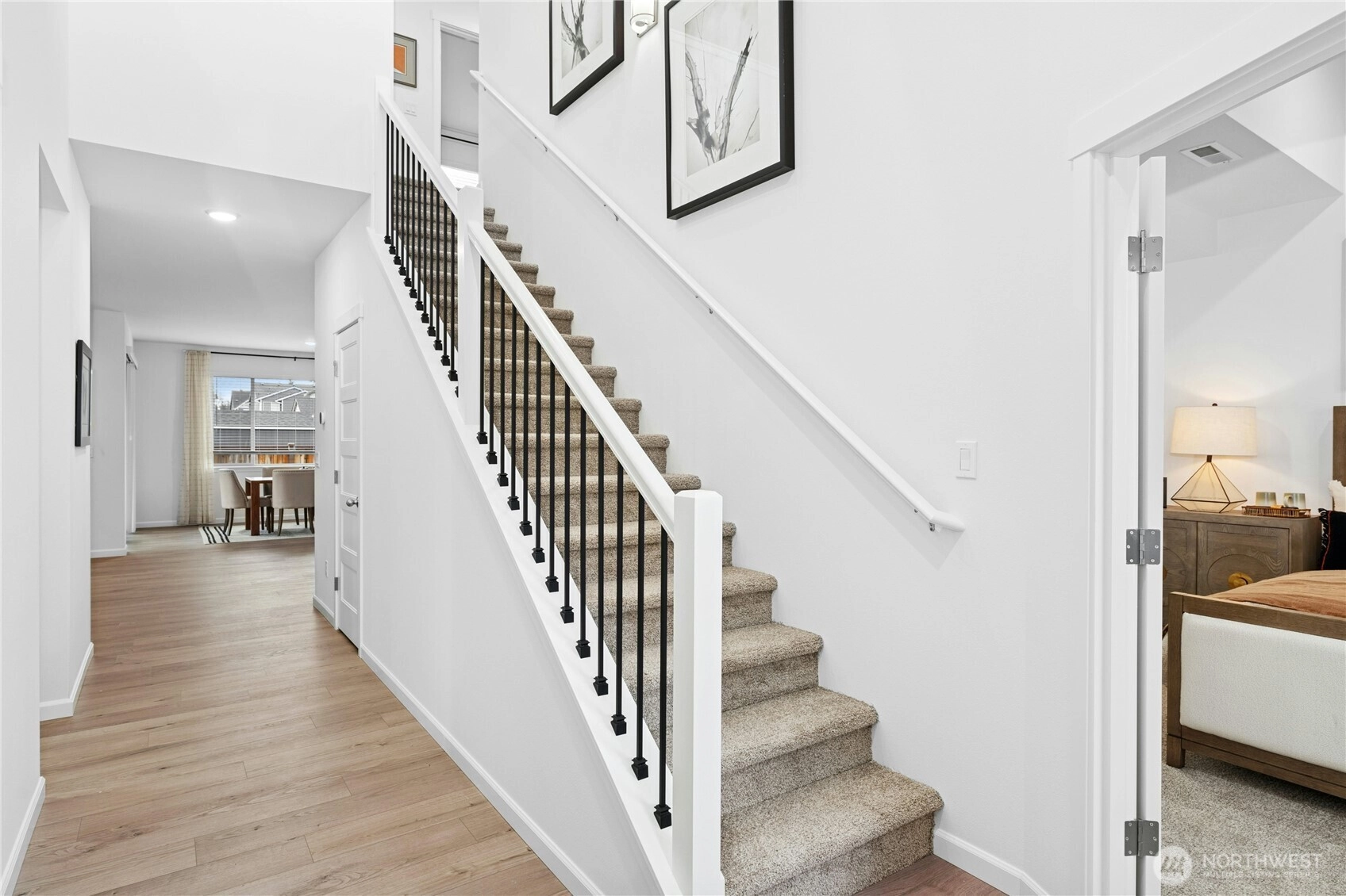 Be one of the first to see the renewed Sterling plan by local builder, Soundbuilt Homes at The Landing at Spanaway Lake. Phase 2 of this community consists of 2 quiet cul de sacs and no through streets. Presales opportunities and completed homes available with homes ranging from 2385 to 3445 sq ft with 3-4 car garages available. Rambler style homes and multi-gen options. On Lot 33, this new Sterling plan features a huge walk-in pantry, spacious dining room and wide open kitchen overlooking the great room w/ gas fireplace. The main floor guest suite w/ its private 3/4 bath and walk-in closet enters through five panel french doors. Upstairs, you will find 4 more bedrooms highlighted by the Primary suite with 5 Piece bath and large walk in closet and a huge vaulted bedroom that can also be a fantastic bonus room with closet. High end standard features include 3CM slab counters throughout, extensive beautiful and durable LVP flooring, EV ready outlet and more!!! Take advantage of an $18,000 buyer bonus w/ preferred lender.