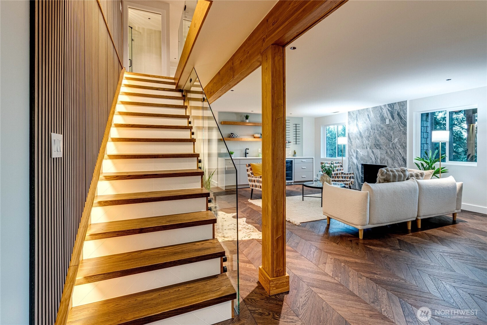 Nestled in an established Bothell neighborhood within the coveted Northshore SD, this completely remastered home (down to studs new electrical, HVAC, and plumbing finished in 2026) offers the best of both worlds: the charm of a mature community with all-new modern systems and finishes. Every inch has been thoughtfully renovated and upgraded – from the 5/8-inch premium chevron engineered hardwood floors underfoot to the CertainTeed presidential 50-year roof above. The result is a “better-than-new” home boasting high-end design, comfort, and cutting-edge tech features. Explore the standout amenities – spa-inspired heated floor bathrooms with extensive tiling, a gourmet kitchen with professional appliances and standalone water maker, wonderful prep kitchen, energy-efficient climate systems, smart home upgrades and premium stucco and stone front exterior improvements. Laundry rooms on both levels featuring Samsung Bespoke heat pump combo units. Two level 2 60amp chargers, one in the garage and another outside for maximum convenience. The landscaping was thoughtfully designed to work along side the extensive Belgard pavers with smart led lighting, WIFI sprinkler system and drip line irrigation. Enjoy the beautiful landscaping from 1 of 2 heated outdoor spaces from the deck on top of the Porcelain surface tiles or below under the covered deck. Refer to the features sheet for the extensive list for all the updates and features. Pre-inspected for peace of mind.