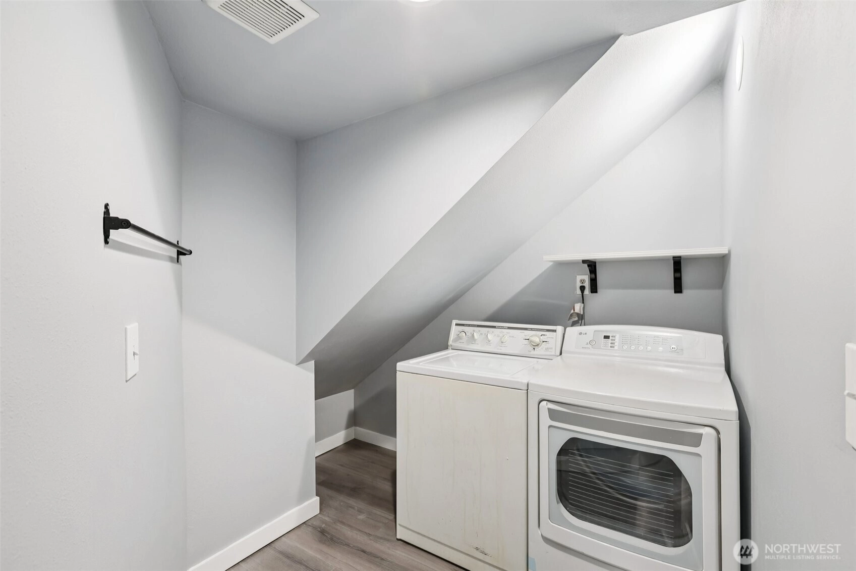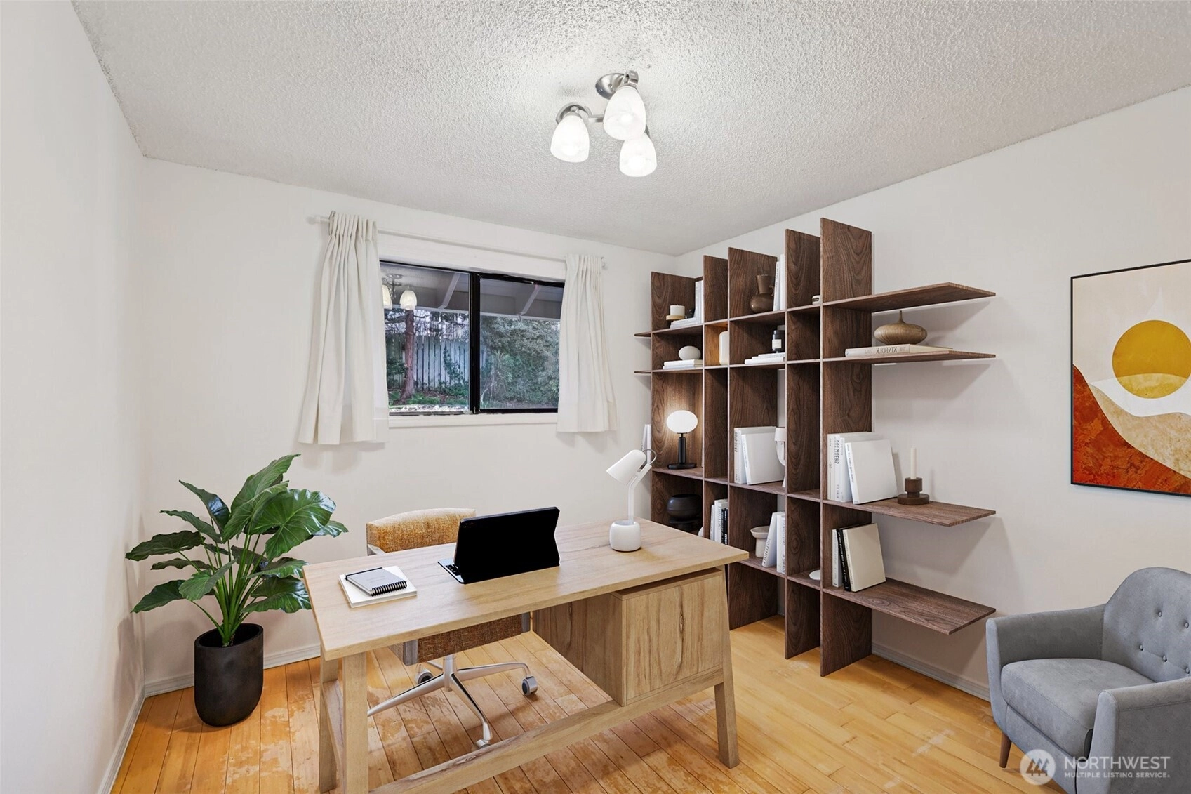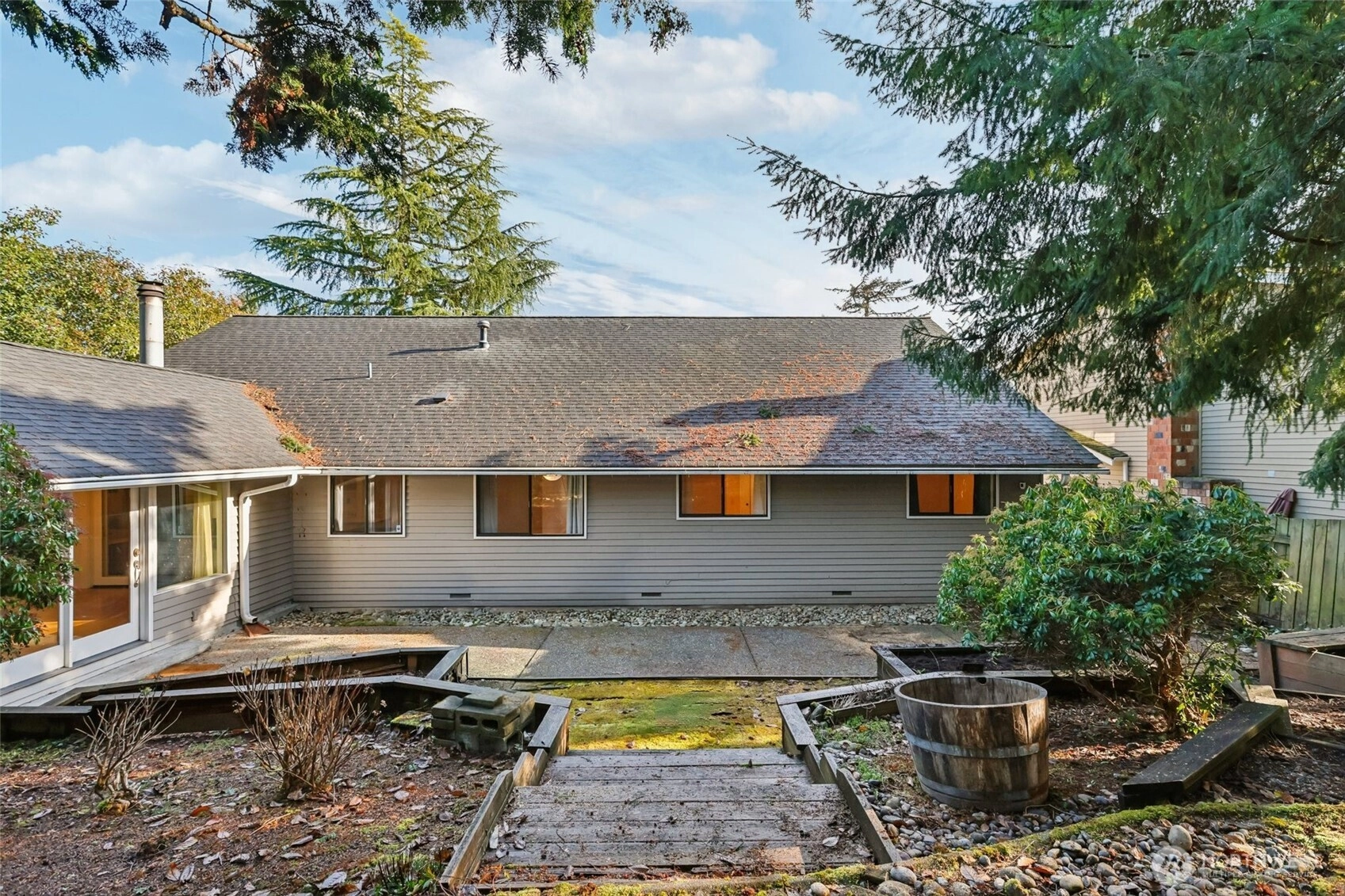 Located in sought-after West Campus, this 5-bedroom, 2.5-bath home offers exceptional flexibility with two primary suites and multiple living spaces. Bamboo floors and fresh paint set the tone, while an oversized upstairs bedroom easily doubles as a bonus or media room. Relax in the vaulted sunroom or enjoy natural light from skylights in the loft overlooking the living room. The kitchen features an eating area and charming brick fireplace. Outside, a fully fenced, landscaped yard offers tiered garden beds and a private terraced retreat. Two-car garage plus ample storage complete the package. Light rail is only a mile away, offering a 20-minute ride to downtown Seattle. The BPA trail has an access point just 100 yards away; it extends for many miles, connecting to various stores and parks. Welcome Home!