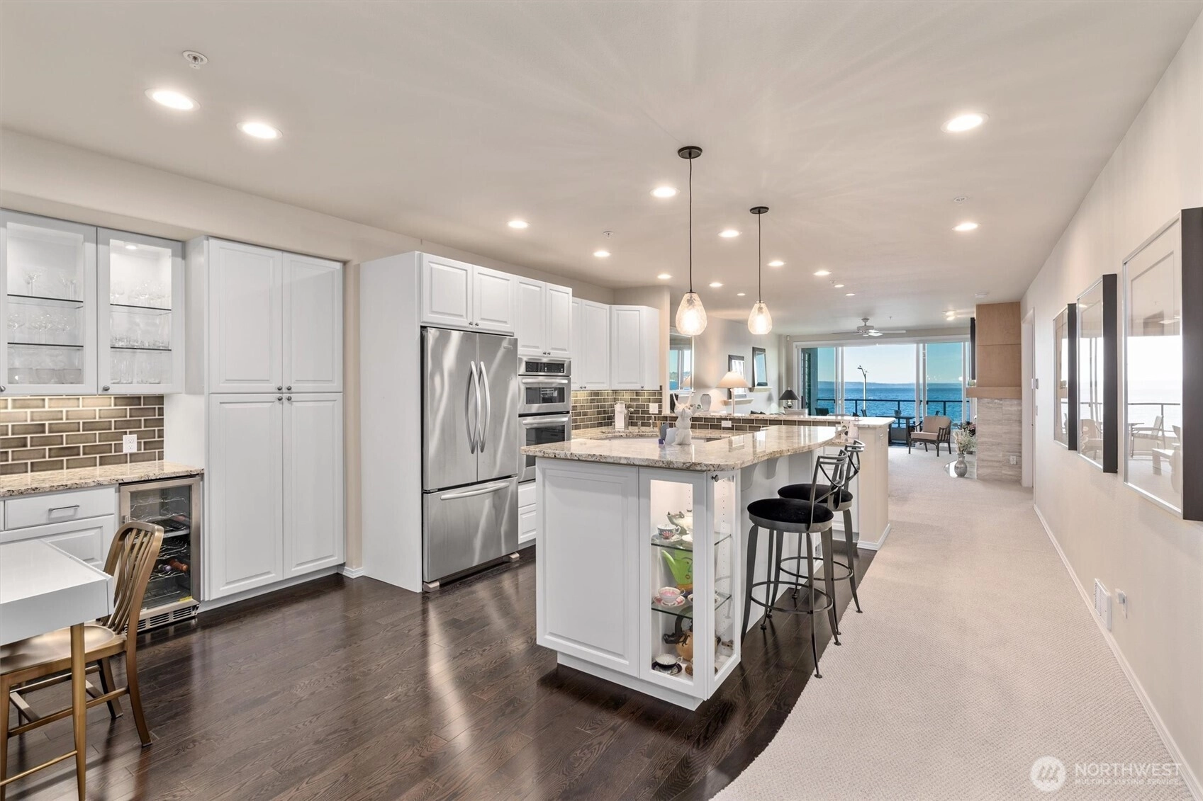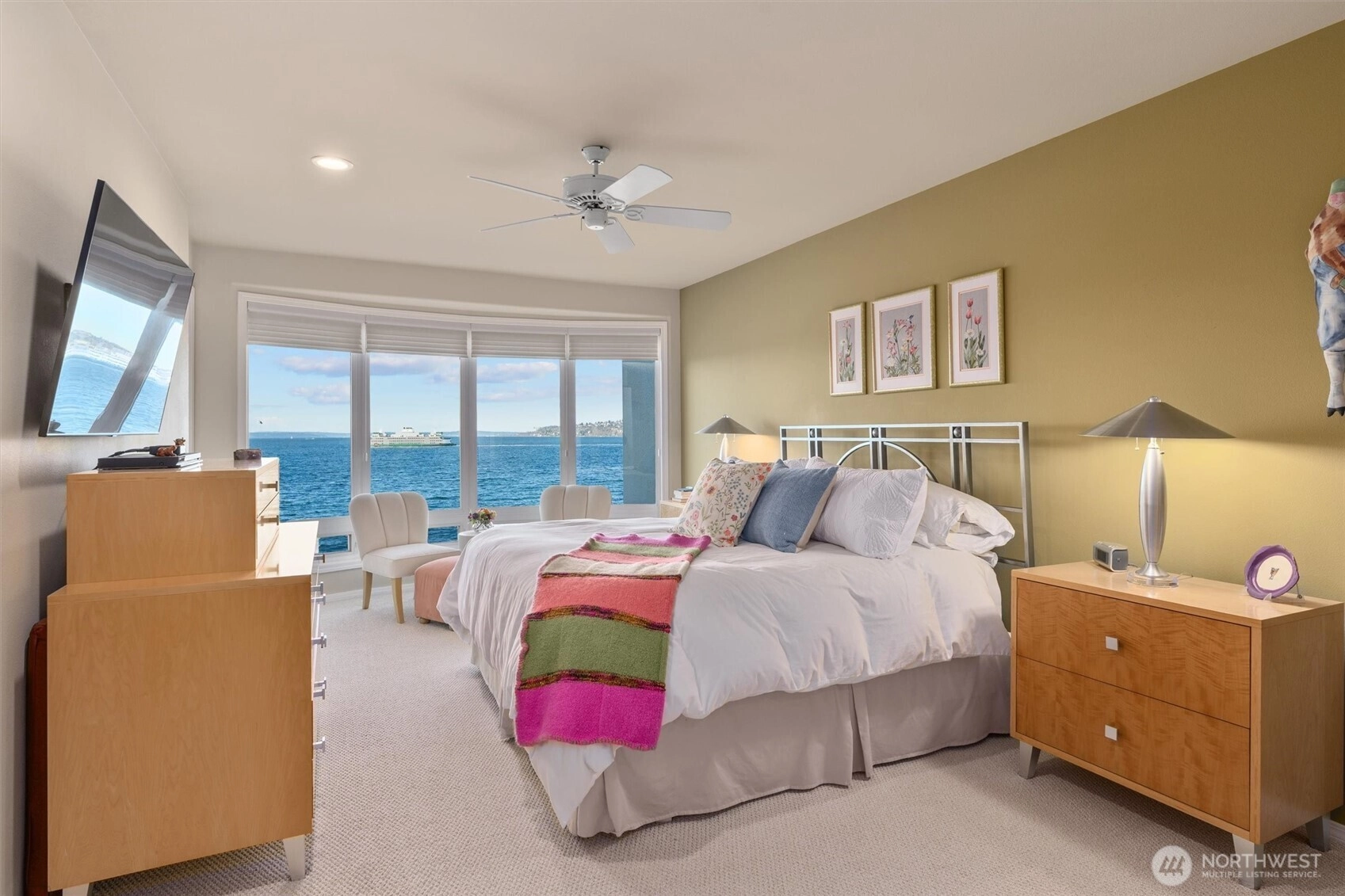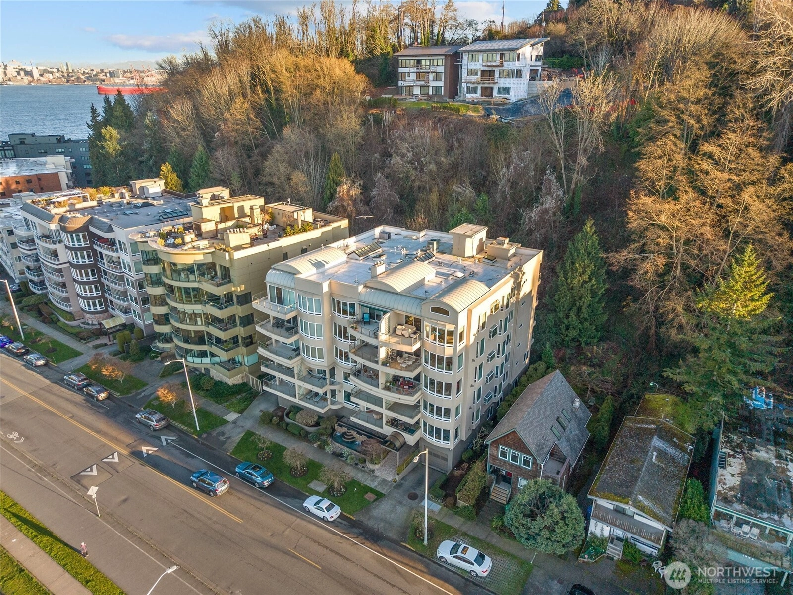 Beautiful Bay Villa! Sweeping Mountain & Sound views from fourth floor, updated 1742 square foot, one-level condo with an elegant view-facing Primary Suite! This inviting residence has a spacious second bedroom, large office and a stylish kitchen with generous entertaining spaces. Relax on the view deck and let your senses feast on an array of breathtaking vistas, sights of active marine life and the scent of refreshing salt air. Unit #401 also offers two choice garage parking spots; one with an EV charger. The Bay Villa association is well run & watchful of maintenance: a modernized elevator, (completely paid) is a huge perk for future owners. Fill your day with walks on the promenade, meeting friends at fine local eateries or take a quick trip to downtown Seattle via the local Water Taxi - sport enthusiasts will certainly appreciate this amenity! If you’ve been waiting for that special, “make you feel good” condo, see this one and make 2026 a New year with your new address! Aloha from Alki!