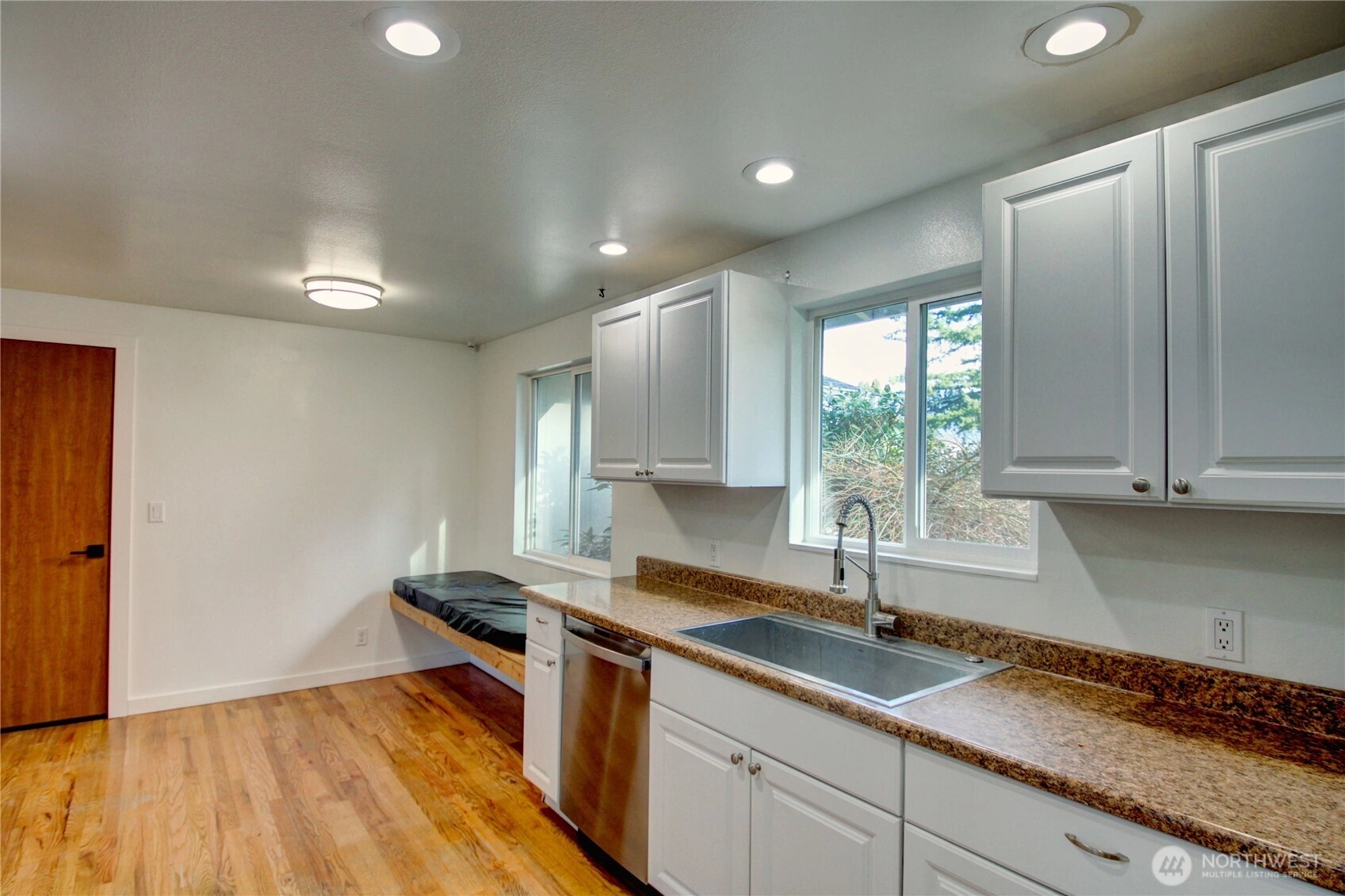 Immaculate, updated Sedro-Woolley rambler perfect for one-level living! Features 3 bedrooms (one without closet), 1 bath, and a spacious bonus room with slider to the large backyard—ideal as a 4th bedroom. Bright living room boasts hardwood floors, recessed lighting, cozy wood-burning fireplace, and a large picture window framing the expansive yard. Modern kitchen shines with white cabinetry, pantry, and newer appliances. Enjoy the beautifully landscaped, fully fenced yard with firepit and deck—your private outdoor oasis. Quiet cul-de-sac location, just minutes from schools!