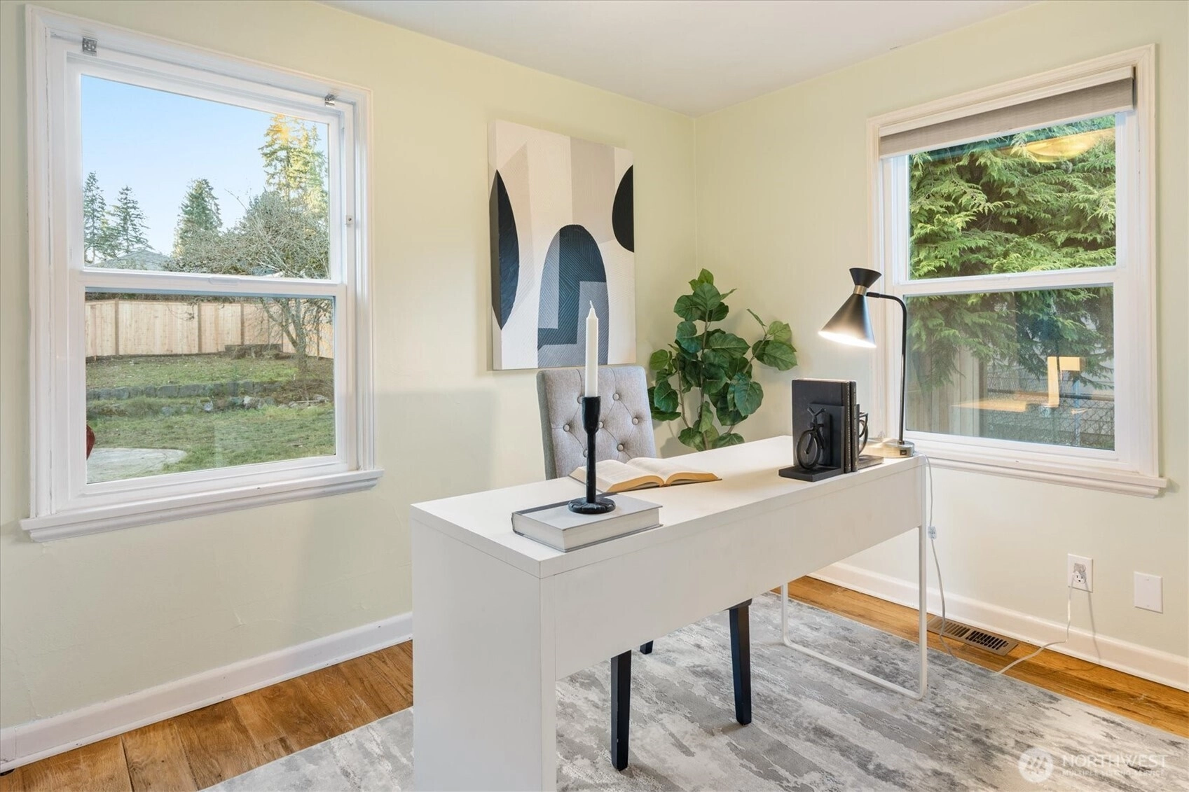 Don’t miss this gem in North Seattle! Gorgeously refinished hardwoods, all new stainless steel appliances in the kitchen, massive yard, & fantastic detached workspace ready for your artistic, music or work-related dreams. Lovingly maintained & fully inspected so you can move in & move on with life! Perfect home for entertaining & enjoying hobbies – large walk-in closet, excellent storage, & off-street parking. Fully-fenced backyard with beautiful mature landscaping and fruit trees creates a private oasis where you can enjoy relaxing summer evenings. Chef’s kiss—parks, coffee shops, grocery stores, and amazing restaurants are just minutes away. This is more than a home; it’s a lifestyle upgrade. Don’t miss it!