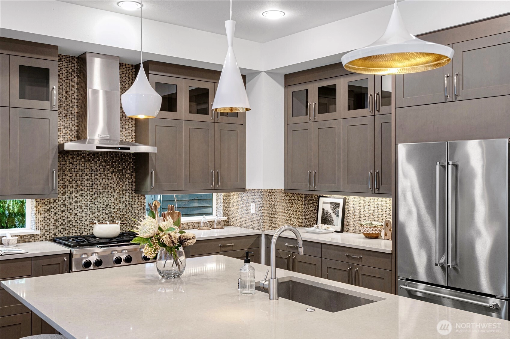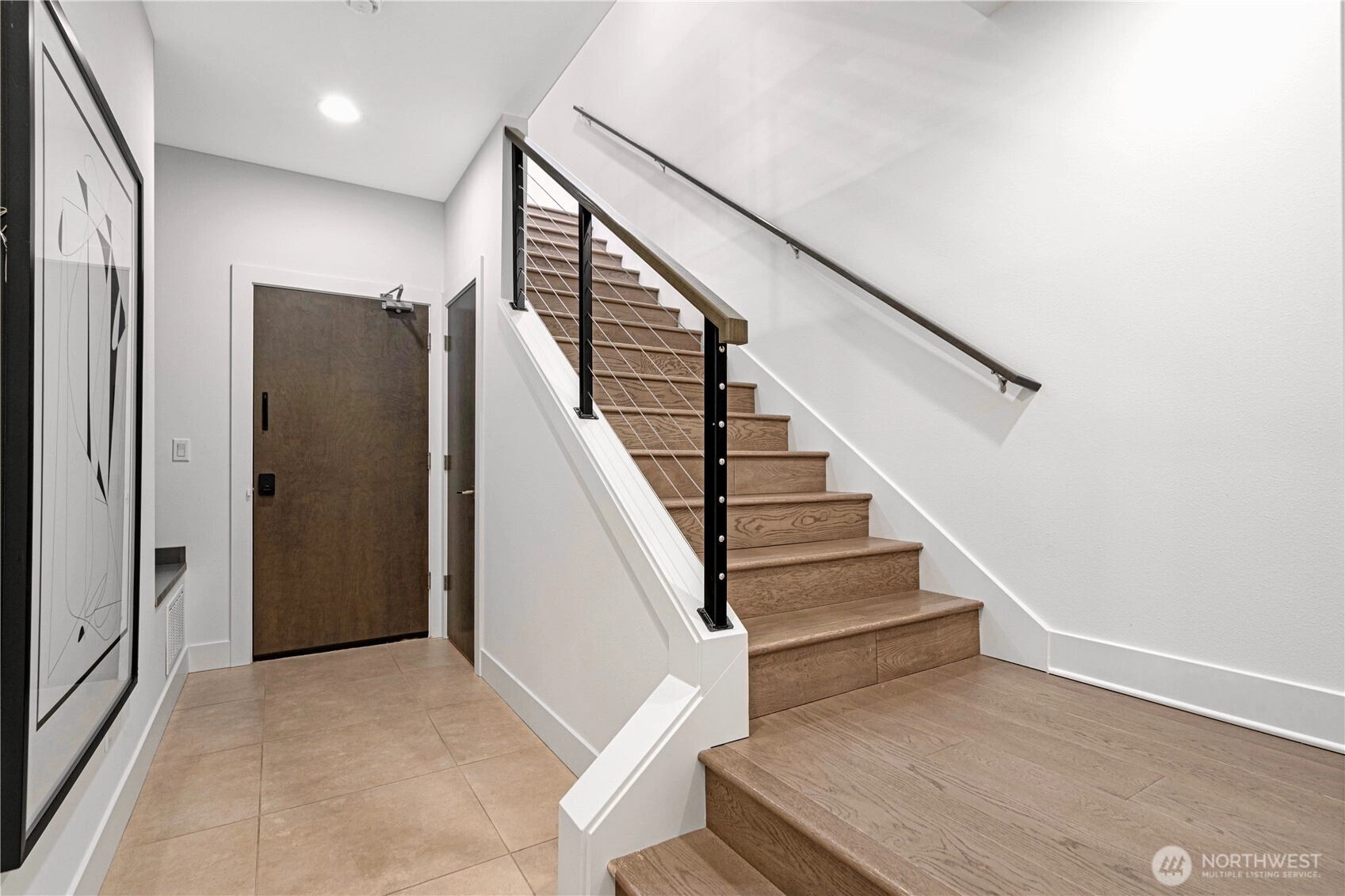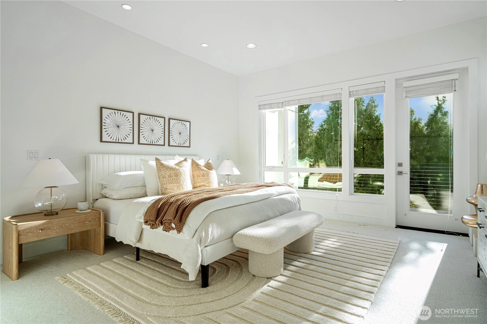 Like-new contemporary end-unit luxury townhouse built in 2016, offering 5 beds, 4 baths, 3,068 sqft, ideally located in downtown Kirkland. Walk to the beach, waterfront parks, dining, and Google campus. Filled with natural lights, featuring high ceilings, expansive windows, and open-concept living. Chef’s kitchen with gas range, and large island. Flexible layout includes lower-level bonus room and guest bedroom, plus a main-level bedroom with shower. Upstairs offers a luxury primary suite with oversized spa-style shower and private balcony, plus two additional bedrooms. Enjoy two balconies, a private fully fenced backyard, and a spacious 2-car garage. A/C, designer lights, newer interior paint and more. Modern living at its finest.