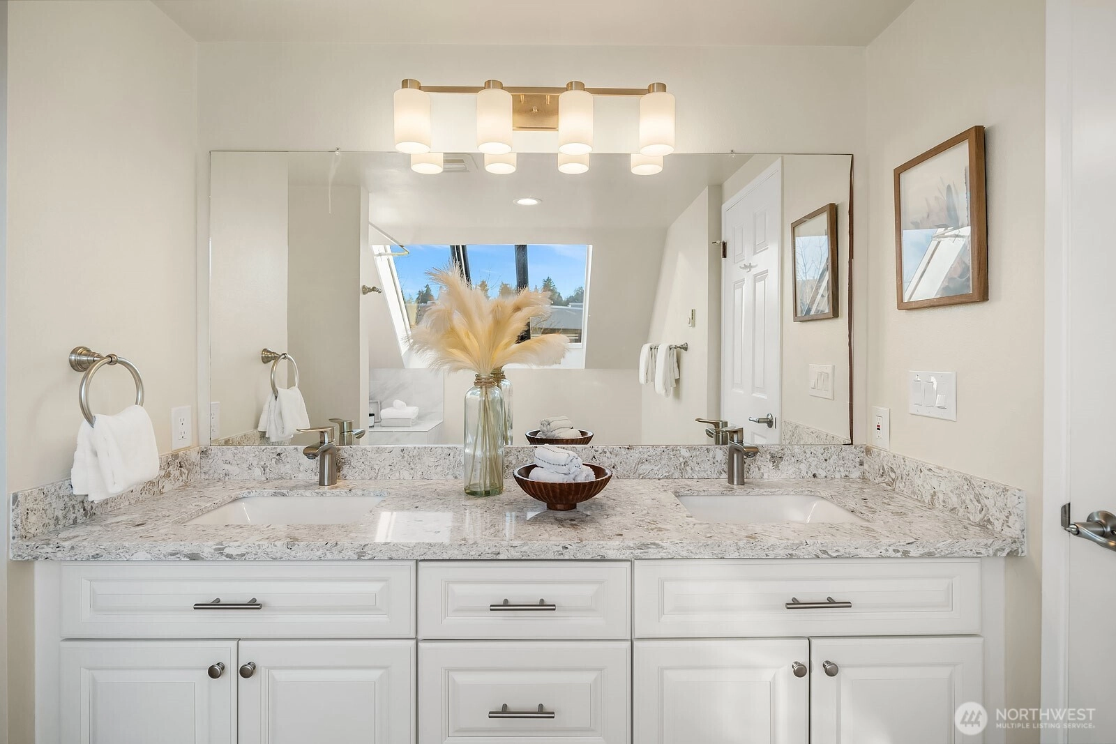 Discover refined island living in this elegant 2-bedroom, 2-bath, 2-story condo ideally located in the heart of Mercer Island Downtown. Enjoy a truly walkable lifestyle with shops, dining, parks, and daily conveniences just steps away, along with an effortless commute to both Seattle and Bellevue. The well-maintained building offers excellent security, a welcoming lobby, and elevator access, providing comfort and peace of mind. Rare for the area, the home includes two dedicated parking spaces in the secure garage. Inside, the thoughtfully designed main level features an open-concept living and dining area filled with natural light, ideal for entertaining or everyday living. The updated kitchen offers generous cabinetry and workspace, while a full bathroom on the main level adds convenience and flexibility. Upstairs, the spacious primary bedroom serves as a private retreat, complete with a full ensuite bath. The second bedroom is perfect for guests, a home office, or additional living space. Additional highlights include ample in-unit storage, a generously sized balcony for outdoor enjoyment, and a well-managed HOA supporting a low-maintenance lifestyle. Located within top-rated Mercer Island schools, with a school bus stop conveniently located right on the street, this home offers an exceptional opportunity for comfort, convenience, and long-term value in one of the island’s most desirable settings.