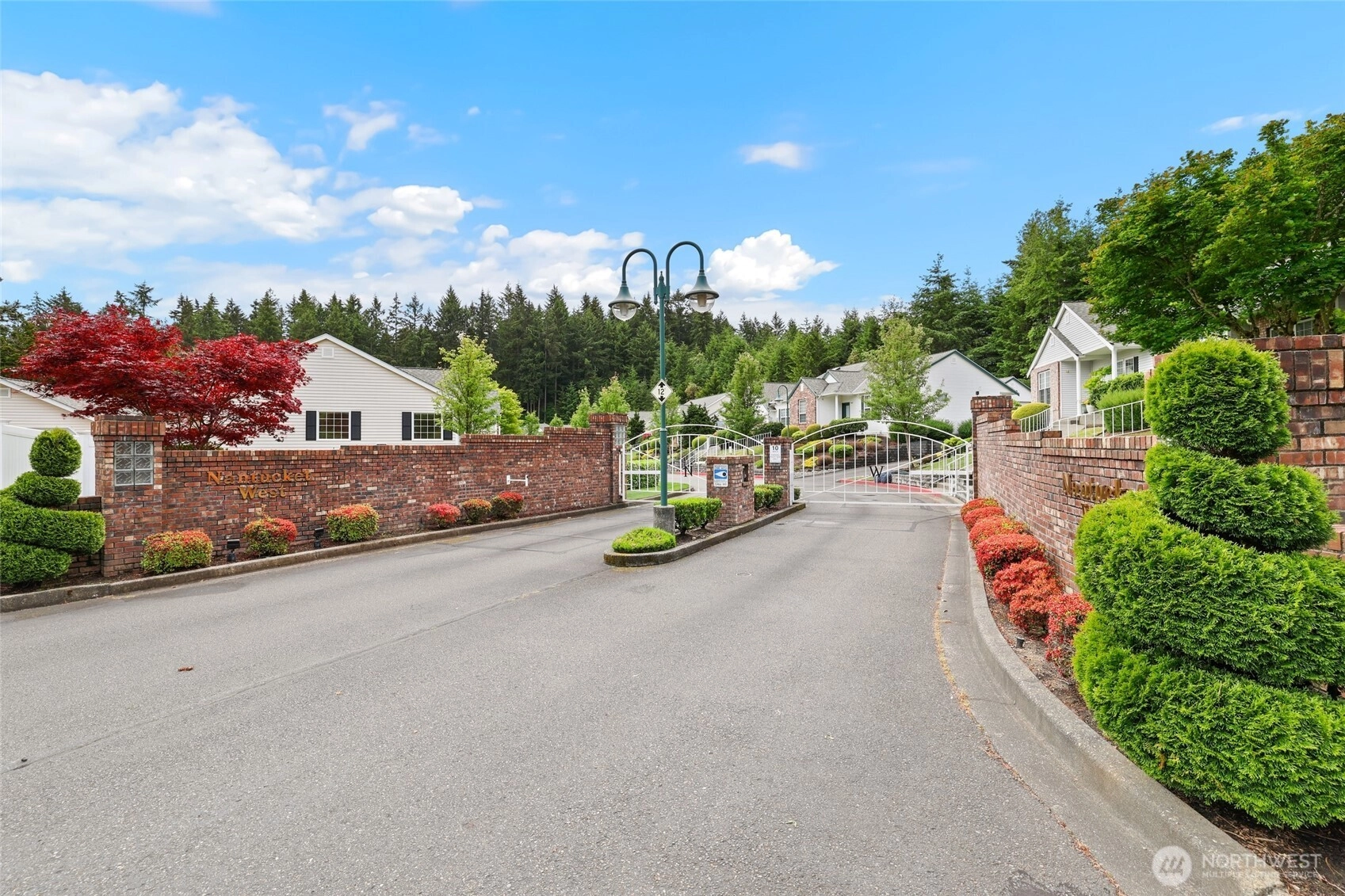 Beautifully maintained condo in a desirable University Place community offering comfortable, low-maintenance living! Warm hardwoods extend through an open concept living room with fireplace and dining room with tray ceiling. The kitchen, with sun-filled dining nook, has expansive countertop space, cabinets with pull out shelving and new appliances. Primary bedroom is tucked away for privacy and features a walk-in closet and 5-piece bathroom with skylight. Additional bedrooms, one with French doors, offers flexibility for guests or a home office or hobbies. Enjoy warm summer days in the beautifully landscaped yard with patio, perfect for dining al fresco. Gated community, two-car garage with breezeway. Prime location to trails, Chambers Bay, retail and highway access. Mortgage savings may be available for buyers of this listing!