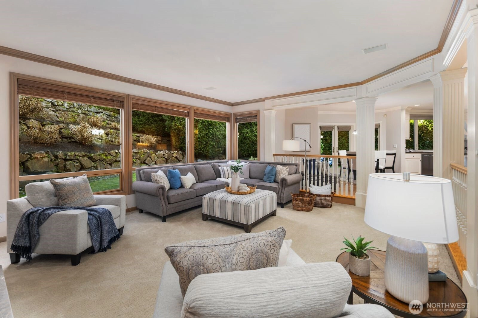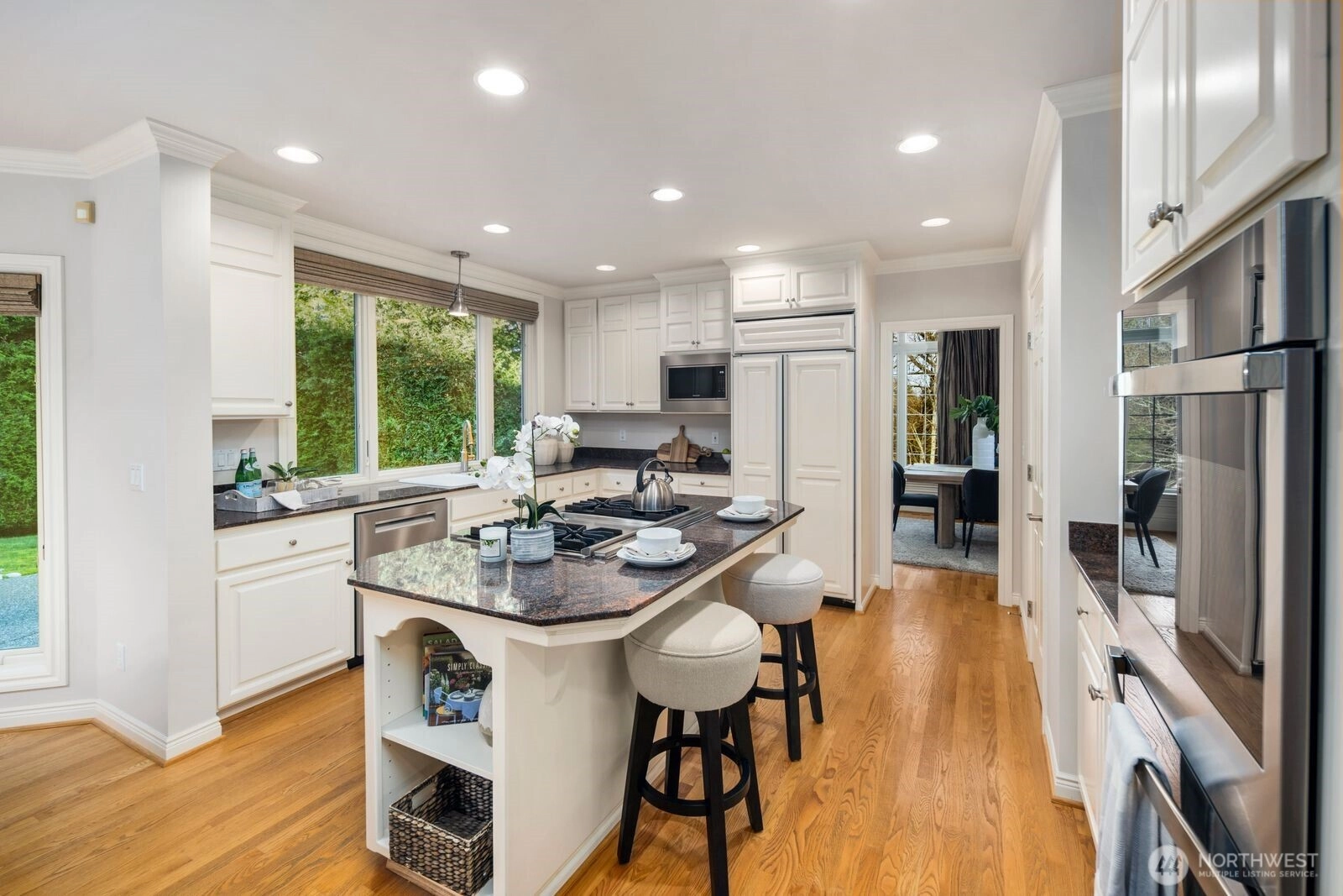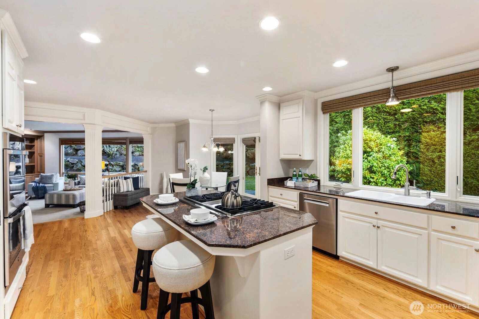 One-owner William E Buchan luxury home in Bellevue’s coveted Lakemont neighborhood. This traditional 4BD/2.5BA beauty features formal entry with soaring ceiling, elegant living & dining rooms, exquiste millwork, hardwoods & solid wood cabinetry. Updated chef’s kitchen opens to sunken family room. Main also features den/office with custom built-ins and updated .75 bath. Upstairs: lake view primary suite with seating area, five-piece en suite bath & walk-in closet, plus 3 other bedrooms, updated full bath & spacious bonus room. 3-car attached garage with shop space, efficient heating/cooling systems. Situated on private 0.33-acre lot at end of quiet cul de sac. Issaquah Schools. Near shopping, recreation & I-90 to Greater Eastside & Seattle.