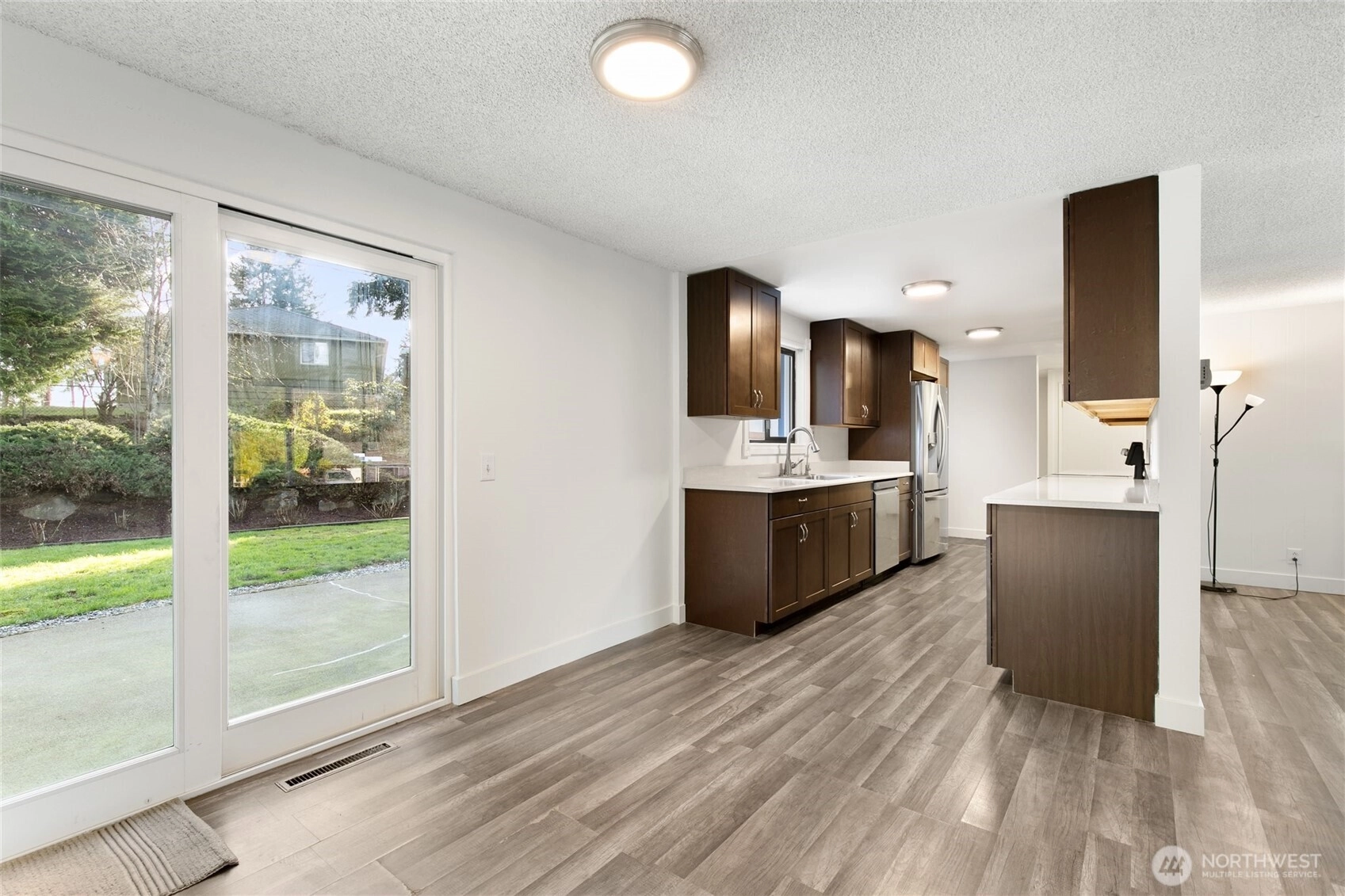 Welcome to this move-in ready 4-bedroom, 1.5-bath home featuring a wonderful circular driveway and a fully fenced yard with two gated entry points, set on an oversized 10,000+ sq ft lot in Des Moines’ desirable North Hill community. The home features stylish LVP flooring and an updated kitchen with stainless steel appliances, along with a brand-new roof, hot water tank, and electrical panel. A spacious flex room offers versatile living options—ideal for a primary suite, home office, or media/game room. Enjoy RV parking with power and plenty of space for gardening, play, and entertaining. Conveniently located near shopping, freeways, and Sea-Tac Airport. A comfortable, functional home ready to enjoy.