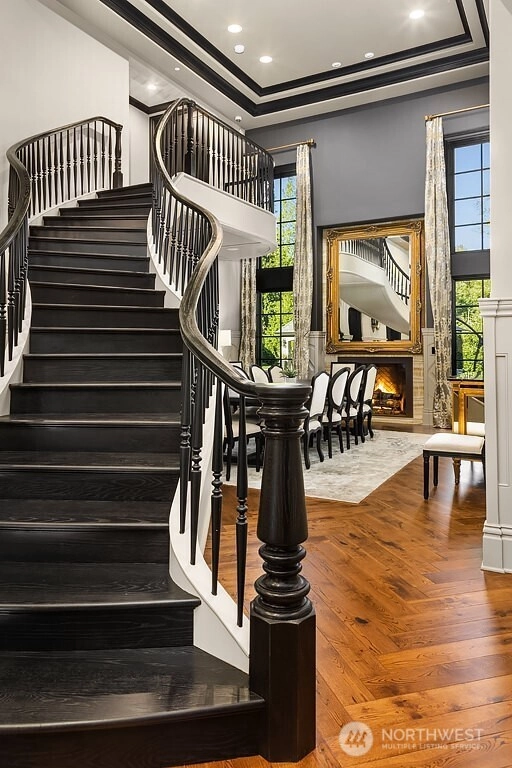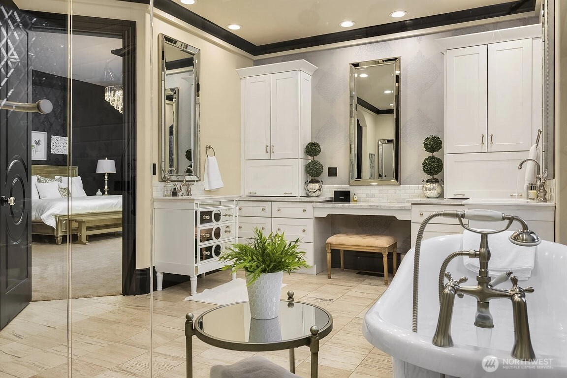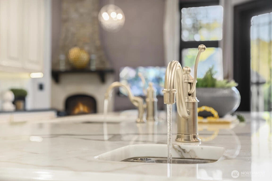 This gated, private Estate blends refined craftsmanship with modern elegance. Granite façade, leaded glass entry, and Renaissance water feature create grand first impression. Inside, soaring ceilings, curved floating staircase, herringbone hardwoods, and striking millwork define luxurious living. Primary spa bath w/Grecian marble shower, clawfoot tub, and heated travertine floors. Chef’s kitchen w/Calacatta marble island, mother-of-pearl backsplash, and Bertazzoni gas range extends to breathtaking grounds. Seamless indoor/outdoor flow to entertainment terrace, firepit, heated pool, pool house bath, and stone cabana. Moments from Woodinville’s top schools and wine country, this Estate offers elevated living in a truly exceptional setting.