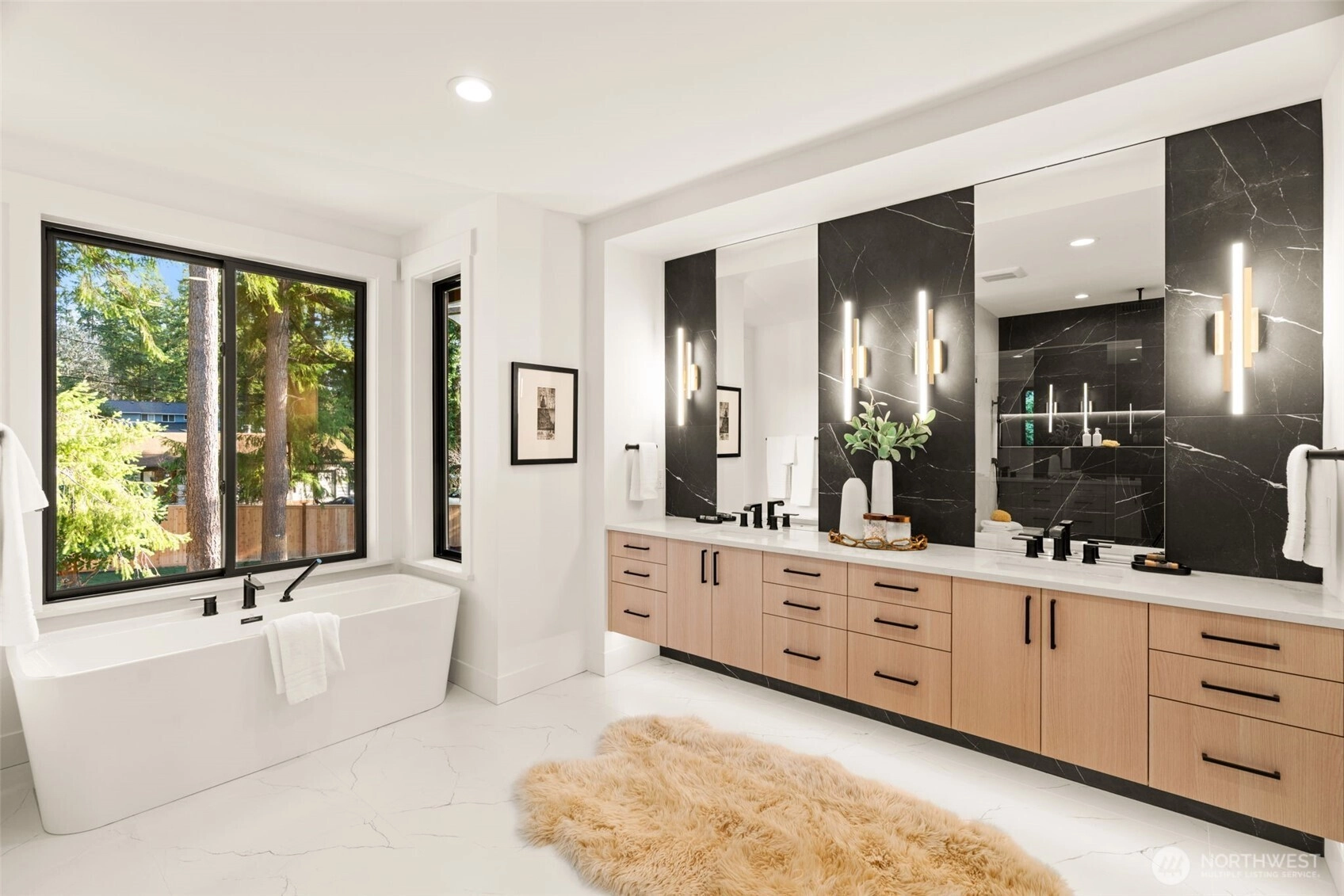 Another Elegant Modern Farmhouse by EVERTON Homes on a large 11700 sq ft lot. Functional floor plan with open concept convenient for everyday life and entertainment. Chef's kitchen with high-end appliances, large butler's pantry with SCULLERY, formal dining room adjacent to great room. 20' ceilings in the living room, vaulted ceilings in the bonus room. Spacious guest bedroom on the main floor with private patio and a FLEX room with extra W&D connection. Sophisticated Primary suite with spa-like bathroom overlooking private backyard. Heated Floors in all tiled Bathrooms, 2 HVAC systems, Andersen high performance windows, custom garage floor coating, mudroom with Gear Closet. Spacious outdoor living space with linear fireplace and large flat backyard. Award-winning BSD with Somerset ES, Tyee MS and Newport HS. Highly desired Eastgate location in proximity to dining/shopping/freeways. Hot water recirculation system.