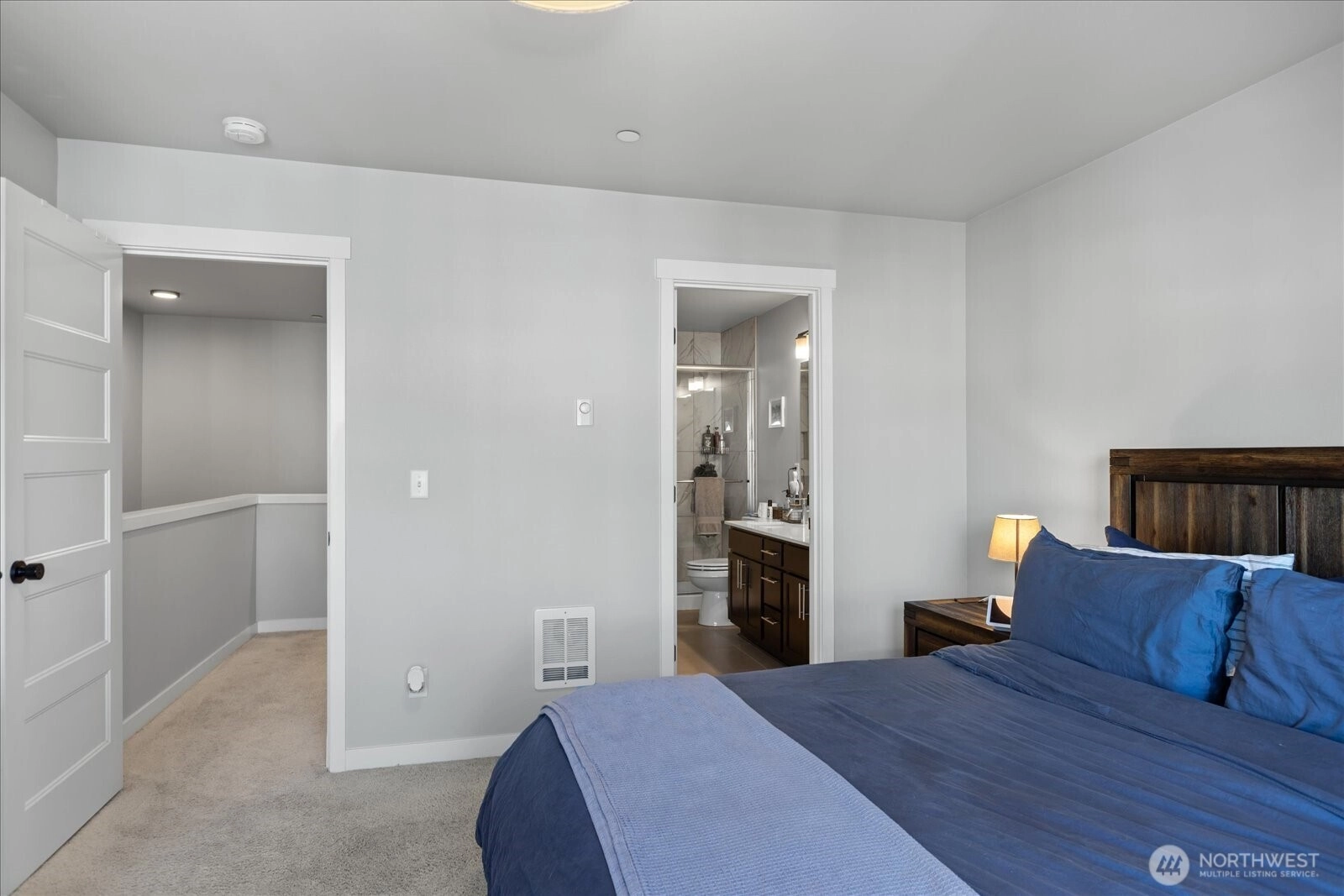 Welcome home to this newer-build townhome-style residence in the Lake Stickney neighborhood! Mukilteo schools & modern living at it's finest! The light-filled main level features a huge, show-stopping kitchen with quartz countertops, stainless appliances, ample cabinetry, a walk-in pantry, and a wall of windows that bring the outdoors in. Stylish LVP flooring throughout the main and lower level, enhances the open, contemporary feel, ideal for both daily living and entertaining. This home offers three spacious bedrooms, **each with its own private en-suite bath** providing exceptional flexibility for working from home, guests, roommates, or multi-generational living. Stay comfortable year-round with energy-efficient mini-splits and A/C. Perfectly positioned backing to a peaceful greenbelt and community playground, this three-level home offers rare privacy, natural views, and modern comfort. Enjoy the perfect blend of nature and convenience—greenbelt views out back with quick access to Lake Stickney Park, shopping, dining, and major commuter routes including the Lynnwood light rail station, I-5 and I-405. Modern, move-in ready, and thoughtfully designed, this home truly has it all.