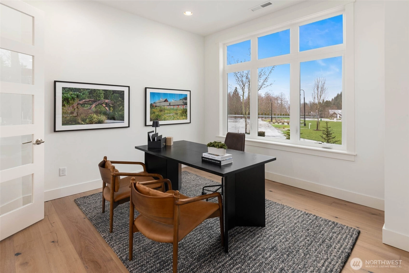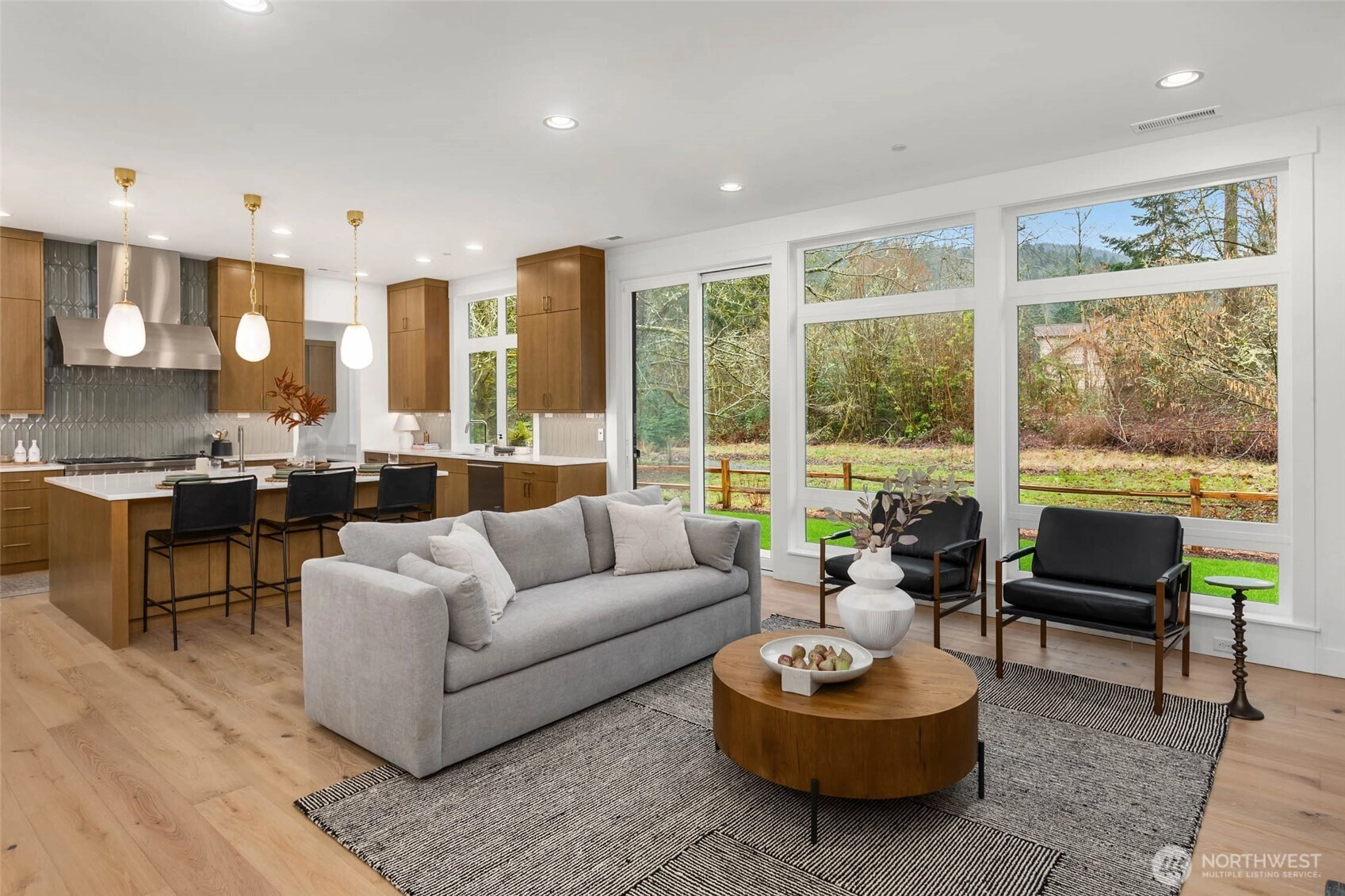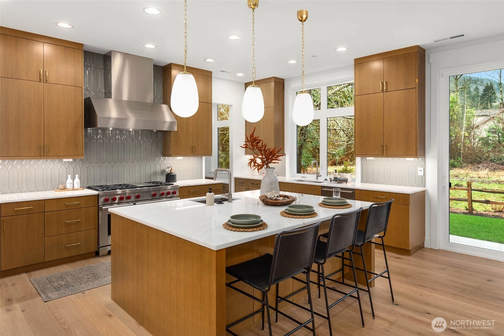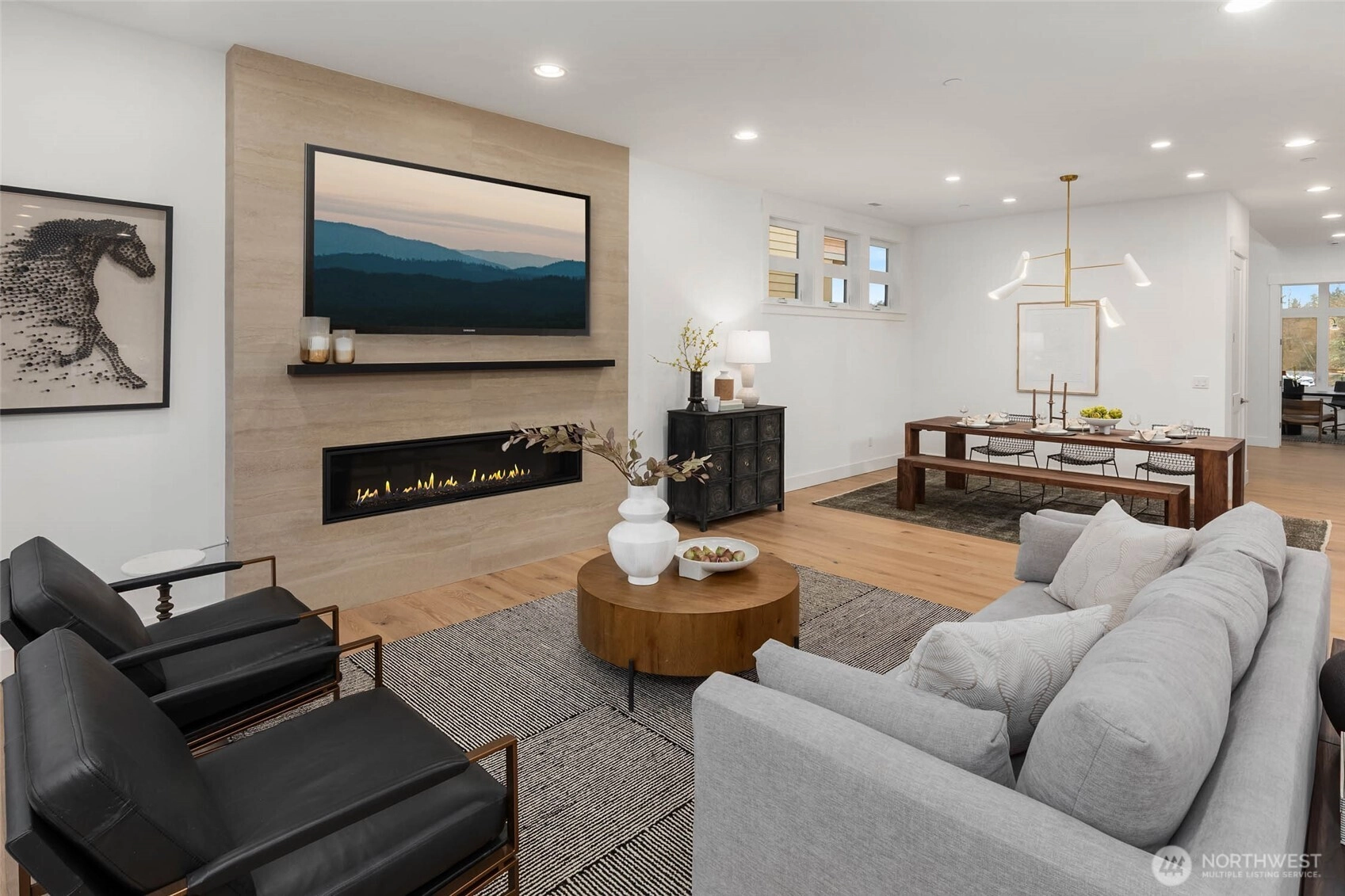 Just Released, newly completed home in Steve Burnstead Constructions newest offering, Tibbetts Crossing. A stunning community of 20 custom NW contemporary homes on 21 acres with Tibbetts Creek serenely running through. The Evans Plan on lot 5 is a stunning 3,546 SF 5 Bed/4 Bath Custom Designed Residence. Main floor flooded with natural light through Floor to Ceiling window walls and 10 Foot Ceilings. Home office/guest suite, dramatic 2 story entry, and Open Concept Great Room open to patio and greenbelt backing yard. Chef’s kitchen with Custom Cabinets oversized island with designer selected quartz slab and eating bar, and premium Wolf/Sub-Zero/Cove appliance package. Dedicated dining space with built in custom floating buffet, floating shelves, and full height tile backsplash. Stunning Primary Suite with greenbelt views, contemporary fireplace with slab surround, and Spa like bath one of 4 upper bedrooms. Spacious Rec-Room and Well Appointed Utlility/mud room with tile floors, custom cabinets, cubbies, shelves, and stainless steel sink. Installed and ready to save solar panels. Designer Curated fixtures and finishes throughout. Only move in ready home in this brand new, over a quarter sold out neighborhood. A+ Location, Schools, Quality, Design by a TRUSTED LOCAL NAME.